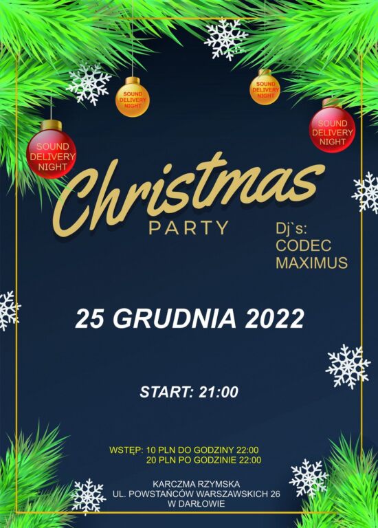 25 grudnia 2022 roku kolejna odsłona SOUND DELIVERY NIGHT. Wydarzenie odbędzie się w świątecznym nastroju w Karczmie Rzymskiej w Darłowie przy dobrych progresywnych utworach muzycznych.