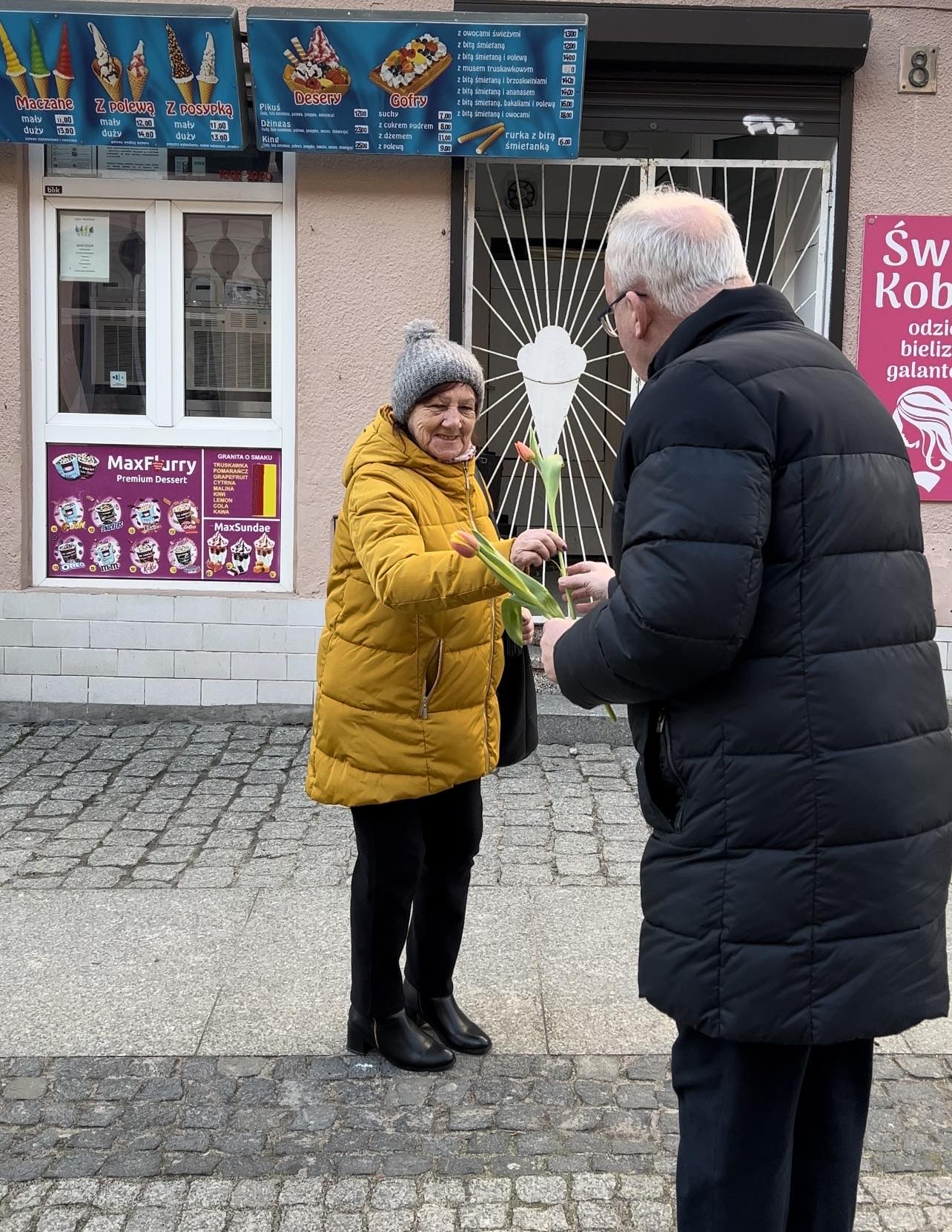 Na ulicach miasta z kolei zastępca burmistrza Rafał Nagórski, Przewodniczący Rady Miejskiej Czesław Woźniak oraz Przewodniczący Rady Powiatu i sekretarz Miasta Darłowo Tomasz Bobin rozdawali kwiaty, aby umilić im ten wyjątkowy dzień.