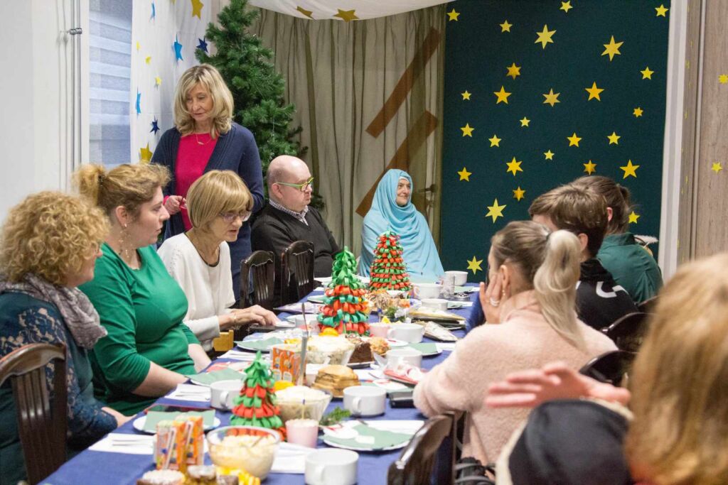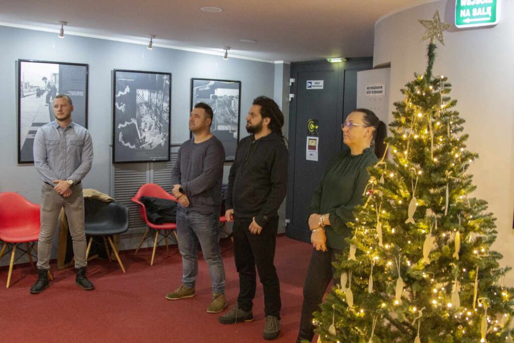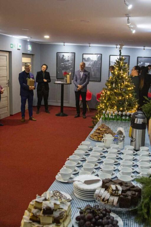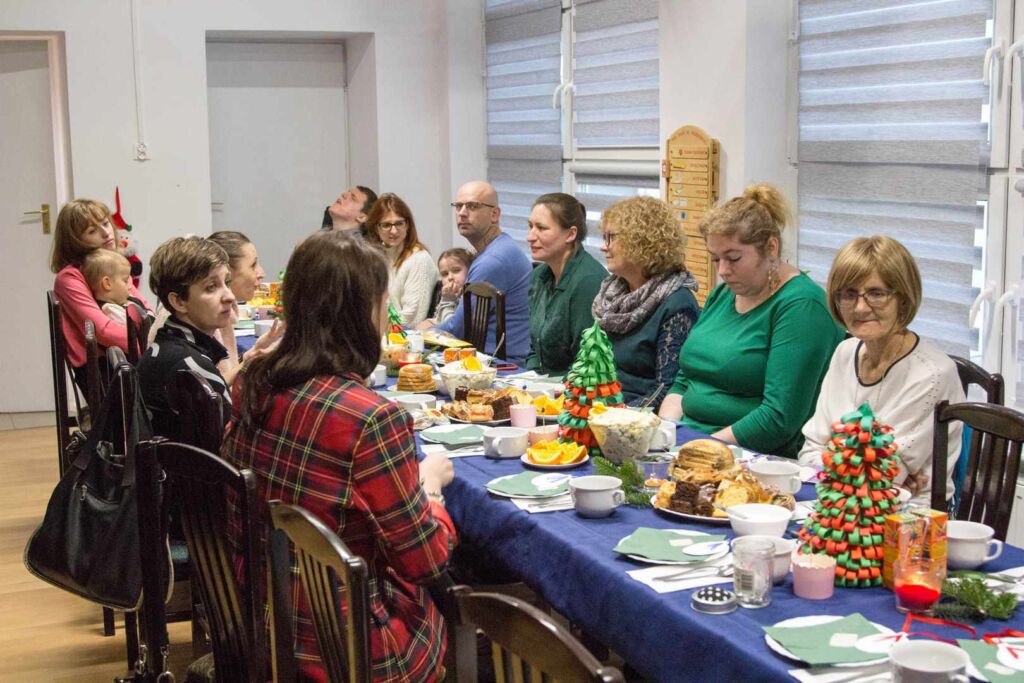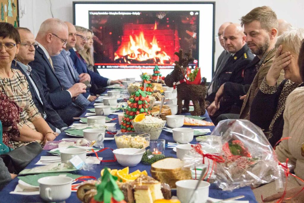 Gości częstowano tradycyjnymi wigilijnymi potrawami oraz ciastem, symbolicznie podzielono się także opłatkiem.