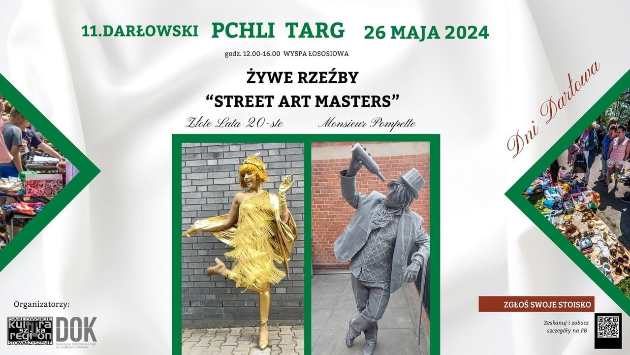Darłowskiego Stowarzyszenie Kultura Sztuka Region oraz Darłowski Ośrodek Kultury im. Leopolda Tyrmanda serdecznie zaprasza sprzedawców i kupujących na 11 edycję Darłowskiego Pchlego Targu. Będzie on miał miejsce na Wyspie Łososiowej w niedzielę 26 maja 2024 roku i rozpocznie o godzinie 12.00.