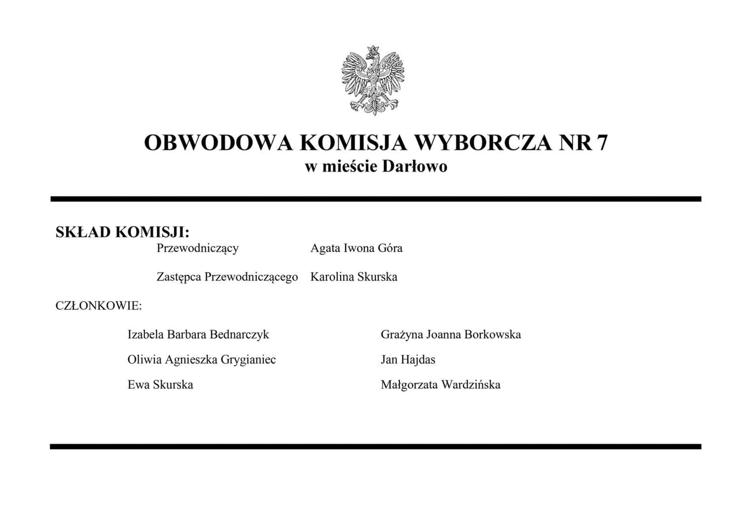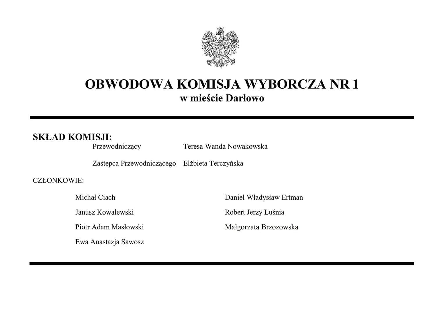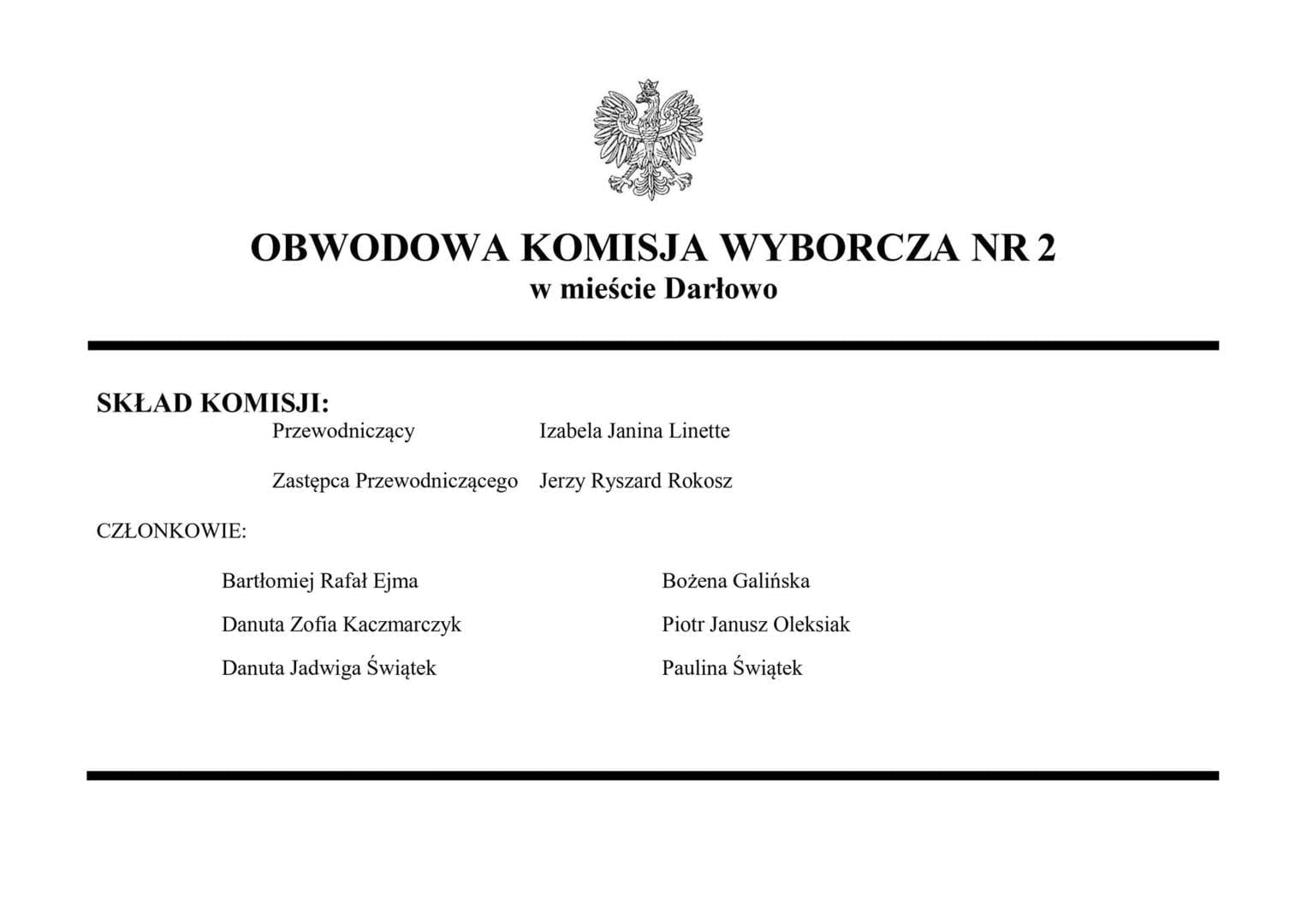 - Obwód nr 1 z siedzibą w Społecznej Szkole Podstawowej im. Lotników Morskich Społecznego Towarzystwa Oświatowego w Darłowie (ul. Zwycięstwa 1, 76-150 Darłowo)