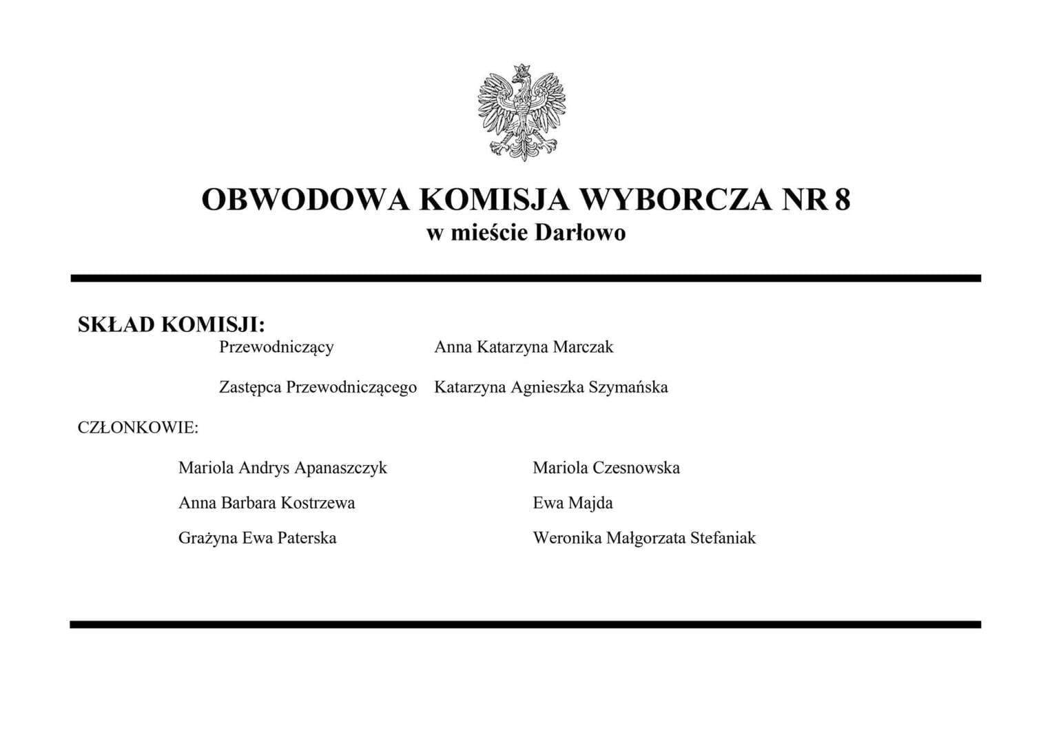 W obrębie administracyjnym miasta utworzonych zostało 8 obwodowych komisji wyborczych: