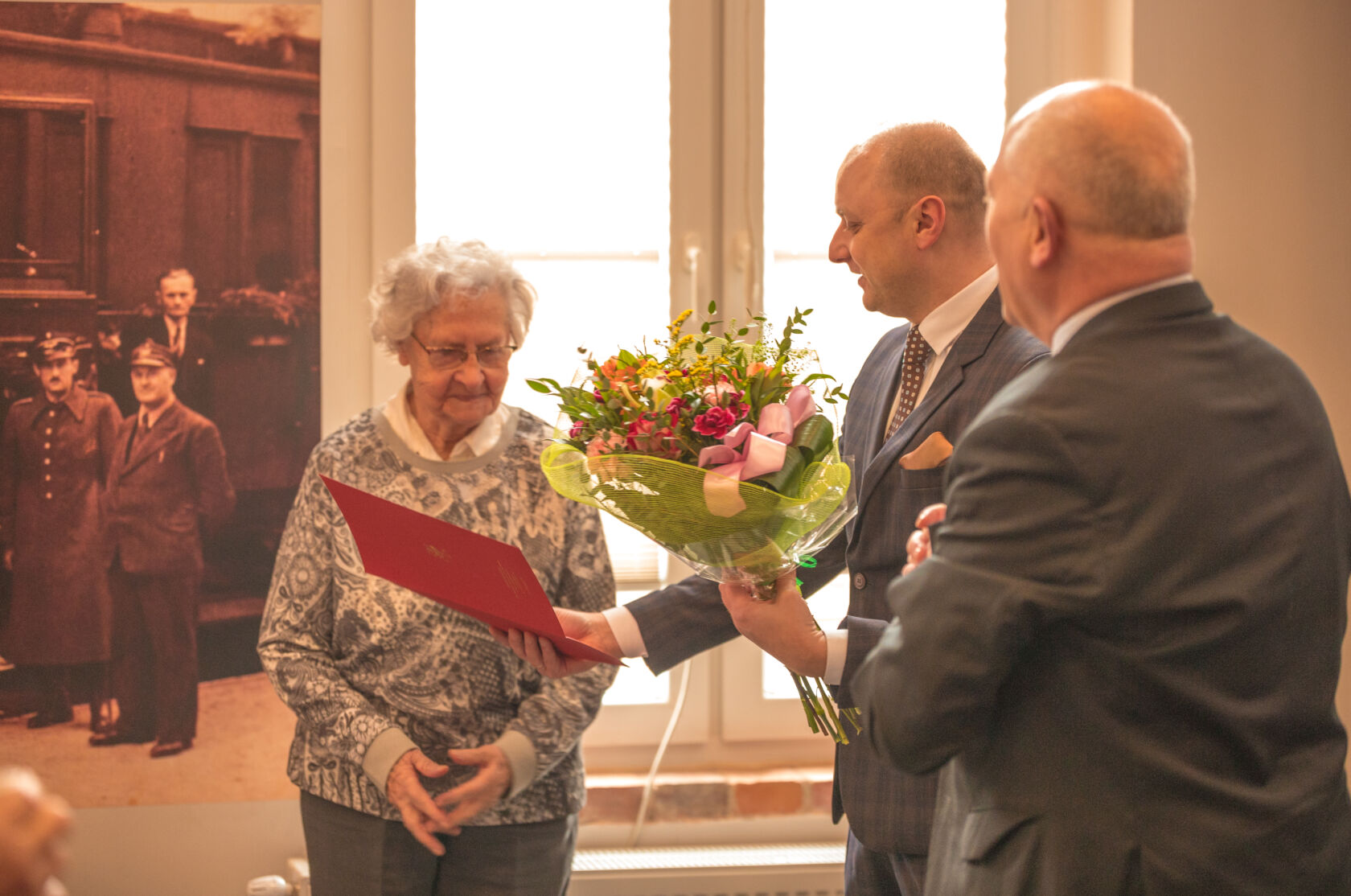 Warto dodać, że po zakończeniu oficjalnych uroczystości, wszyscy uczestnicy spotkali się w budynku Poczekalni Kultury. Tam odbyło się małe podsumowanie całego wydarzenia, był czas na dodatkowe podziękowania oraz złożenie życzeń dwóm jubilatkom – Brygidzie Jerzewskiej z okazji 95. urodzin oraz z okazji 85. urodzin – Jadwidze Sidoryk. Obie panie zostały uhonorowane kwiatami oraz życzeniami od zebranych gości.