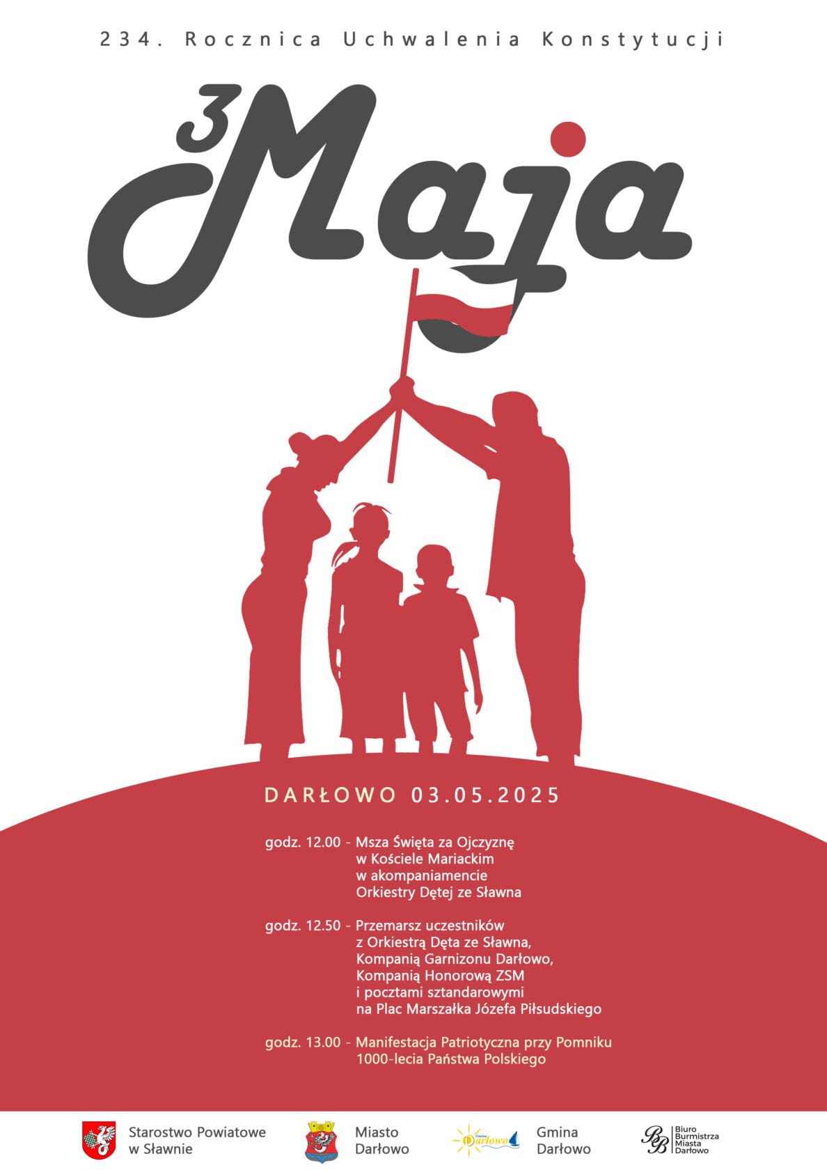 Starostwo Powiatowe w Sławnie, Miasto Darłowo i Gmina Darłowo zapraszają na oficjalne uroczystości 234. Rocznicy Uchwalenia Konstytucji 3 Maja. Obchody tradycyjnie rozpoczniemy Mszą Święta za Ojczyznę w Kościele Mariackim (godz. […]