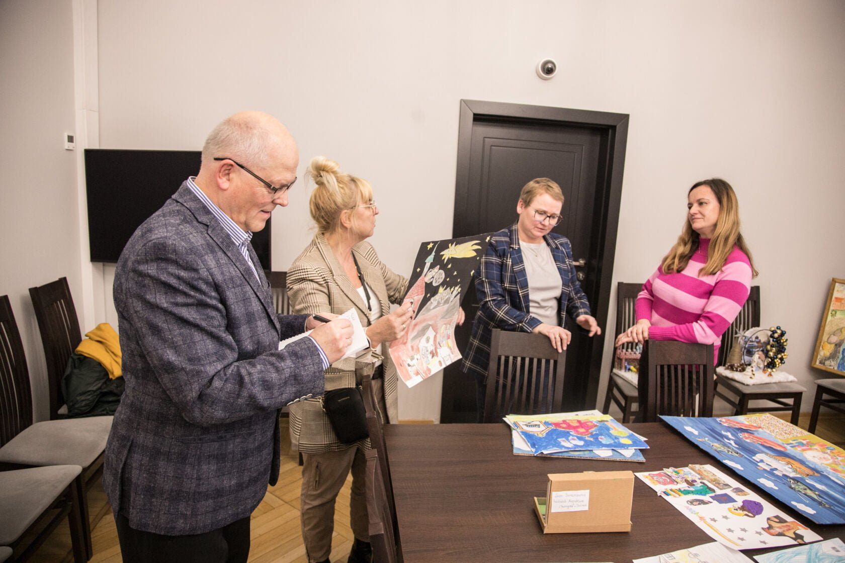 Zdjęcia prac wraz z trudną pracą oceniającego jury.