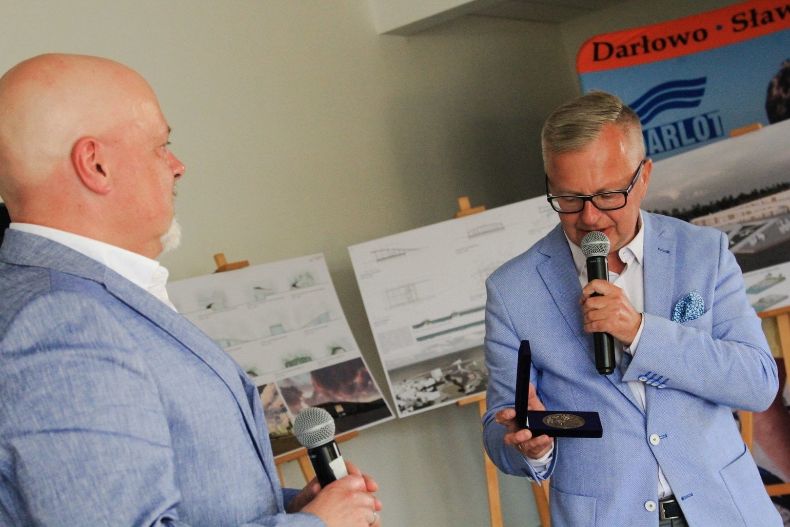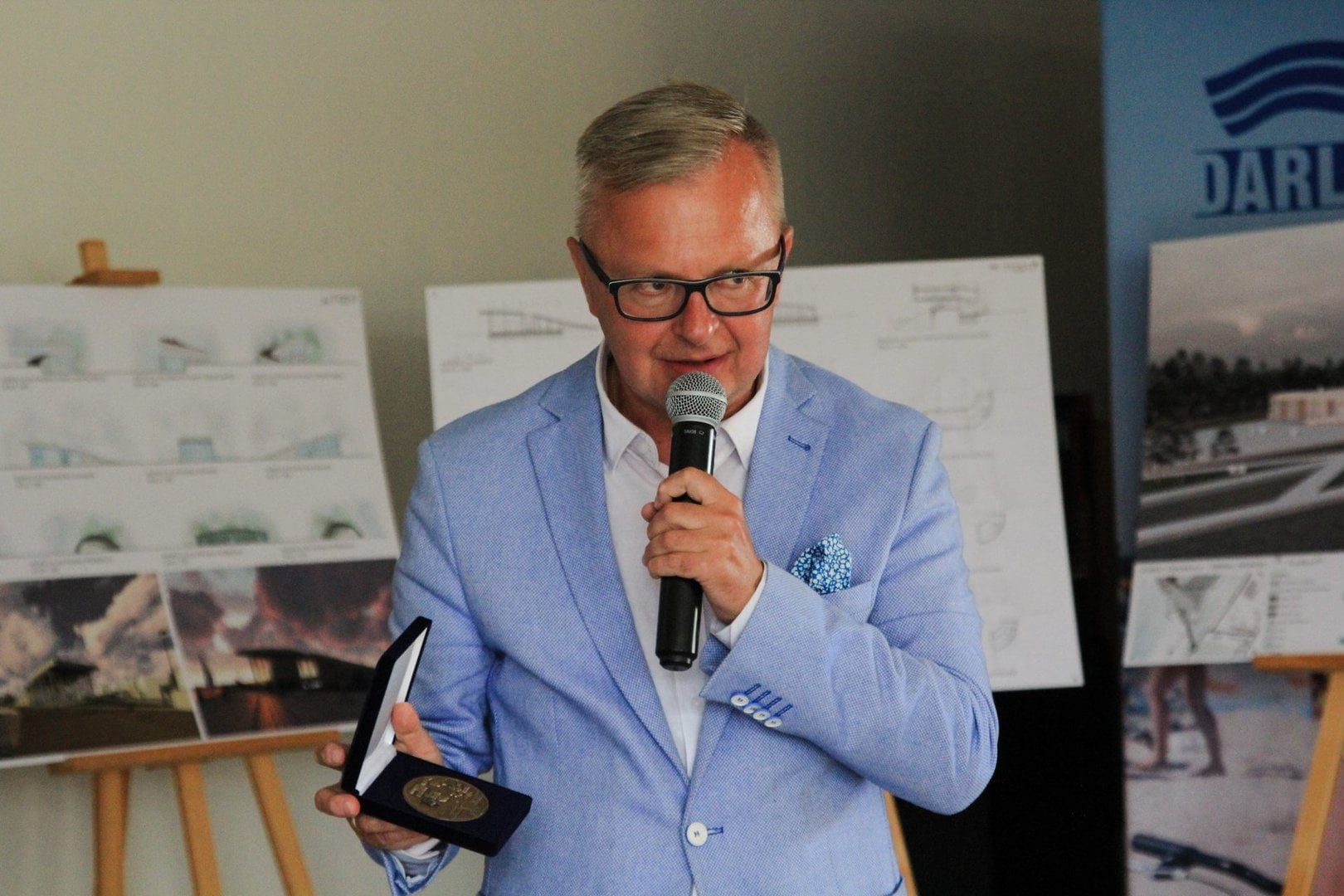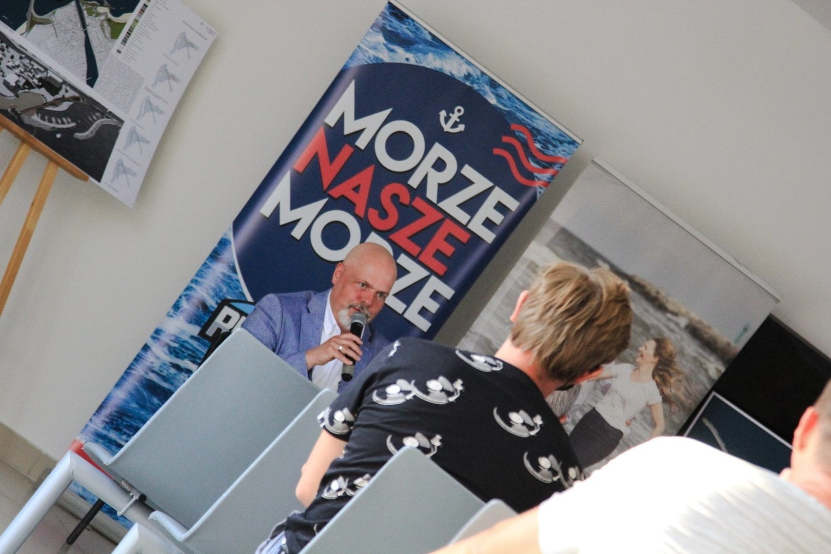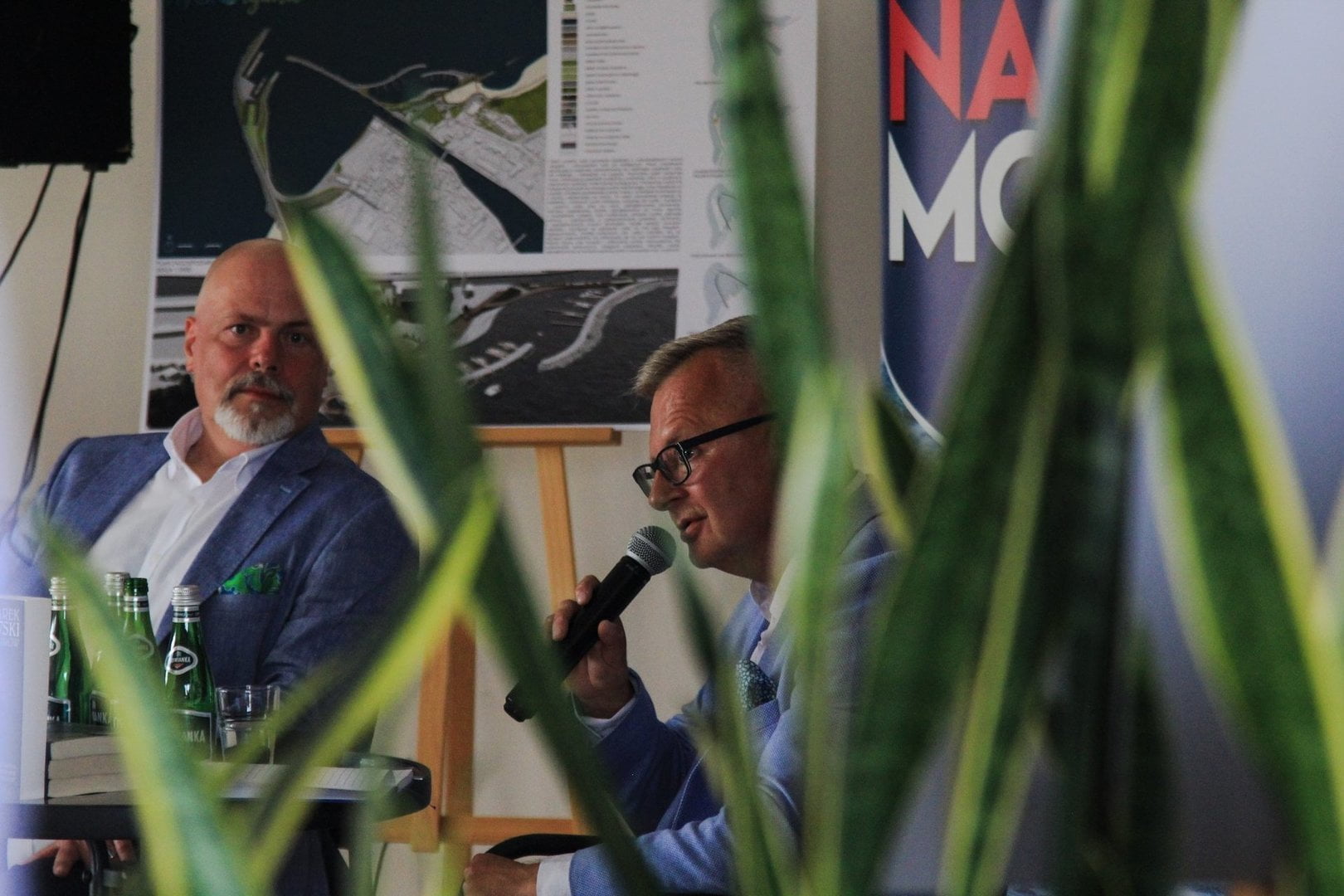 Ze znawstwem i wielką znajomością dzieł autorarozmowę poprowadził przyjaciel pisarza Arkadiusz Klimowicz – Burmistrz Darłowa. Pojawienie się pisarza w auli terminalu od razu przykuło uwagę uczestników spotkania. W Darłowie znacznie lepiej znają Marka Krajewskiego i jego twórczość, ponieważ jest on tu dosyć częstym gościem. Pierwszy raz był tu, będąc w Dąbkach na wakacjach, jako szesnastoletni młodzieniec. Z Darłowa wybrał sobie Małgorzatę swoją ukochaną muzę na małżonkę, która organizuje mu dogodne warunki do twórczości i dba o rozwój jego wielu talentów. Jest ona również pierwszym wymagającym recenzentem jego twórczości. Małgorzata i Marek Krajewscy byli pomysłodawcami Spotkań Literackich o tematyce kryminalnej, jakie były organizowane w Darłowie podczas Festiwalu Media i Sztuka. Był to jedyny w Polsce zjazd czołowych twórców powieści kryminalnych i osób związanych z tematyką kryminalną. Marek Krajewski był duchowym patronem i moderatorem Darłowskich Spotkań Literackich.W tych twórczych spotkaniach udział brali m.in.: Mariusz Czubaj, Marcin Wroński, Zygmunt Miłoszewski, Katarzyna Bonda, Paweł Jaszczuk oraz asy polskiej policji kryminalnej i medycy sądowi jak np. Paweł Leśniewski, Leszek Koźmiński, Jerzy Kawecki. Darłowo ze swoją atmosferą i gościnnością stanowi wyjątkowe miejsce do rozmów i spotkań z pisarzami powieści kryminalnych, ale też do przeprowadzania różnorodnych działań społeczno-artystycznych popularyzujących kulturę i sztukę. Wielka szkoda, że koronawirus uniemożliwił organizację tegorocznego już 10. Festiwalu Media i Sztuka zgodzili się prowadzący spotkanie Arkadiusz Klimowicz – burmistrz Darłowa i Marek Krajewski.