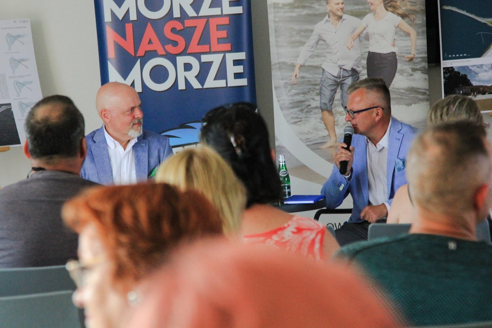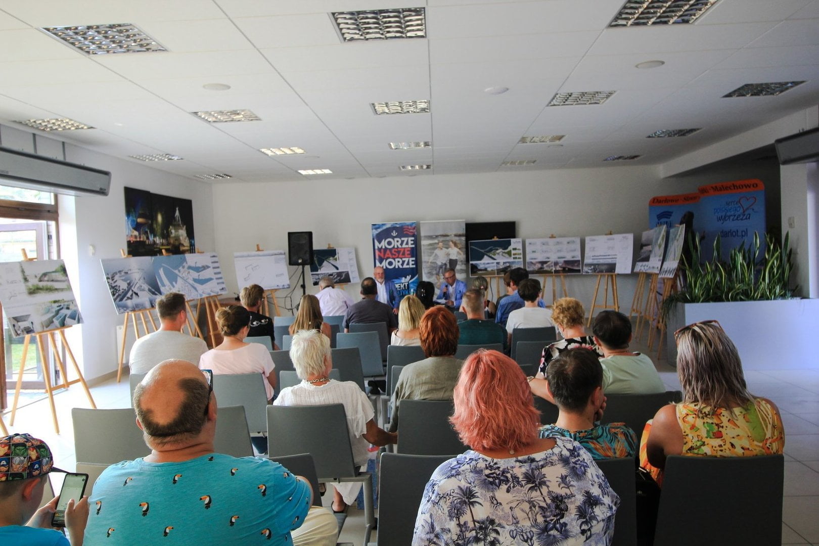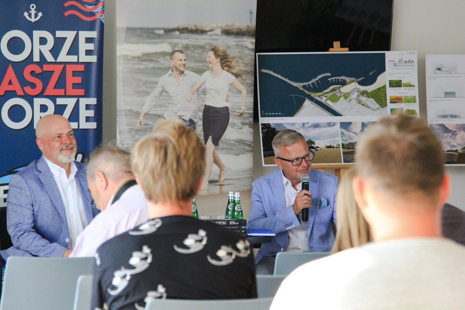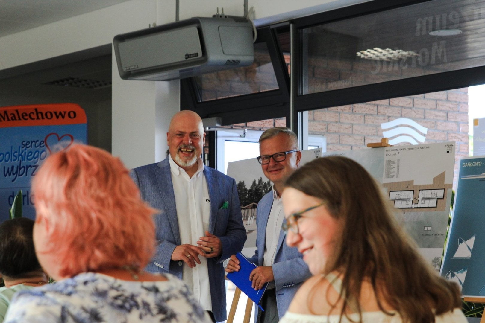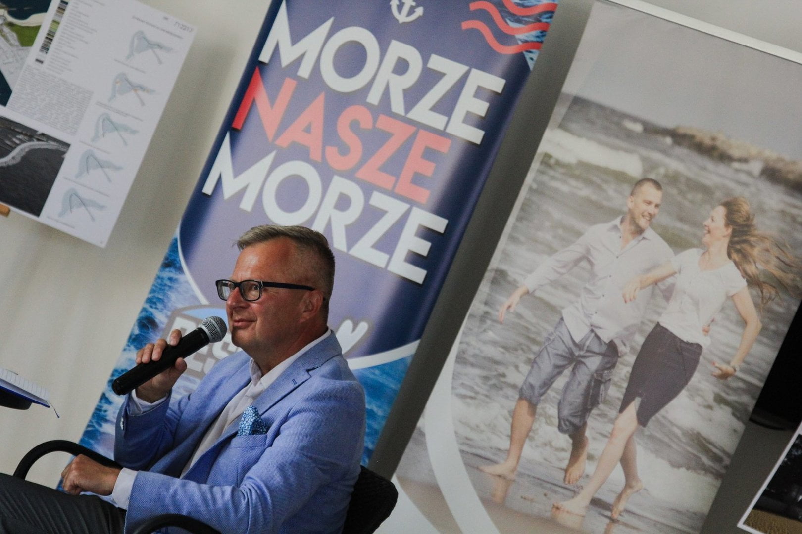 Ze znawstwem i wielką znajomością dzieł autorarozmowę poprowadził przyjaciel pisarza Arkadiusz Klimowicz – Burmistrz Darłowa. Pojawienie się pisarza w auli terminalu od razu przykuło uwagę uczestników spotkania. W Darłowie znacznie lepiej znają Marka Krajewskiego i jego twórczość, ponieważ jest on tu dosyć częstym gościem. Pierwszy raz był tu, będąc w Dąbkach na wakacjach, jako szesnastoletni młodzieniec. Z Darłowa wybrał sobie Małgorzatę swoją ukochaną muzę na małżonkę, która organizuje mu dogodne warunki do twórczości i dba o rozwój jego wielu talentów. Jest ona również pierwszym wymagającym recenzentem jego twórczości. Małgorzata i Marek Krajewscy byli pomysłodawcami Spotkań Literackich o tematyce kryminalnej, jakie były organizowane w Darłowie podczas Festiwalu Media i Sztuka. Był to jedyny w Polsce zjazd czołowych twórców powieści kryminalnych i osób związanych z tematyką kryminalną. Marek Krajewski był duchowym patronem i moderatorem Darłowskich Spotkań Literackich.W tych twórczych spotkaniach udział brali m.in.: Mariusz Czubaj, Marcin Wroński, Zygmunt Miłoszewski, Katarzyna Bonda, Paweł Jaszczuk oraz asy polskiej policji kryminalnej i medycy sądowi jak np. Paweł Leśniewski, Leszek Koźmiński, Jerzy Kawecki. Darłowo ze swoją atmosferą i gościnnością stanowi wyjątkowe miejsce do rozmów i spotkań z pisarzami powieści kryminalnych, ale też do przeprowadzania różnorodnych działań społeczno-artystycznych popularyzujących kulturę i sztukę. Wielka szkoda, że koronawirus uniemożliwił organizację tegorocznego już 10. Festiwalu Media i Sztuka zgodzili się prowadzący spotkanie Arkadiusz Klimowicz – burmistrz Darłowa i Marek Krajewski.