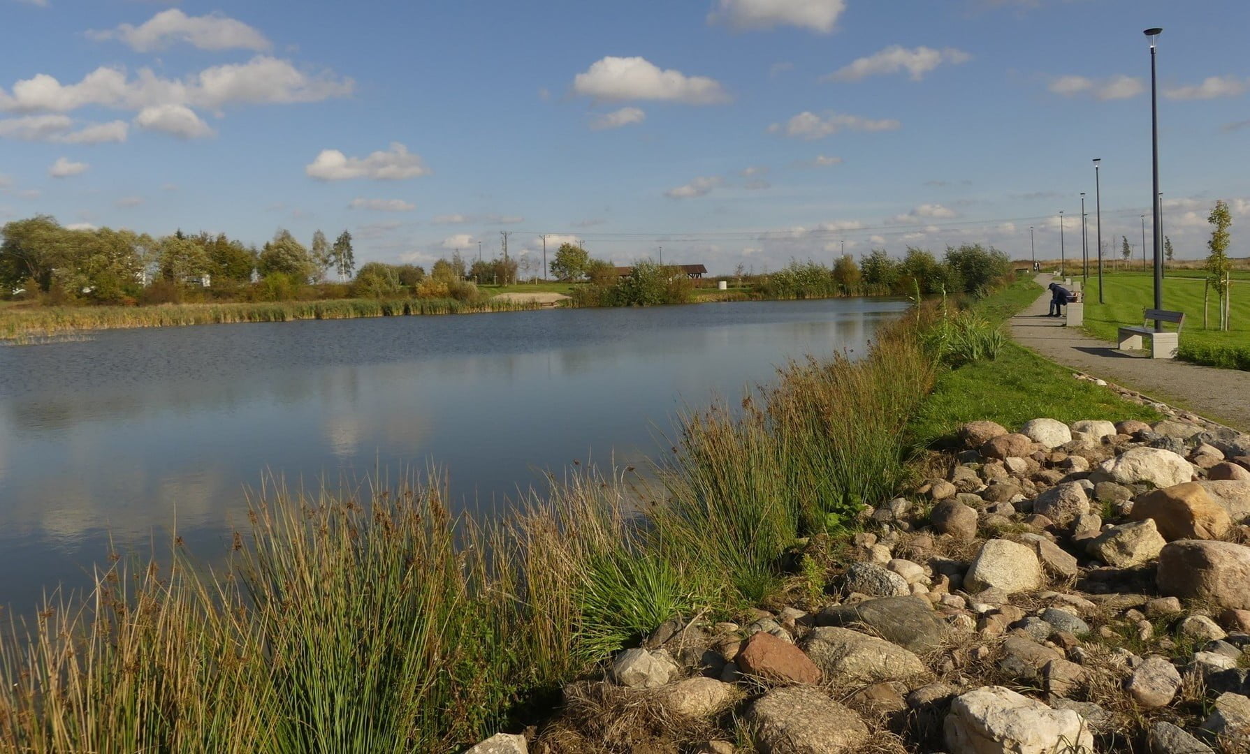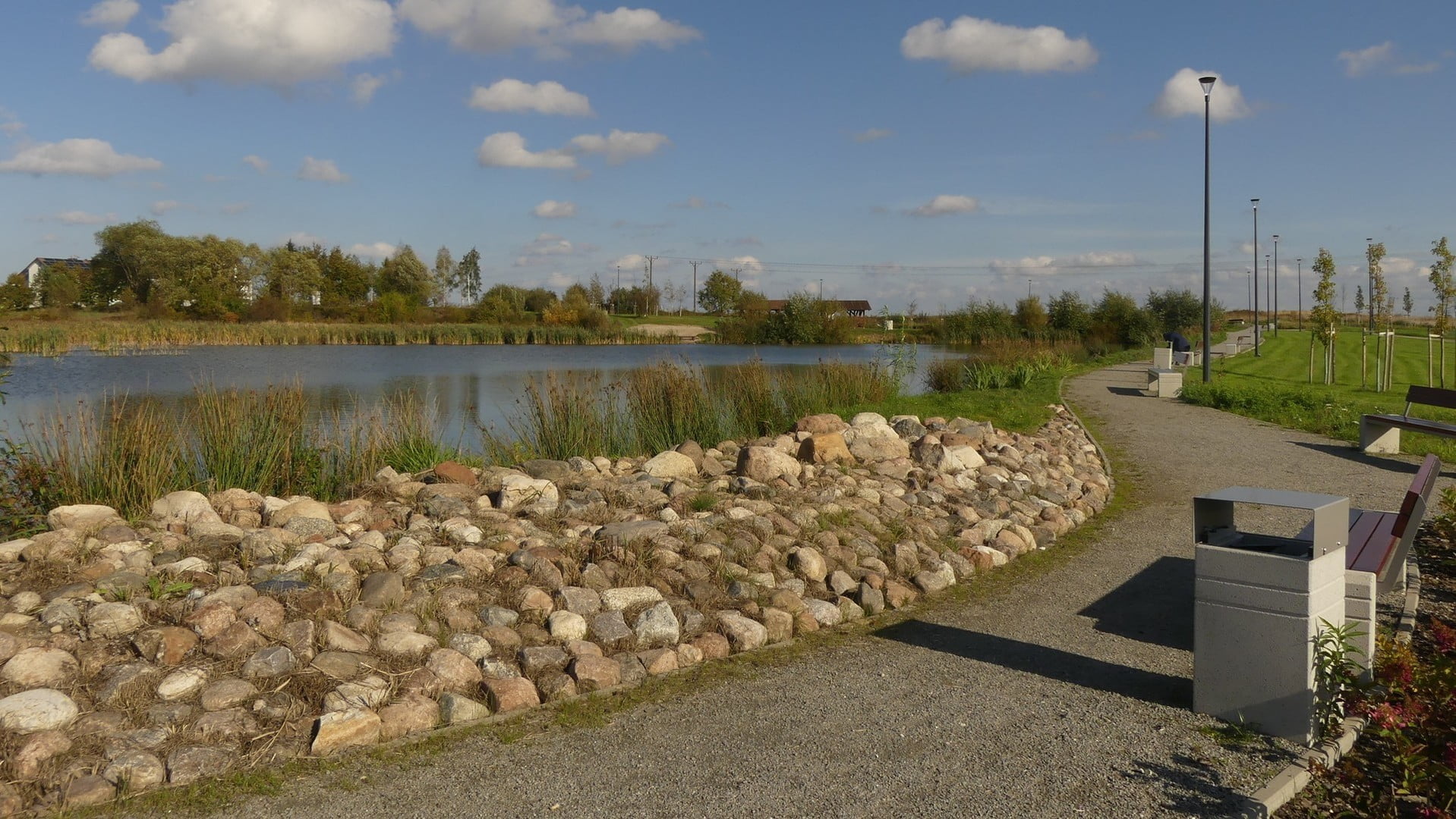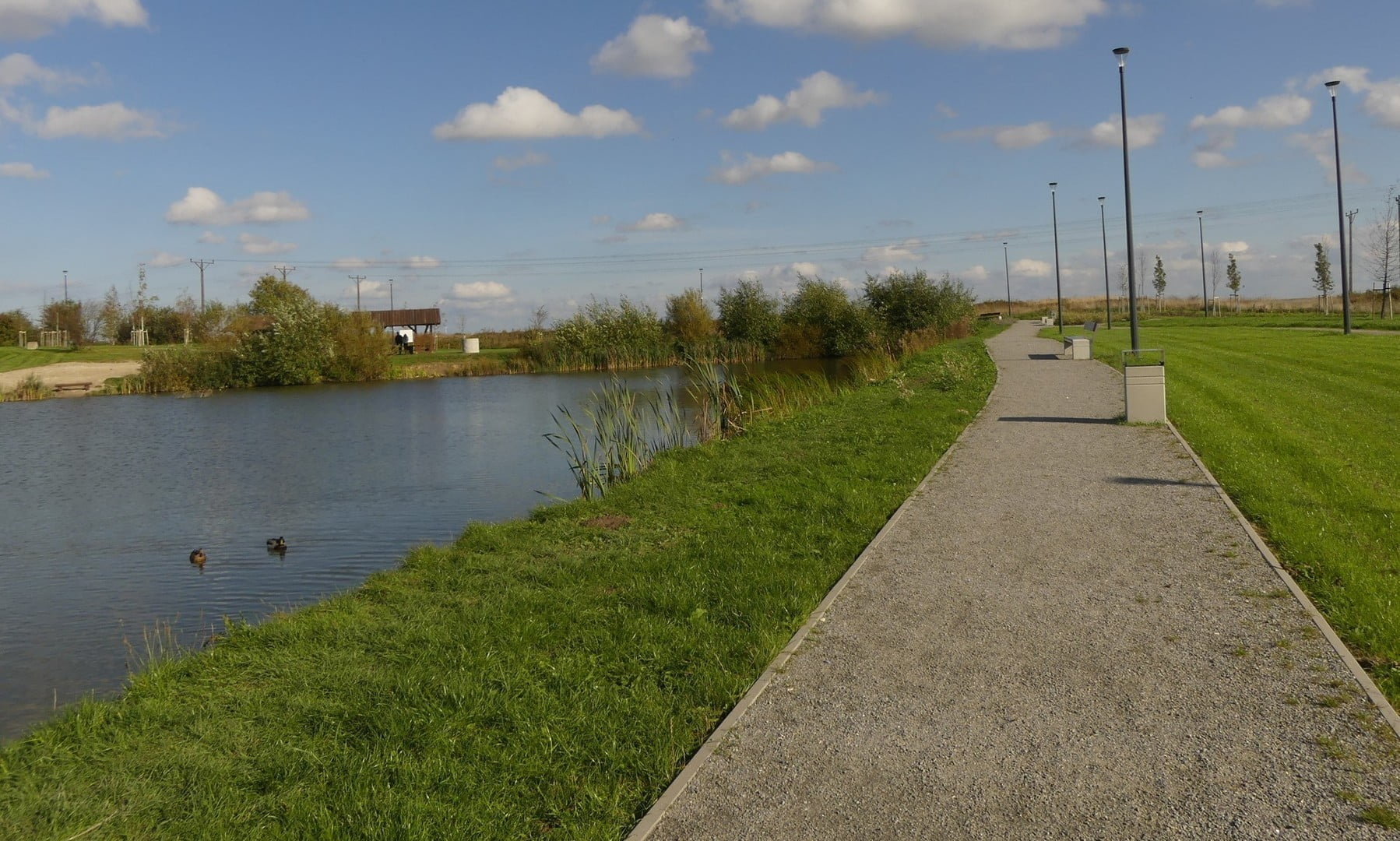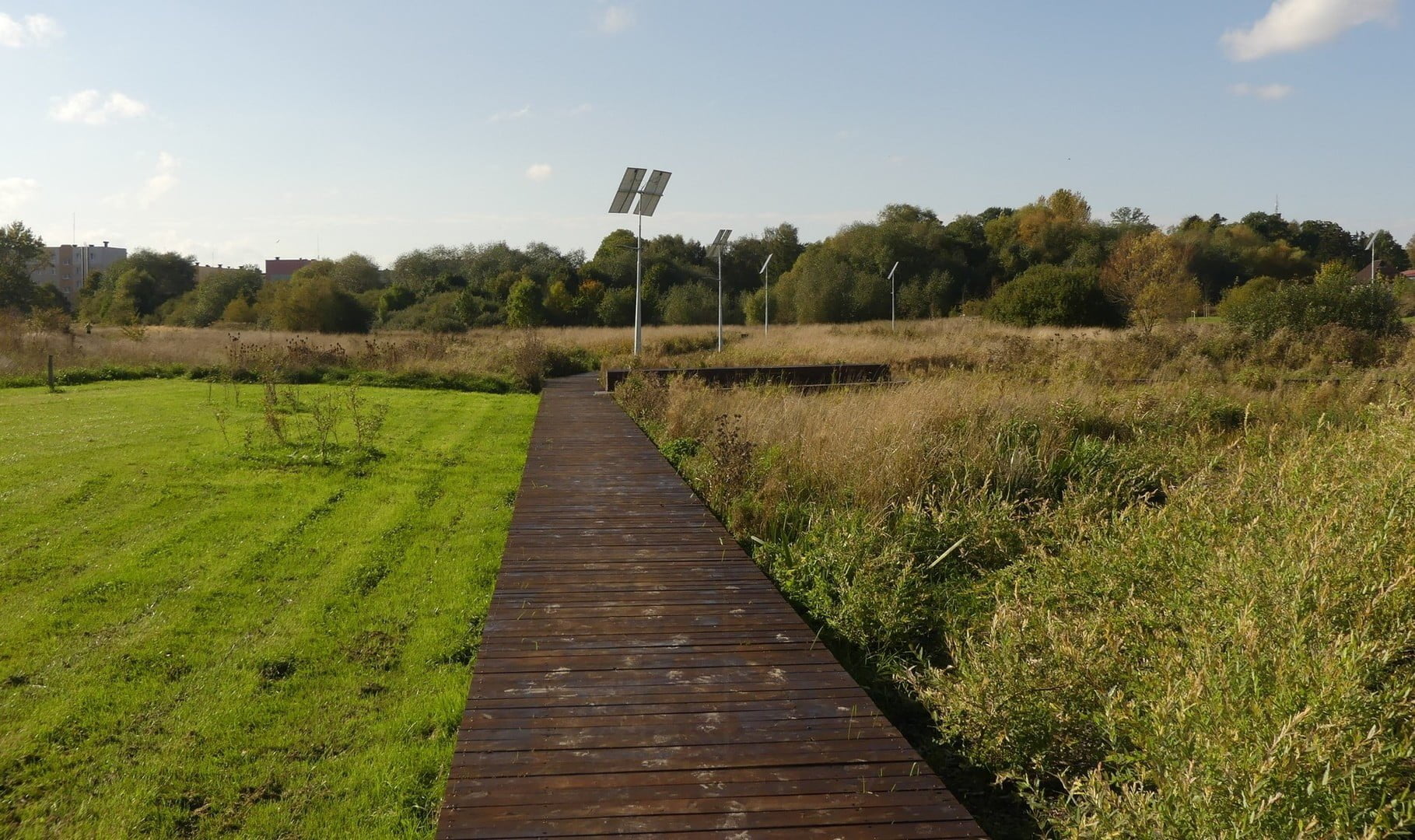 Na terenie parku znajduję się ścieżki piesze i pieszo-rowerowe o nawierzchni żwirowej, a na terenach podmokłych drewniane pomosty. W parku urządzono skwery kwiatowe i zasadzono steki drzew i krzewów. W kilku miejscach znajdują się place zabaw w połączeniu z elementami małej architektury. Setki ławek zachęcają do wypoczynku. Na terenie parku znajduje się również toaleta i wiele koszy na śmieci.