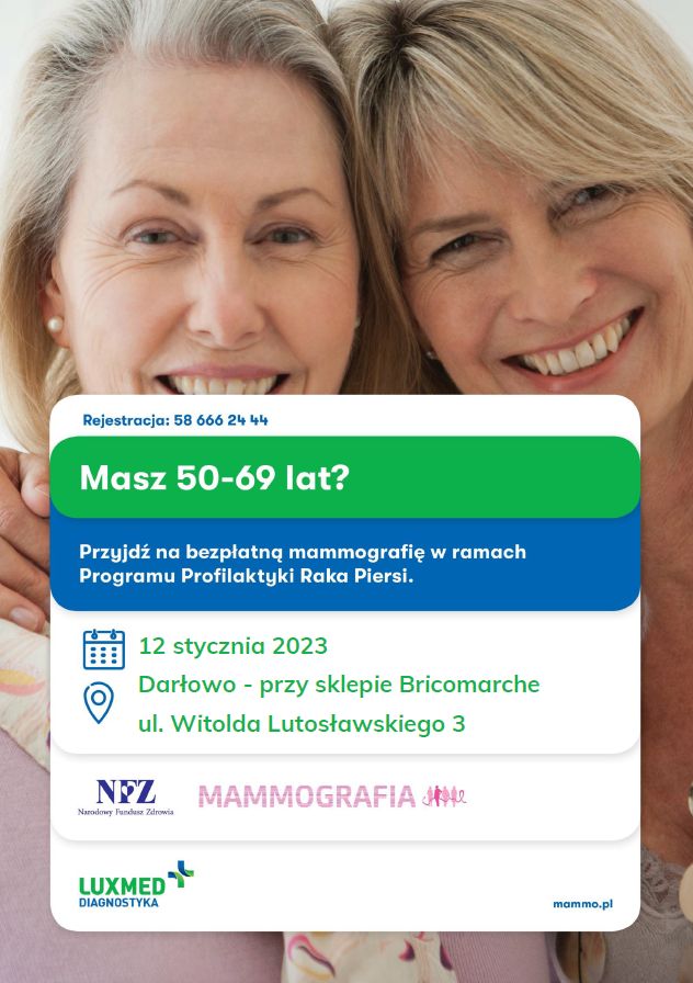 Zapraszamy do mobilnej pracowni mammograficznej LUX MED: Darłowo – 12 stycznia w godzinach od 9.00 do 15.00 przy sklepie Bricomarche, ul. Witolda Lutosławskiego 3