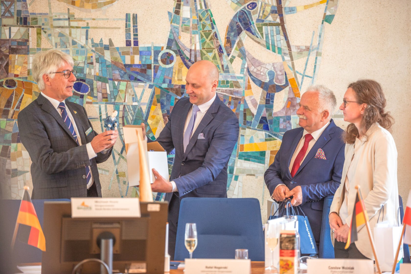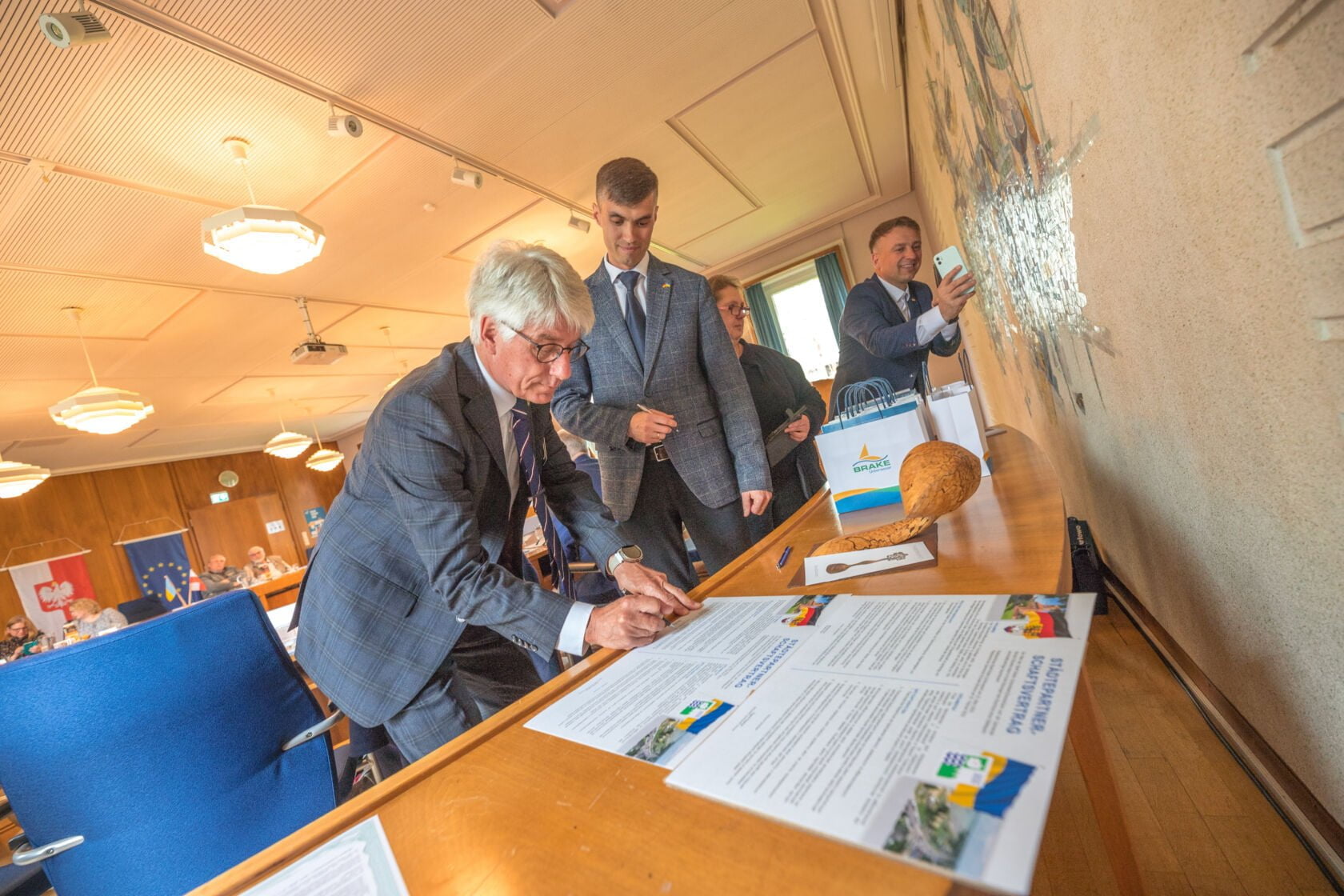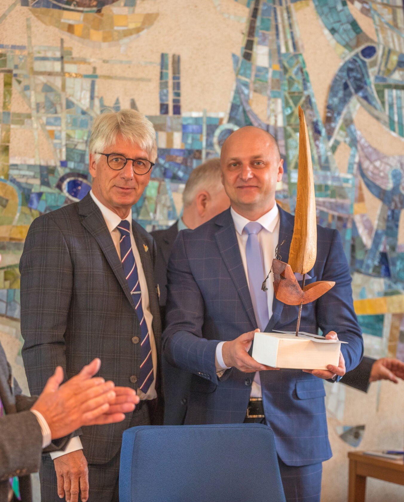 Osobom zaangażowanym w uroczystości podpisania umowy oraz 30 radnym Rady Miejskiej w Brake wręczono również specjalnie wybitą na tę okazję pamiątkową monetę.
