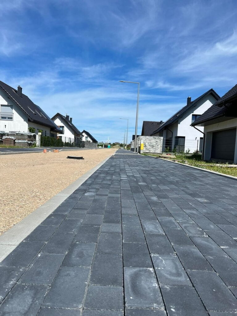 Nowoczesna ulica z kostki brukowej w słoneczny dzień