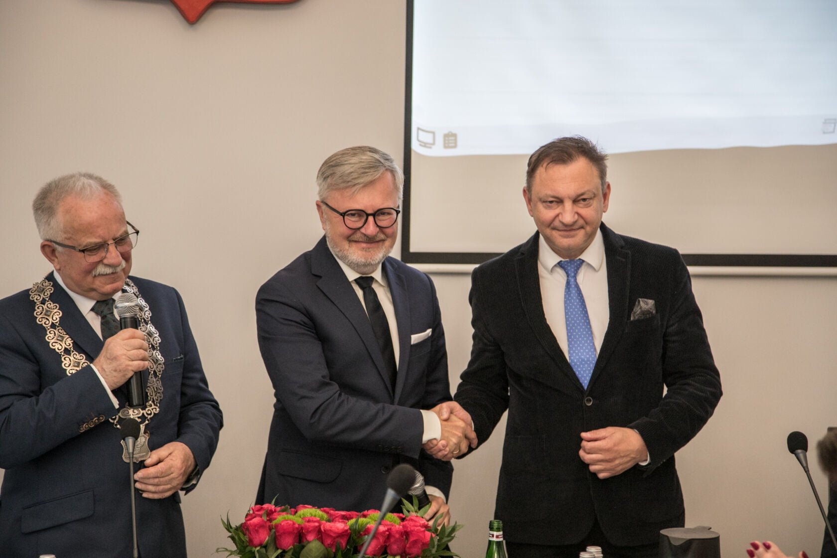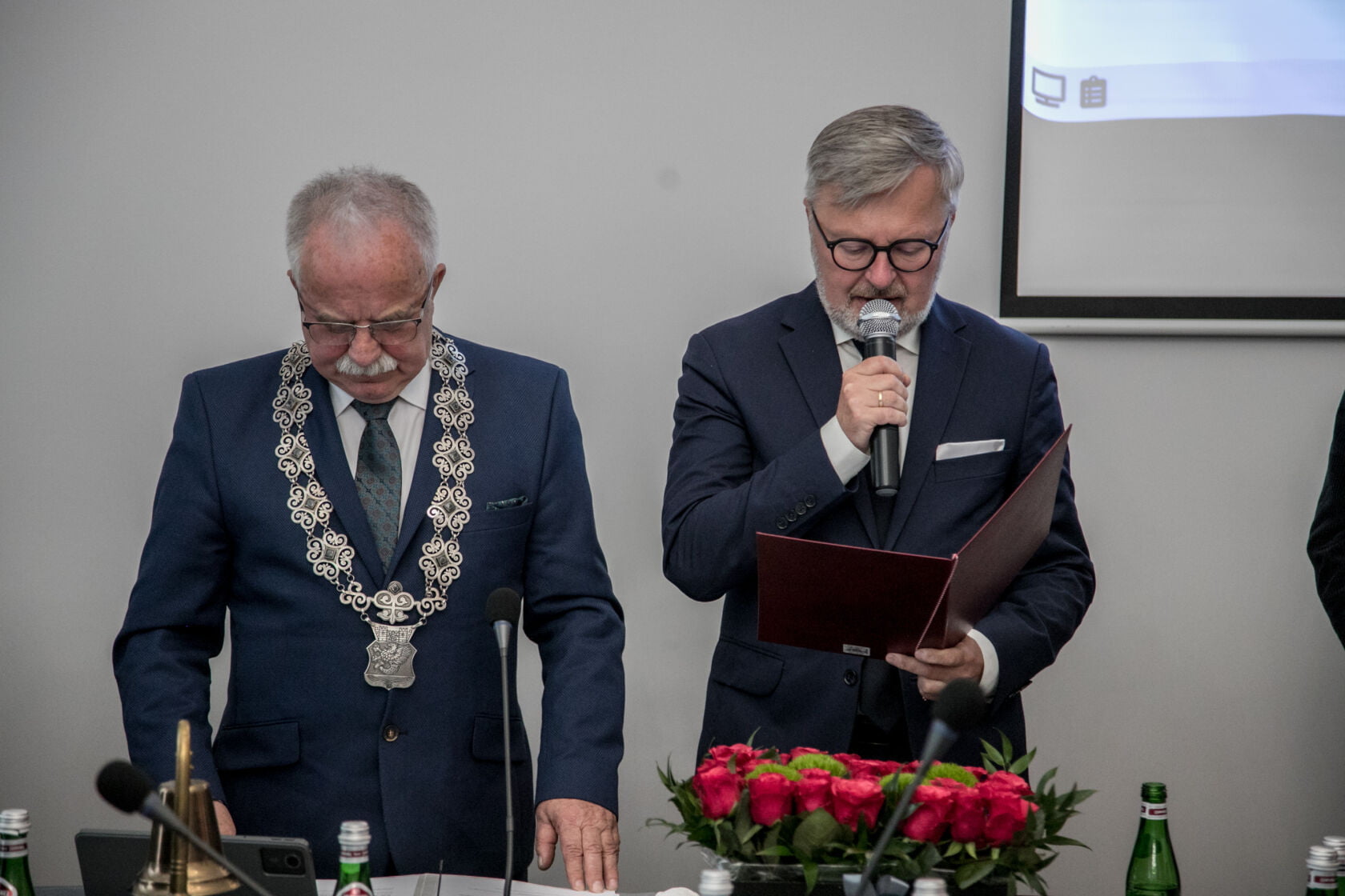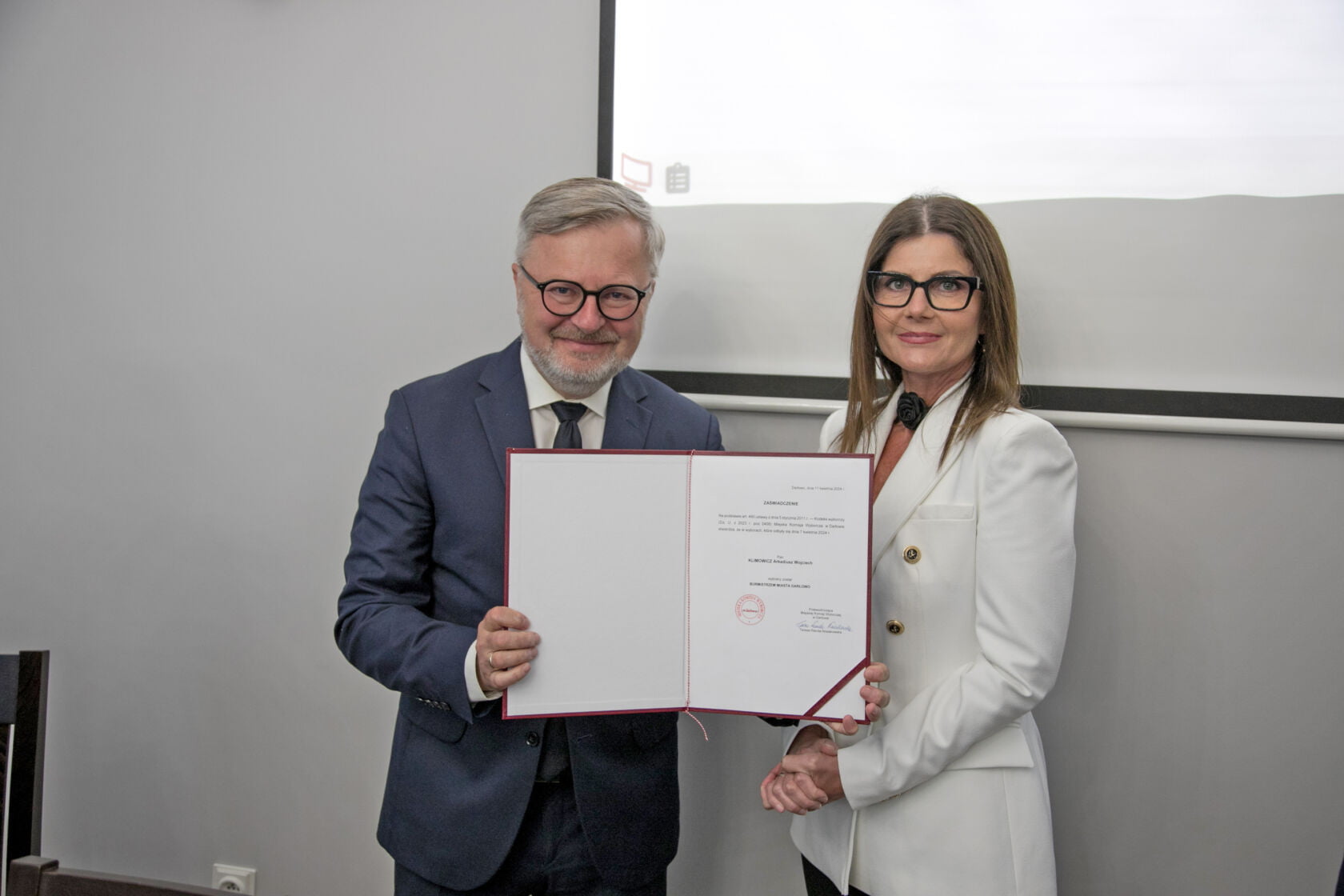 Darłowski samorząd uroczyście wszedł w kolejną, dziewiątą już kadencję. Jeszcze przed sesją zaświadczenie o wyborze na urząd burmistrza z rąk wiceprzewodniczącej Miejskiej Komisji Wyborczej odebrał Arkadiusz Klimowicz. Dla wieloletniego burmistrza Darłowa będzie to już szósta kadencja. – Chciałbym serdecznie podziękować mieszkańcom, że po raz kolejny powierzyli mi ten zaszczytny urząd. Jestem wzruszony – podkreślał burmistrz Klimowicz, który odebrał liczne gratulacje od przedstawicieli Urzędu Miejskiego oraz miejskich spółek i instytucji.