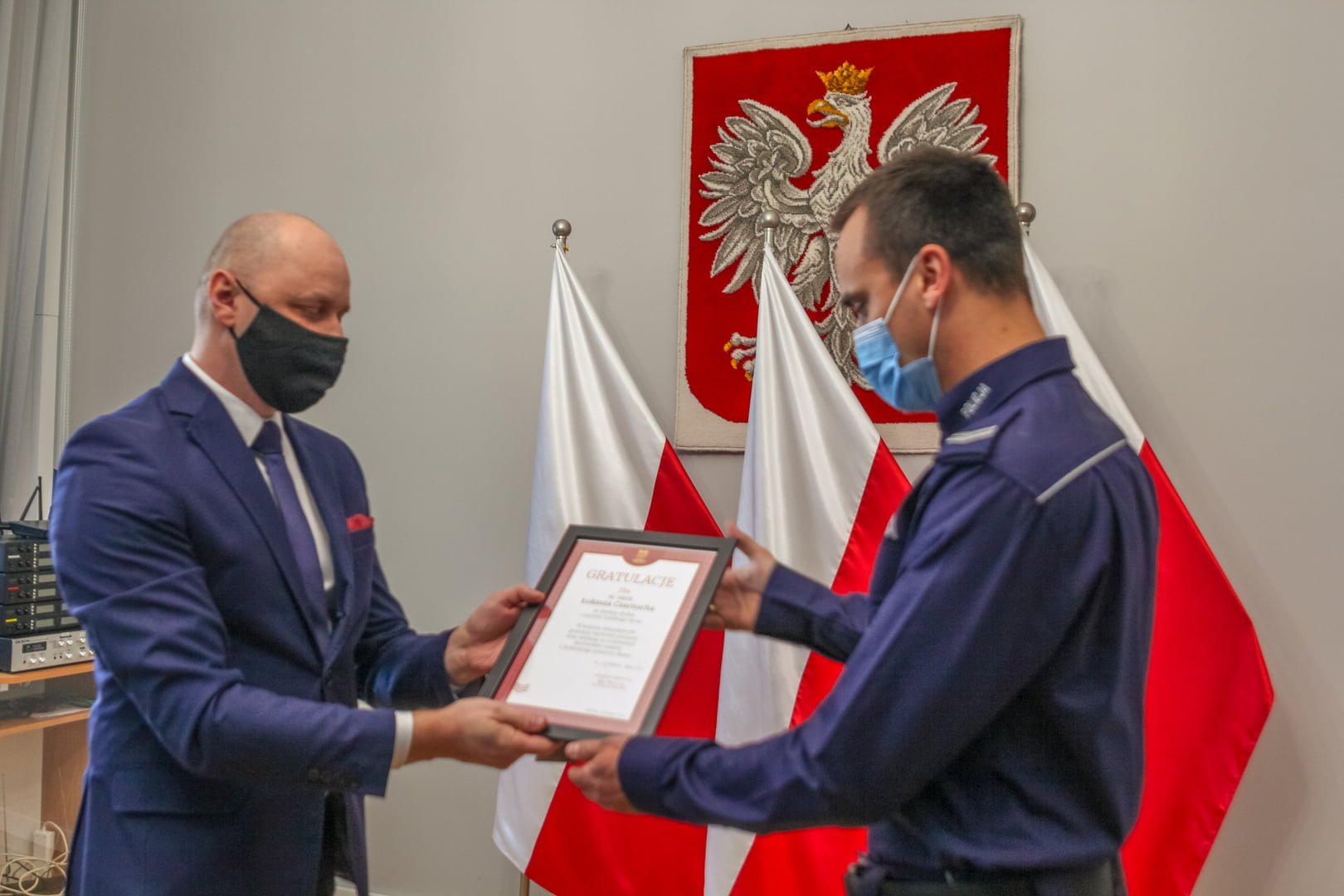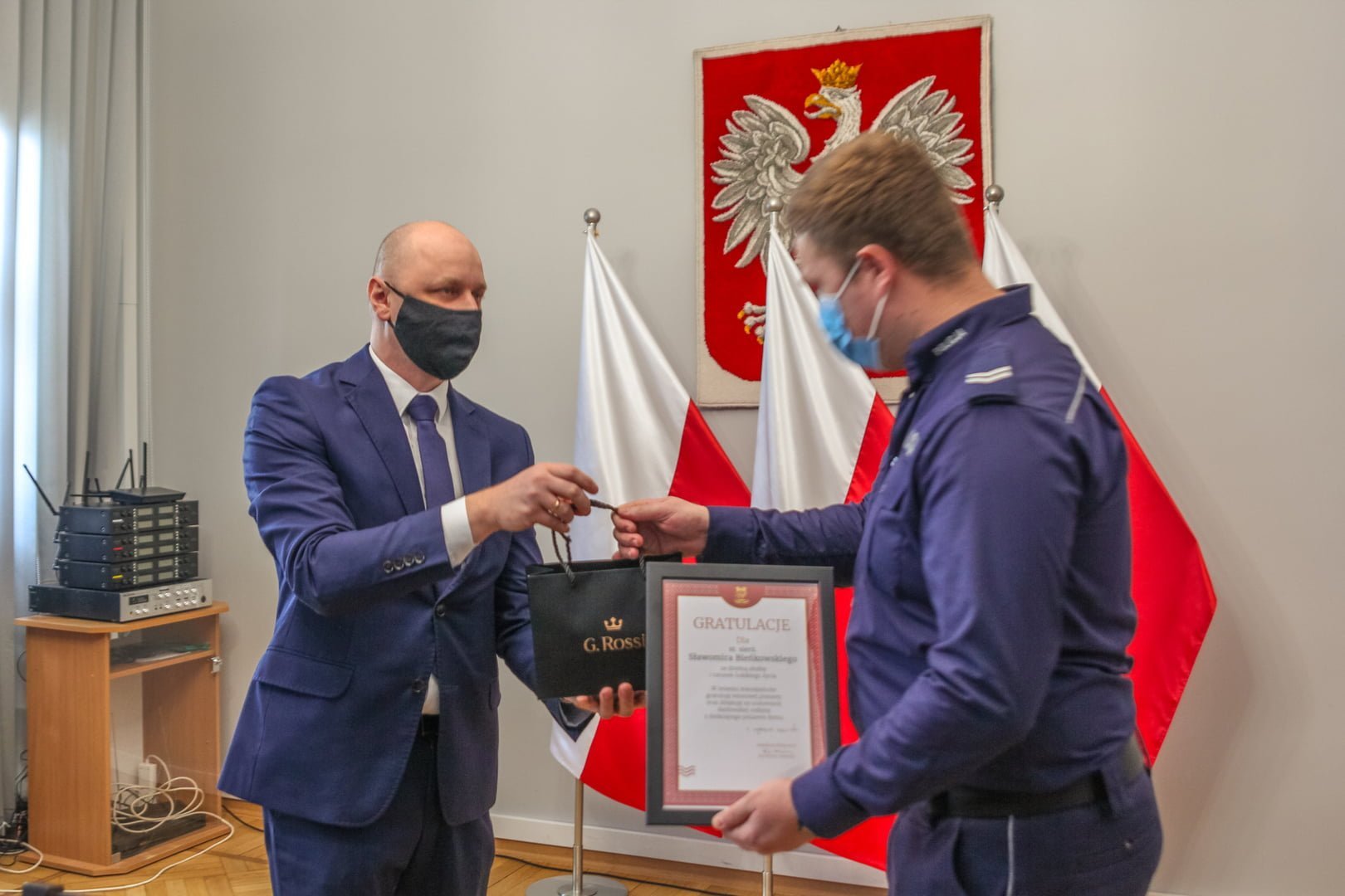 Burmistrz nagrodził policjantów, którzy uratowali mieszkańców z płonącej kamiennicy przy ul. Wenedów