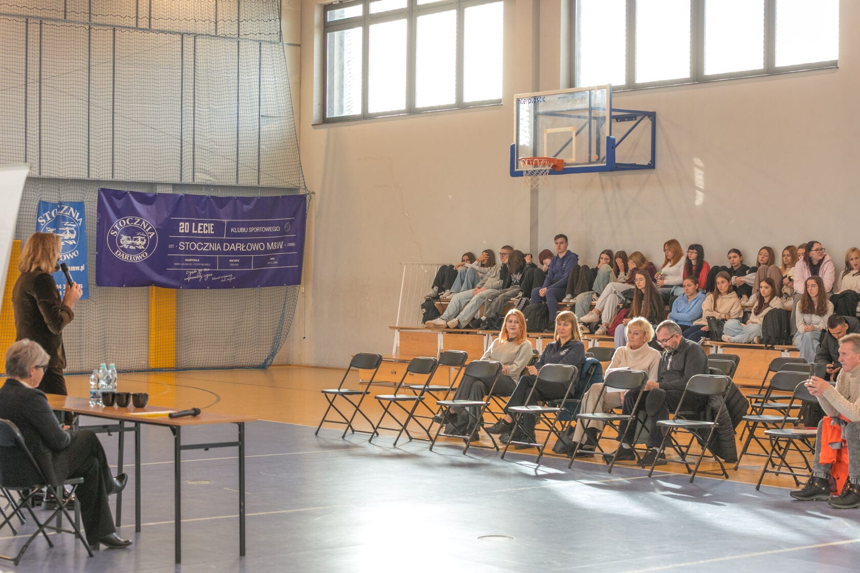 W sali sportowej Zespołu Szkół Morskich przy ul. Chopina odbyło się inspirujące spotkanie z prof. Tomaszem Sobierajskim – socjologiem, wykładowcą Uniwersytetu Warszawskiego, autorem wielu książek i znanym popularyzatorem nauki. Wydarzenie zatytułowane „Co nas łączy, a co dzieli? Dialog pokoleniowy” przyciągnęło zarówno uczniów, jak i mieszkańców Darłowa, którzy mimo pory znaleźli czas, by posłuchać wykładu, porozmawiać z profesorem, kupić jego książkę, zdobyć autograf czy zrobić pamiątkowe zdjęcie.