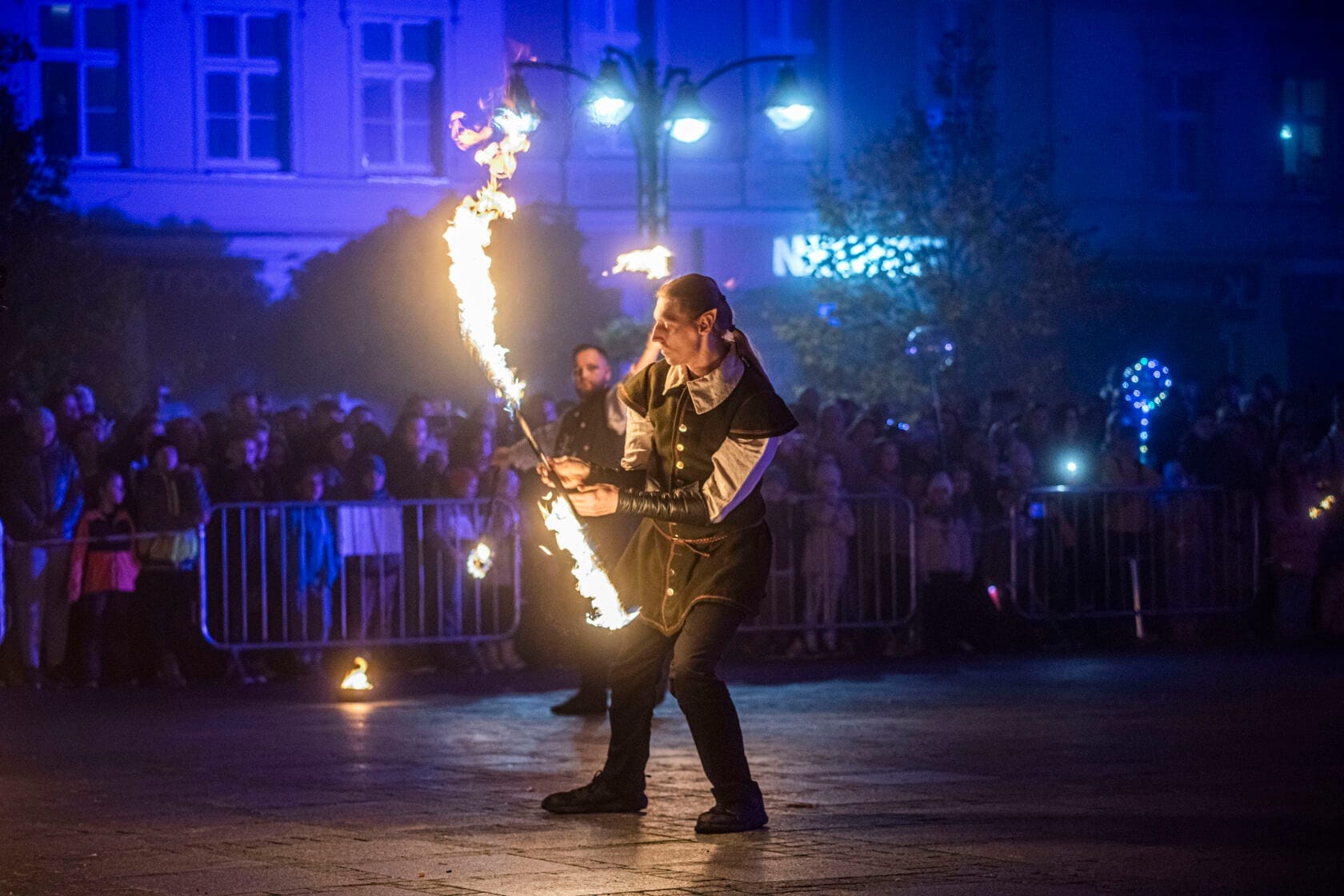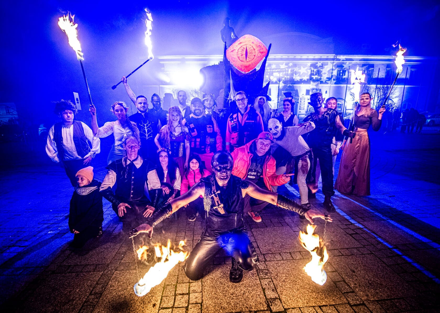 Kolejny raz darłowski rynek przed ratuszem stanął w ogniu i wypełnił się rekordową publicznością po brzegi. Tym razem mistrzowie tej płomiennej sztuki – ekipa JUMPFIRE z Koszalina – zabrała nas w gorącą podróż, gdzie motywem przewodnim była kultowa seria fantasy o hobbitach. Języki ognia, iskry i fajerwerki rozświetliły okalające Plac Kościuszki kamienice. Publiczność w części odziana w kolorowe kostiumy i udekorowana różnymi świetlnymi atrybutami gromkimi brawami nagradzała artystów z “teatru ognia” przez długi czas. – To już tradycja od wielu lat, że pod koniec października darłowiacy gromadzą się, aby zobaczyć ten niezwykły pokaz. Co roku zaskakiwani są nowym programem i umiejętnościami tej utalentowanej grupy. Głośne okrzyki zachwytu było słychać przez całe show. Jestem dumny, że Miasto Darłowo w kalendarzu ma właśnie tak ciekawą imprezę. – mówi Daniel Bonzay Frącz, który jest pomysłodawcą i organizatorem “fire show”.
