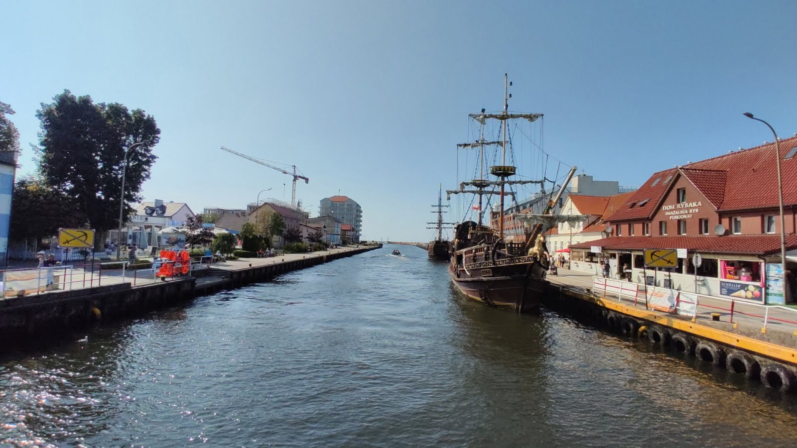 Do Darłówka dojedziemy ulicą Morską, a później nabrzeżem portowym. Po drodze zobaczymy zacumowane przy nim kutry rybackie.