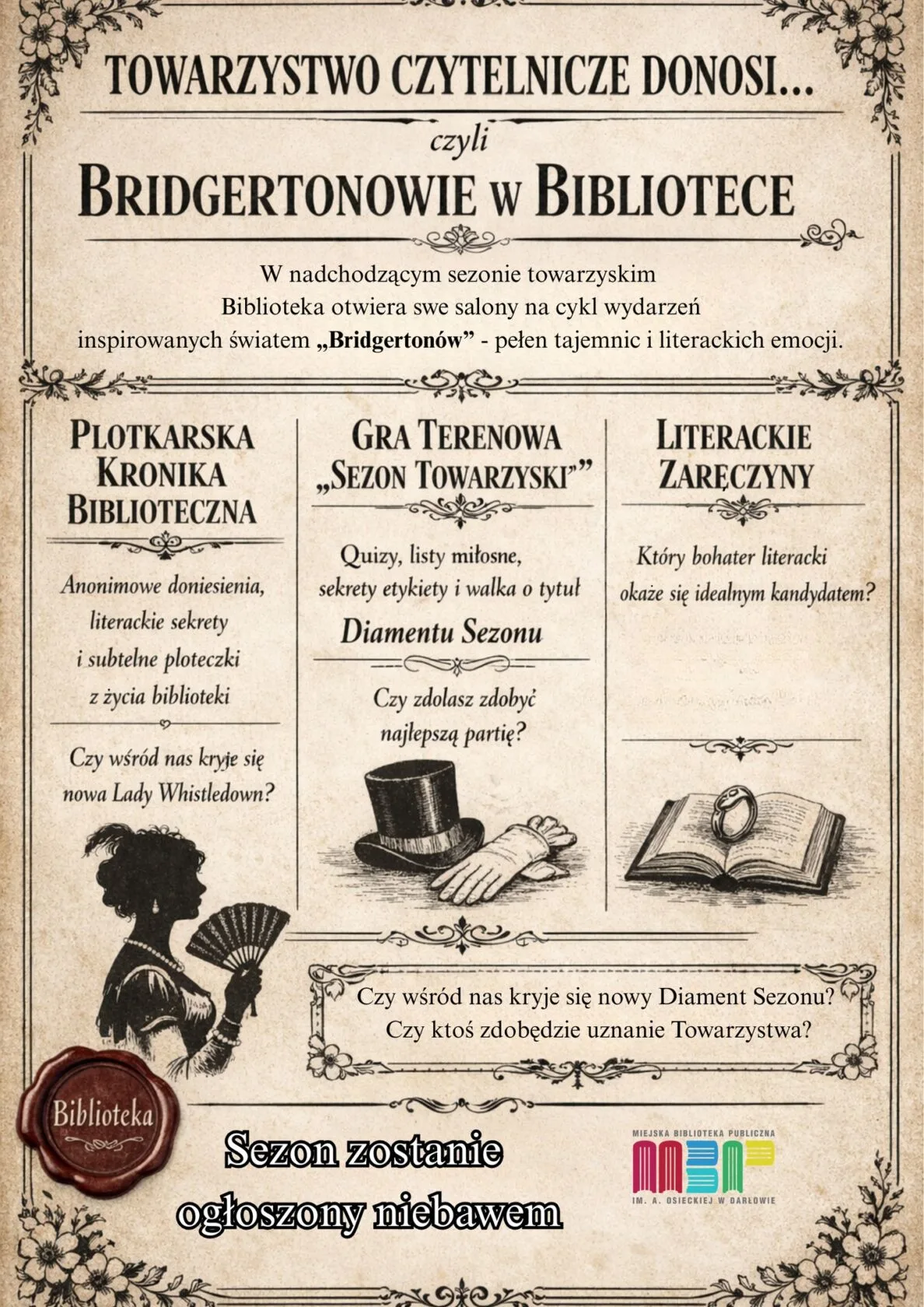 w nadchodzącym sezonie towarzyskim nasza biblioteka otwiera swe salony, przenosząc Cię do świata pełnego elegancji, intryg i subtelnych sekretów świata inspirowanego „Bridgertonami”.
