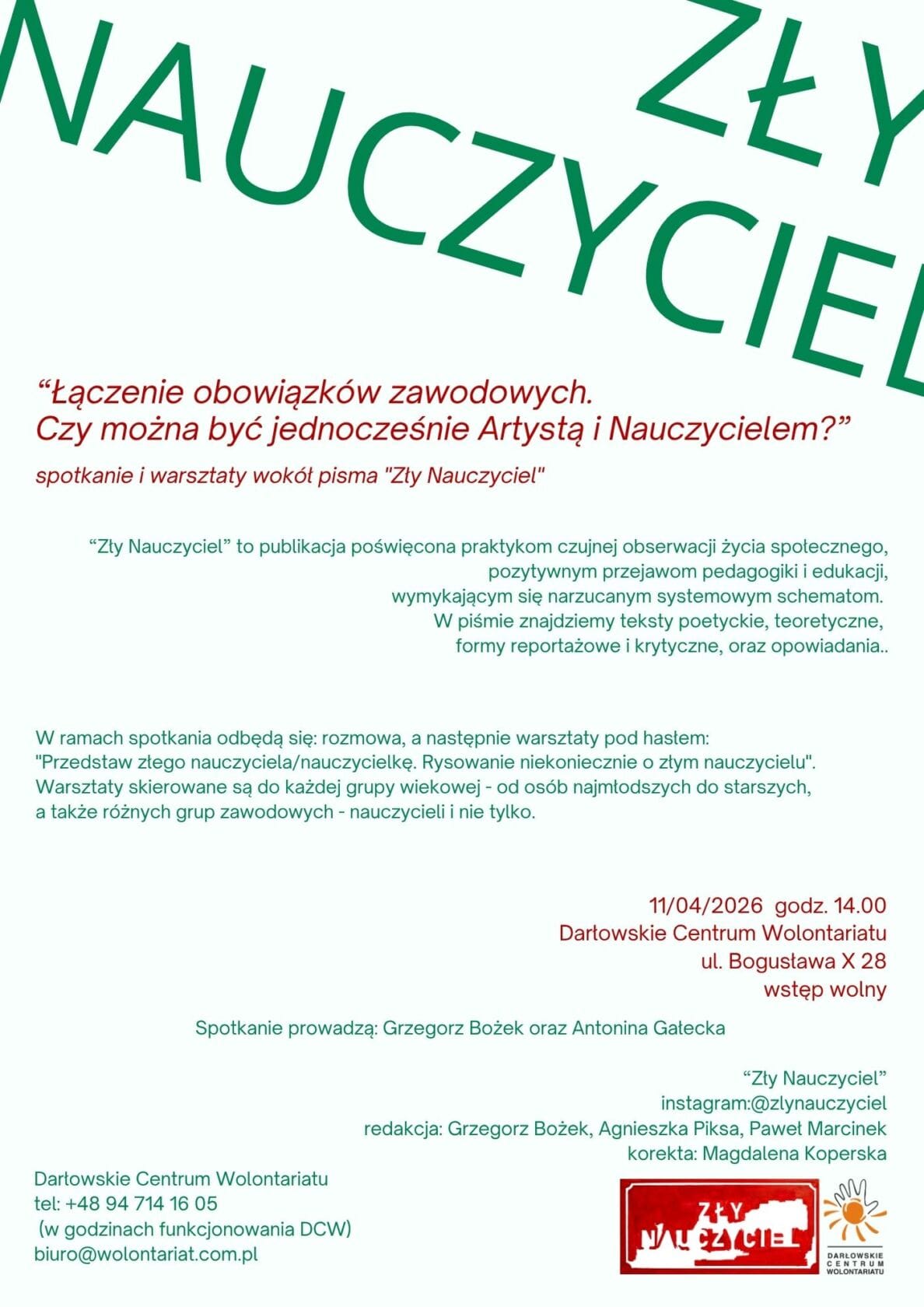 11 kwietnia – Spotkanie i warsztaty wokół pisma “Zły Nauczyciel”