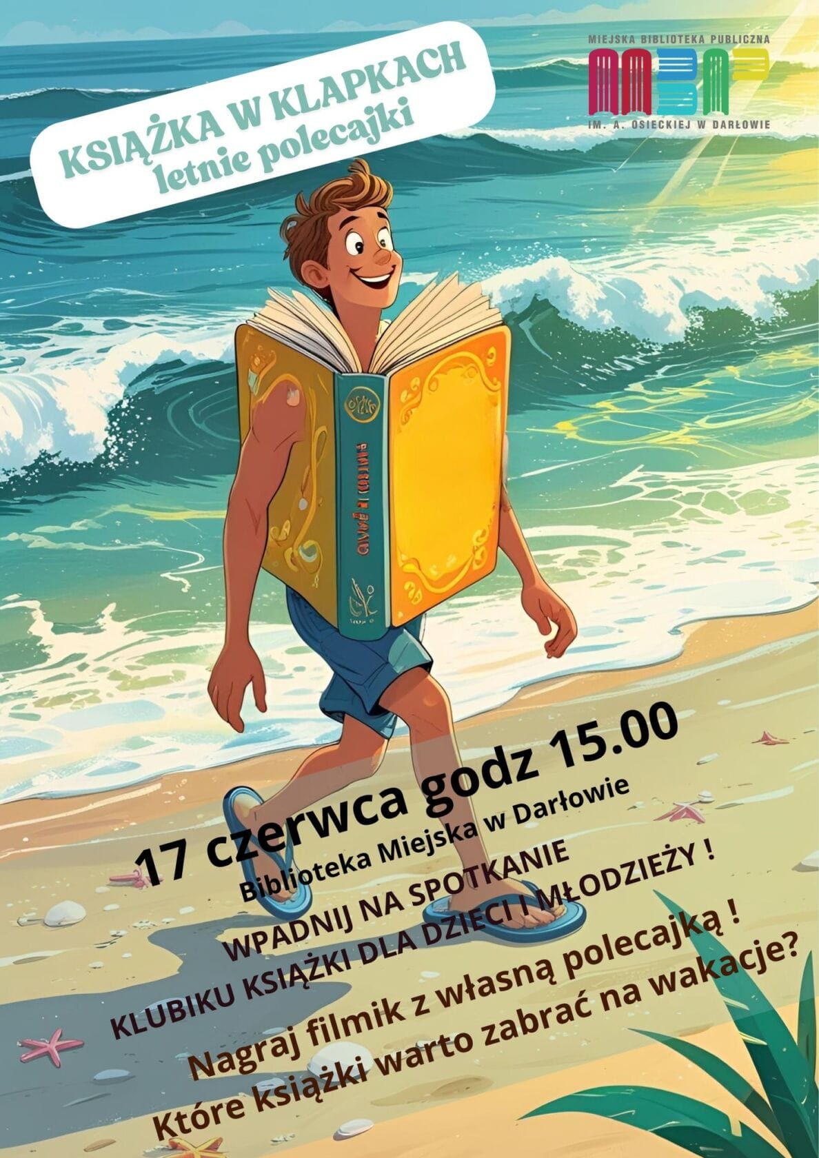Ksiązka w klapkach – letnie polecajki Wpadnij na spotkanie Klubiku Książki dla dzieci i Młodzieży! Nagraj filmik z własną polecajką! Które książki warto zabrać na wakacje?