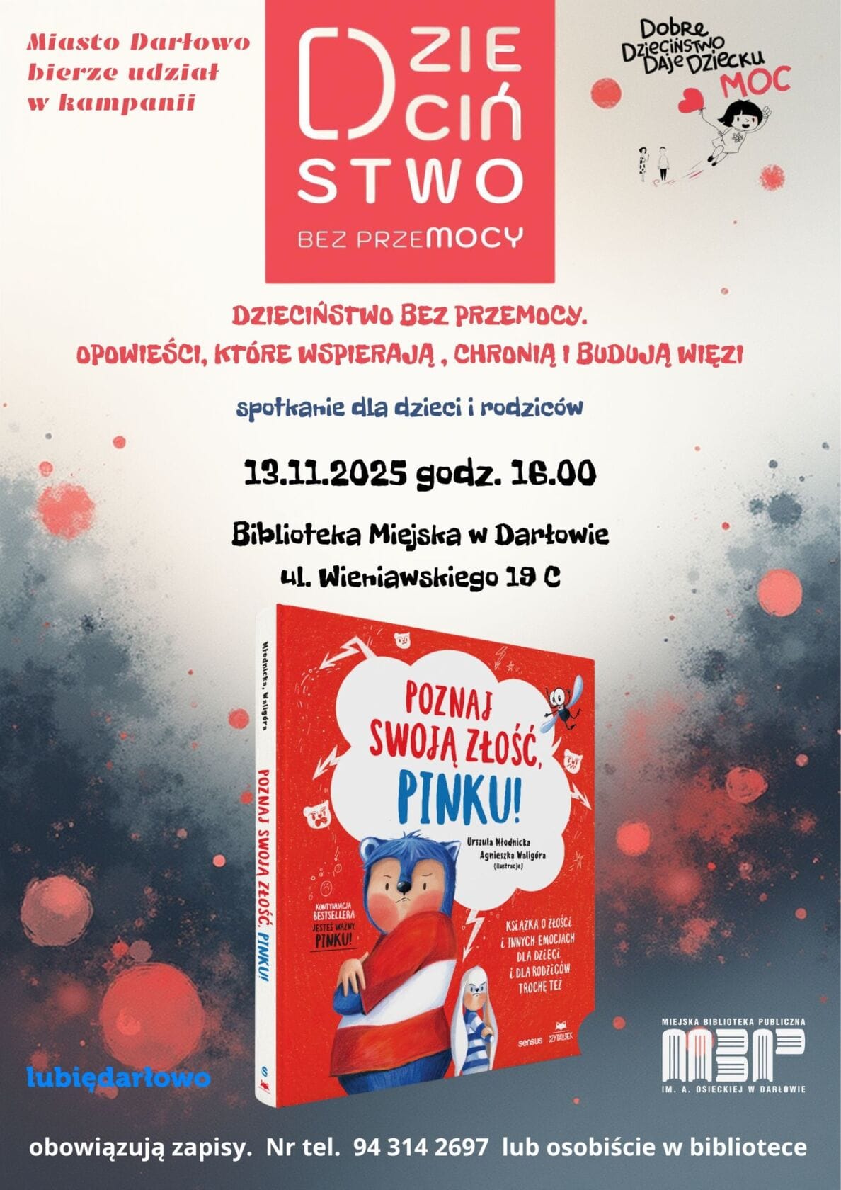 Miejska Biblioteka Publiczna w Darłowie zaprasza na spotkanie dla dzieci i rodziców ,,Opowieści, które wspierają, chronią i budują więzi”, w ramach projektu dzieciństwo bez przemocy.