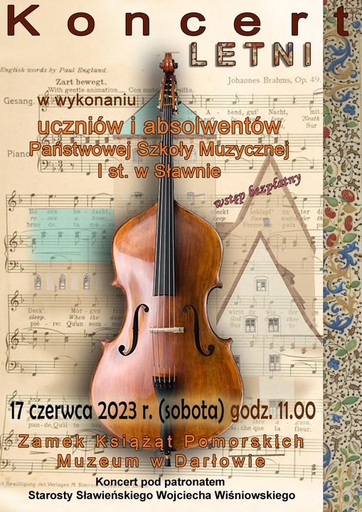 Zamek Książąt Pomorskich w Darłowie wraz z Państwową Szkołą Muzyczną I st. w Sławnie zaprasza na KONCERT LETNI, który odbędzie się w sali rycerskiej darłowskiego zamku.