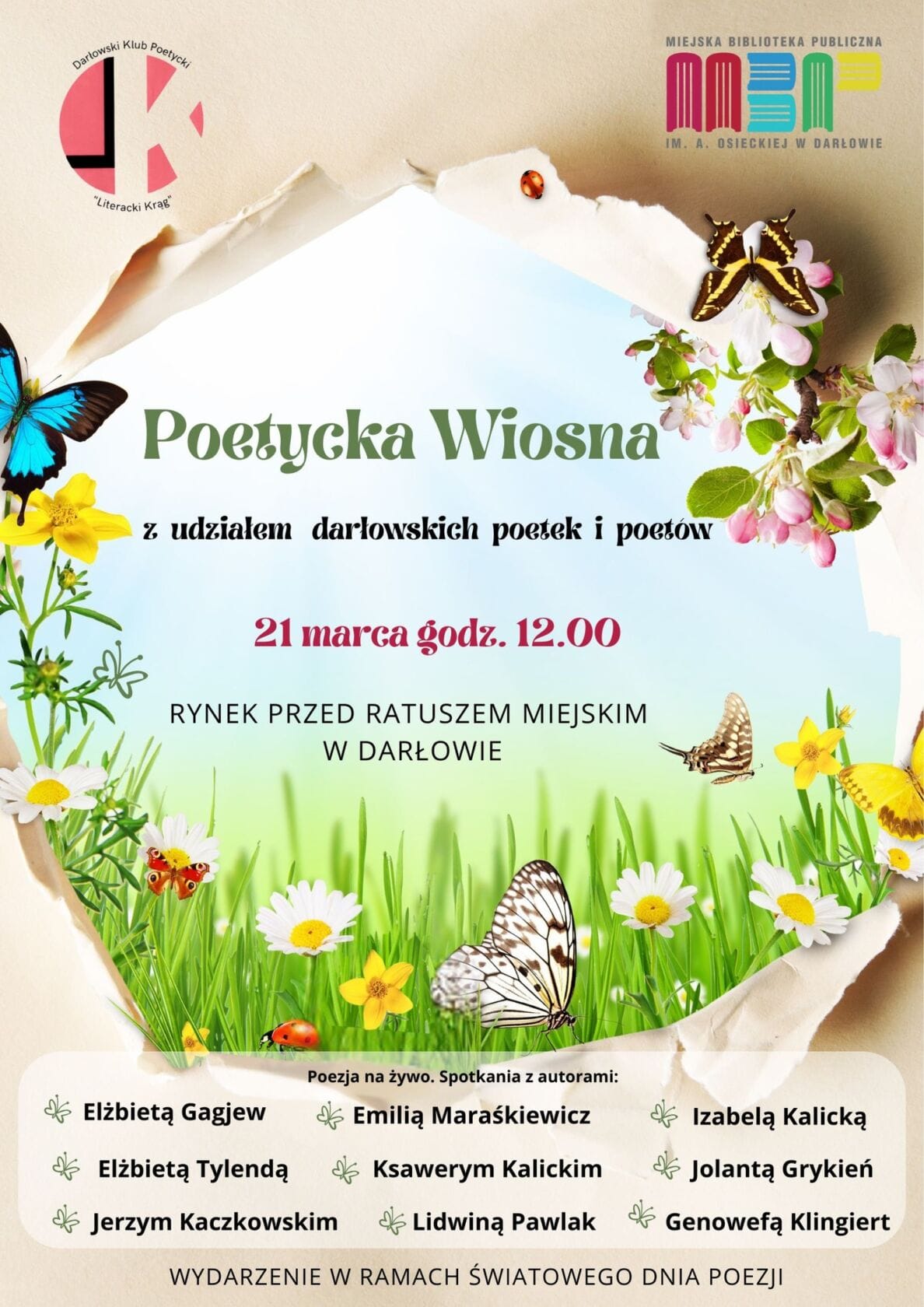 Darłowo budzi się do życia nie tylko wiosennym słońcem, ale i poezją! Już 21 marca, w samo południe, na placu Tadeusza Kościuszki odbędzie się wyjątkowy happening Poetycka Wiosna. W przestrzeni miejskiej zawisną wiersze darłowskich poetek i poetów, tworząc niezwykłą galerię słowa.