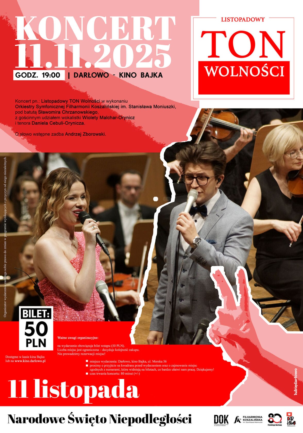 11 listopada – Listopadowy Ton Wolności – koncert w wykonaniu Orkiestry Symfonicznej Filharmonii Koszalińskiej
