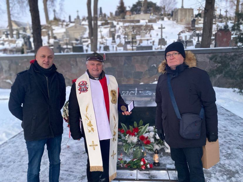 Darłowska delegacja złożyła też wizytę w miejscu wyjątkowym dla Polaków i polskiej historii. Mowa o Cmentarzu na Rossie w Wilnie, gdzie spoczywa wielu zasłużonych Polaków, w tym Matka Józefa Piłsudskiego i urna z sercem Marszałka. Tutaj doszło do spotkania ze związanym z Wileńszczyzną księdzem Dariuszem Stańczykiem, który jest inicjatorem wielu inicjatyw zarówno w Polce, jak i na Wileńszczyźnie. Od ponad dwudziestu lat organizuje m.in. Wileńską Sztafetę Niepodległości. Jest też kapelanem i uczestnikiem Międzynarodowego Motocyklowego Rajdu Katyńskiego, którego trasa wielokrotnie wiodła przez Litwę. Od 2015 roku prowadzi parafię katolicką w Tobolsku w Rosji. Z inicjatywy ks. Stańczyka powstał pierwszy na Litwie pomnik Jana Pawła II w Kowalczukach w rejonie wileńskim. Zastępca burmistrza Darłowa wręczył księdzu medal wybity z okazji 75-lecia Polskiego Darłowa.