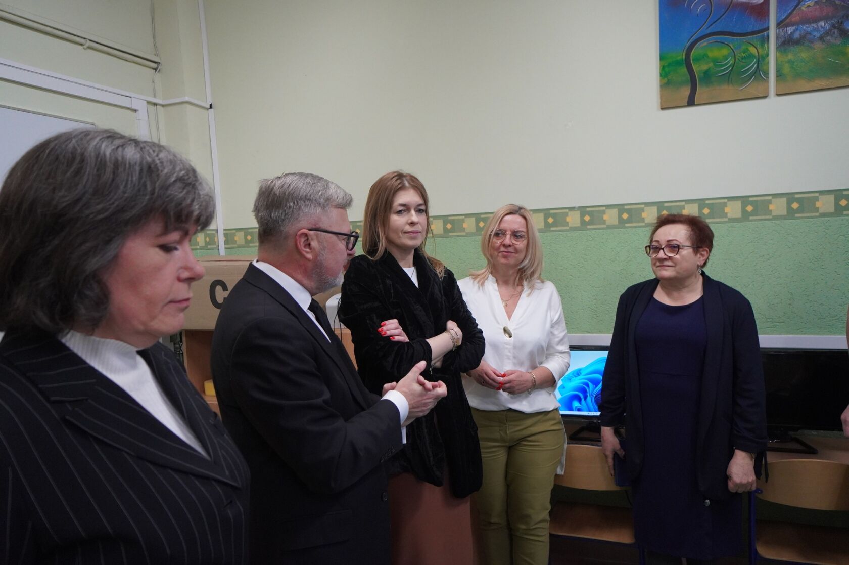 20.01.2023 roku na spotkaniu w Szkole Podstawowej nr 3 im. Króla Eryka Pomorskiego w obecności Burmistrza Pana Arkadiusza Klimowicza, Wiceburmistrza Pana Rafała Nagórskiego, kierowniczki Referatu Zamówień Publicznych Pani Joanny Sawickiej, kierownika Referatu Oświaty Spraw Społecznych Pana Zbigniewa Mielczarskiego, przewodniczącej Rady Rodziców Pani Joanny Klimowicz i Pani Dyrektor szkoły Bożeny Tatuśko odbyło się uroczyste przekazanie zakupionego sprzętu.