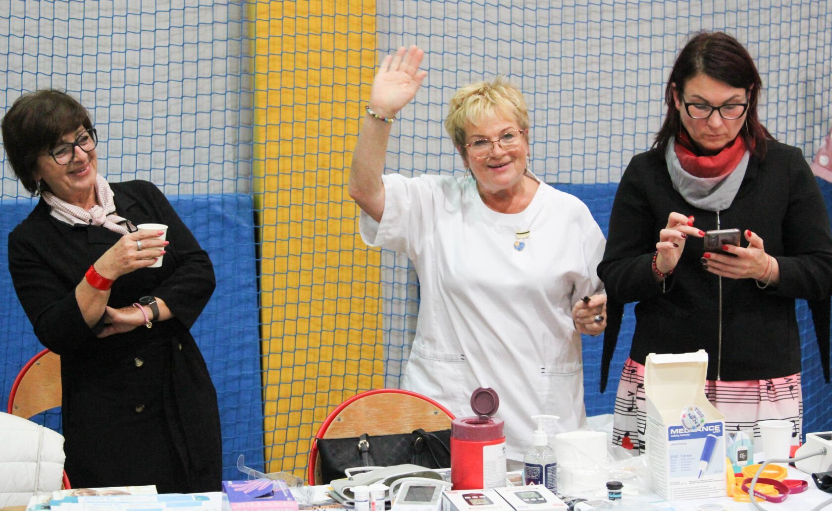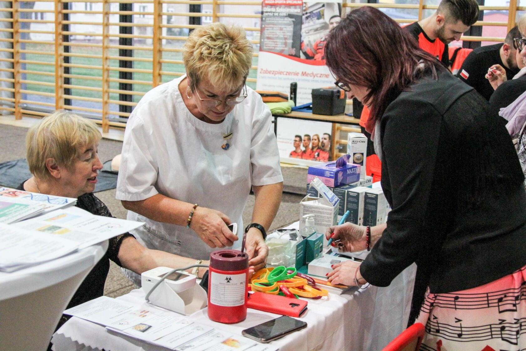 W międzyczasie można było skosztować przepyszne i pożywne cymesy ze szwedzkiego stołu, a stan zdrowotny seniorów sprawdzali dr Grzegorz Szymański i panie Wiktoria i Agnieszka Wyczesany. Była także możliwość porozmawiania z panią prezes Klubu Amazonki Darłowo – Elżbietą Betlińską, która przypomniała jak ważne jest regularne badanie. Bez wątpienia zwiększa to realne szanse na przeżycie w przypadku choroby nowotworowej, przy której czas często gra największą rolę.