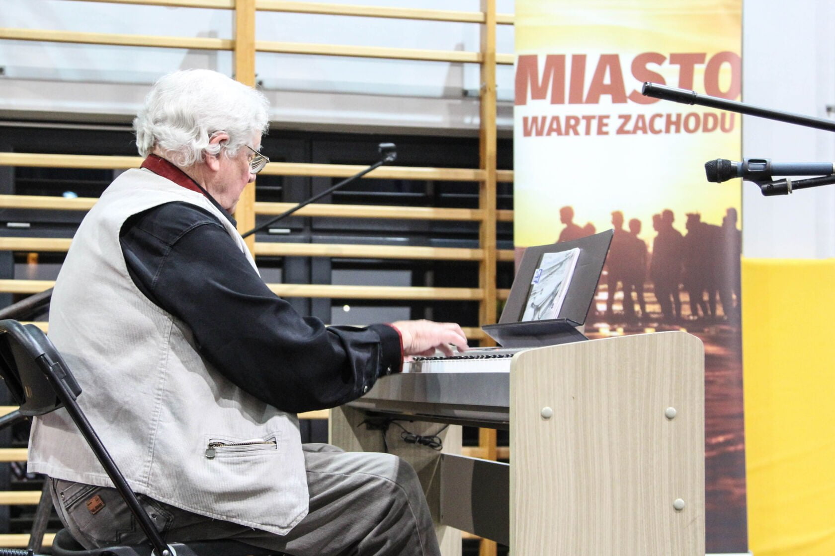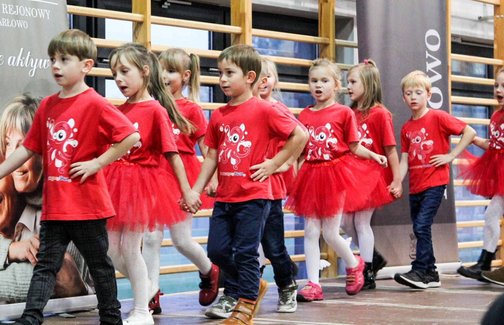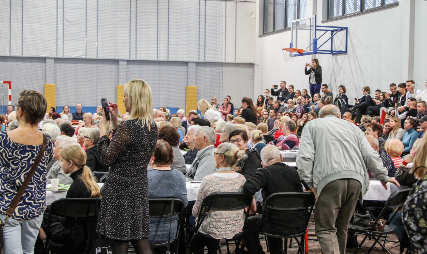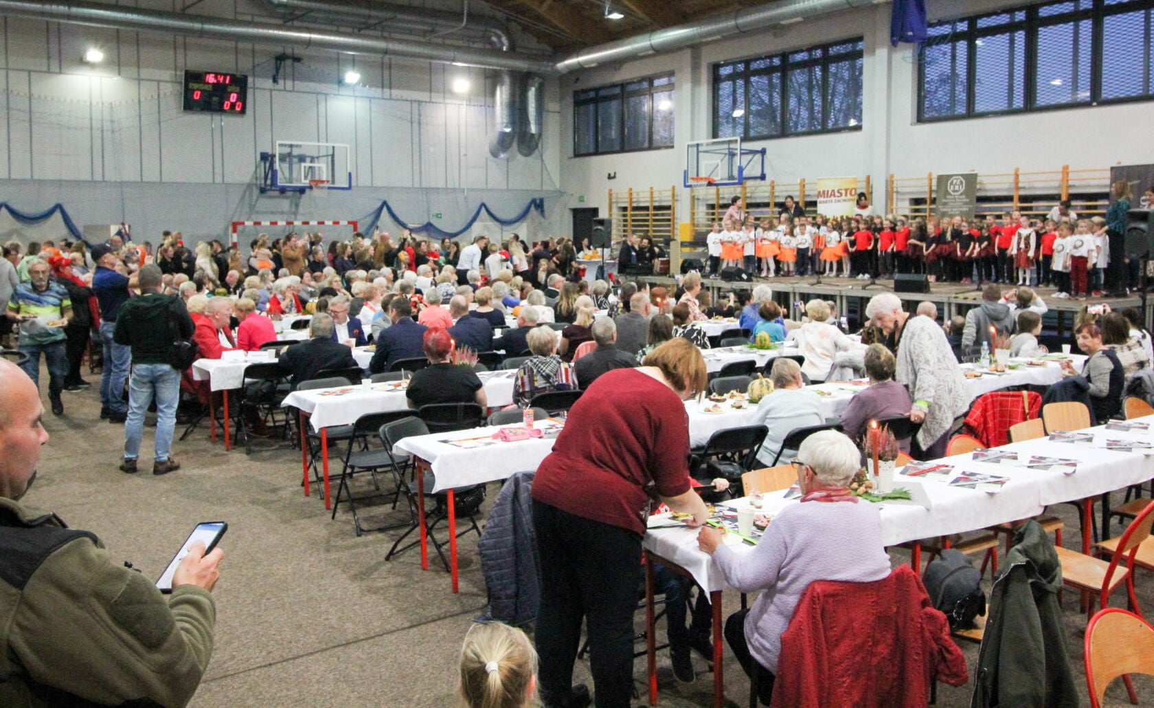Na scenie w dalszym ciągu dla babć i dziadków pokazy tańczących grupy dzieci z darłowskich szkół tańca: Revoltade oraz S-TEN. Muzyczne życzenia dla swoich rówieśników zagrał Jan Schwarzlose. Na zakończenie zaśpiewał darłowski Krzysztof Krawczyk – Marek Wysocki. I się zaczęło… Wszystkie krzesła w mig opustoszały.. Emeryci to wulkan energii. Tańczyli wszyscy ze wszystkimi. Radość, hałas, śmiech – szał.