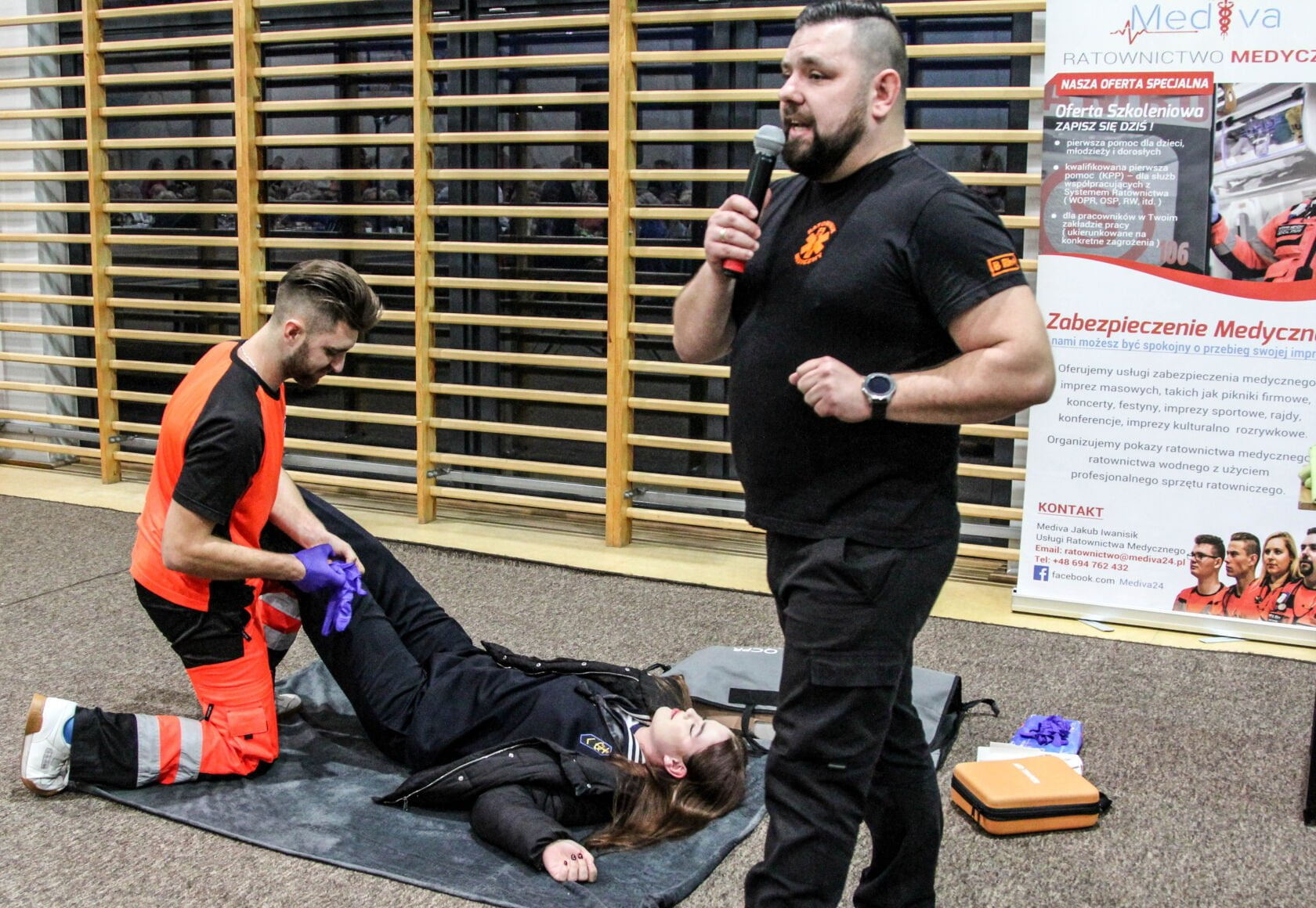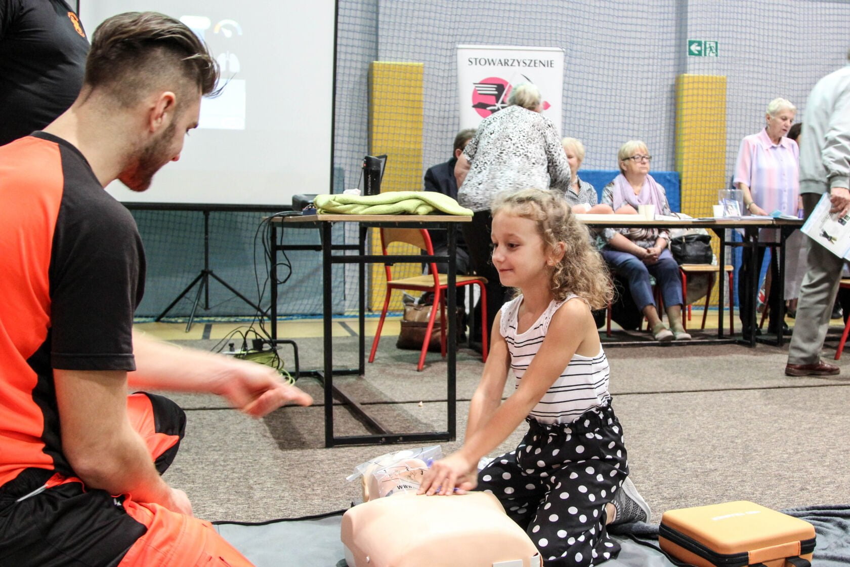 Jak zachować się w sytuacji niespodziewanego zagrożenia życia opowiedział i pokazał ratownik medyczny Jakub Iwanisik (MEDIVA) – takie pokazy są bardzo ważne dla seniorów, którzy dzięki uzyskanej wiedzy często są w stanie pomóc nawet sami sobie.