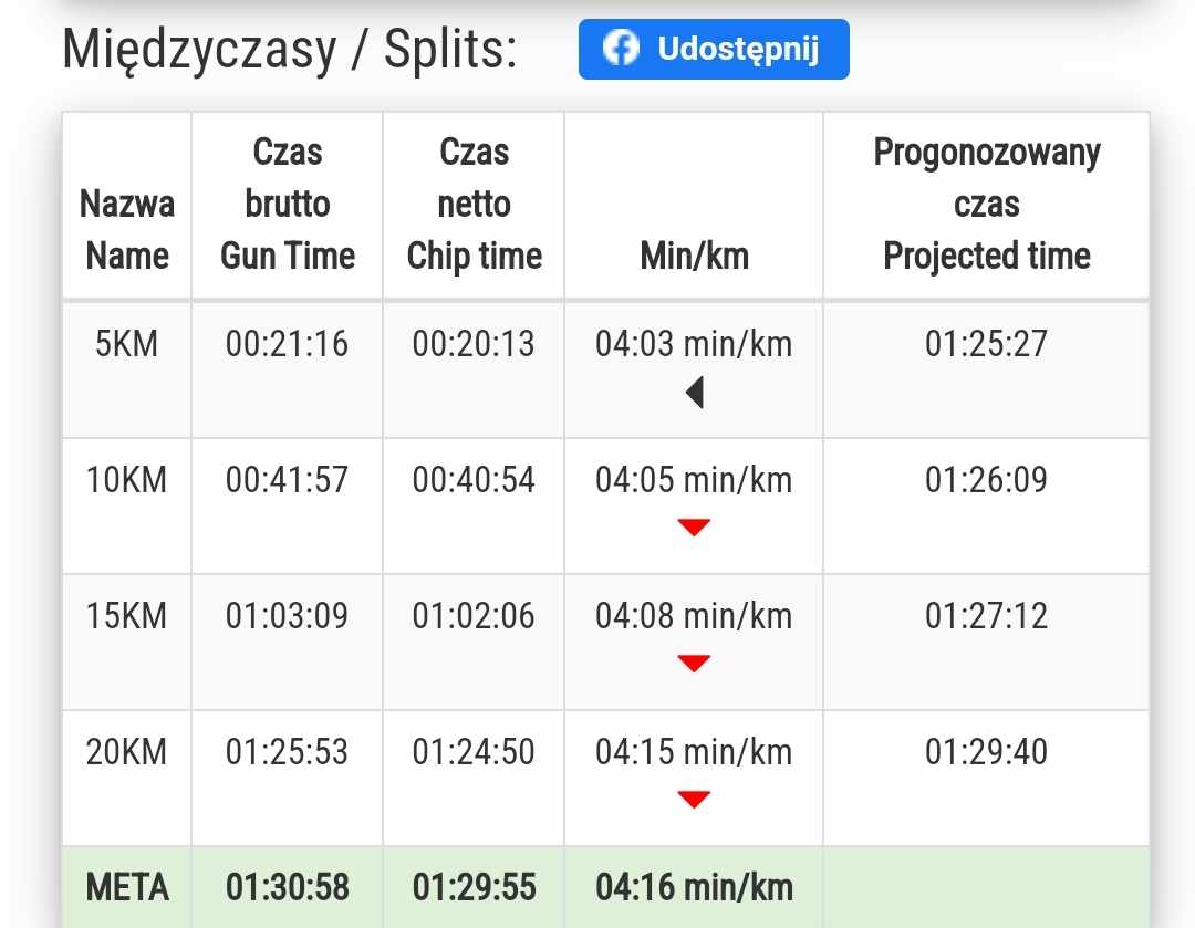 Zadowolony ze swojego startu jest również Marcin, który dobiegając do mety z czasem 01:29:55 ustanowił nowy rekord życiowy