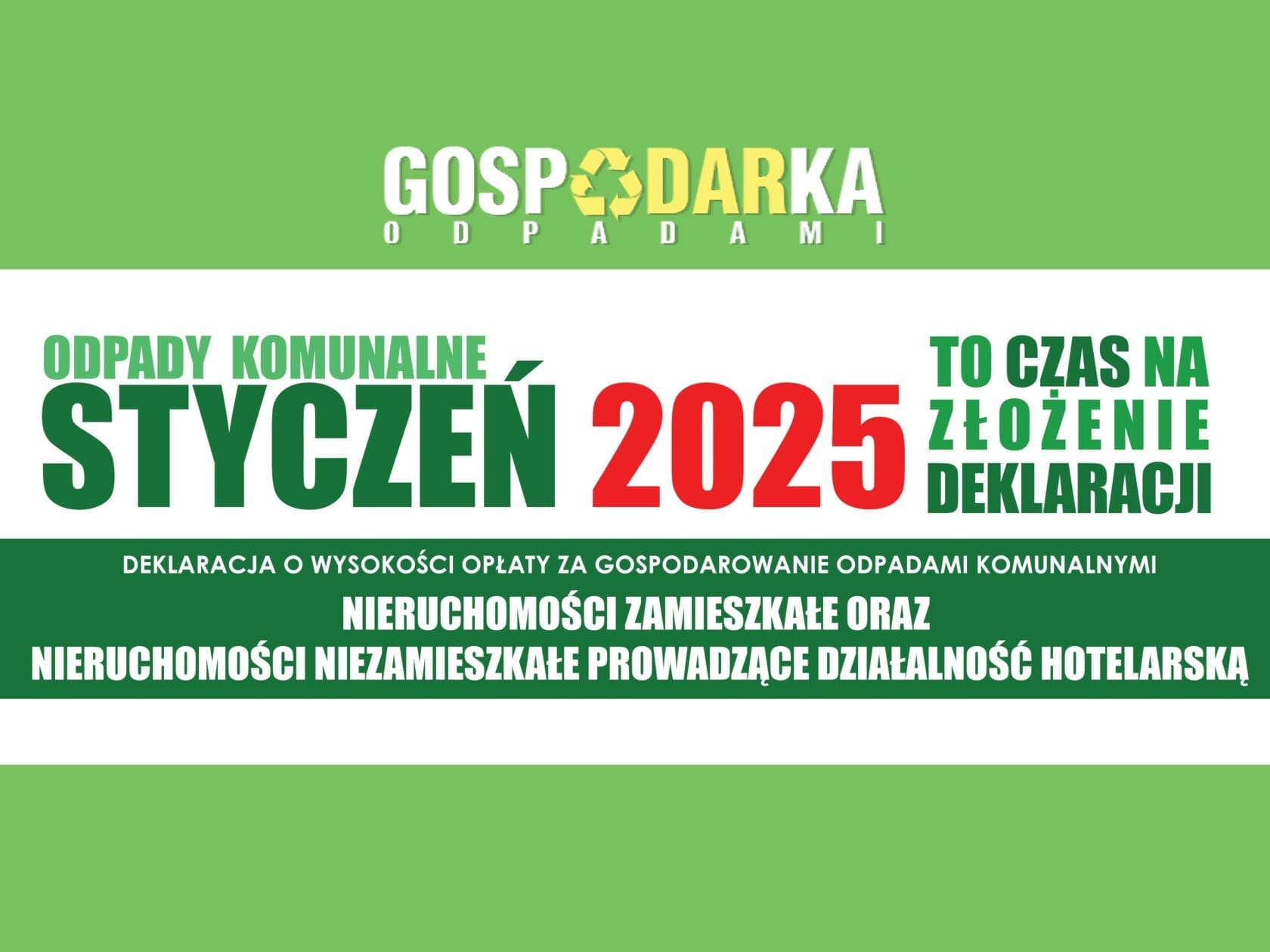 Styczeń 2025 – pamiętaj o deklaracji o wysokości opłaty za gospodarowanie odpadami komunalnymi.