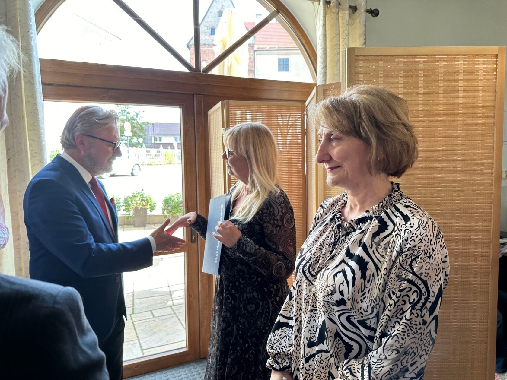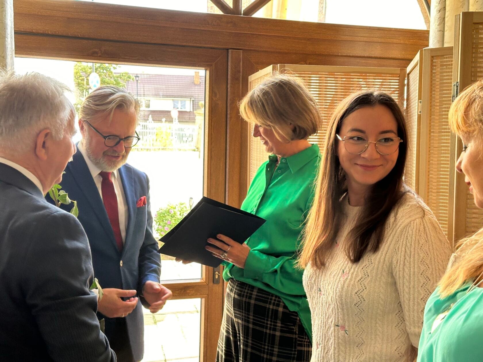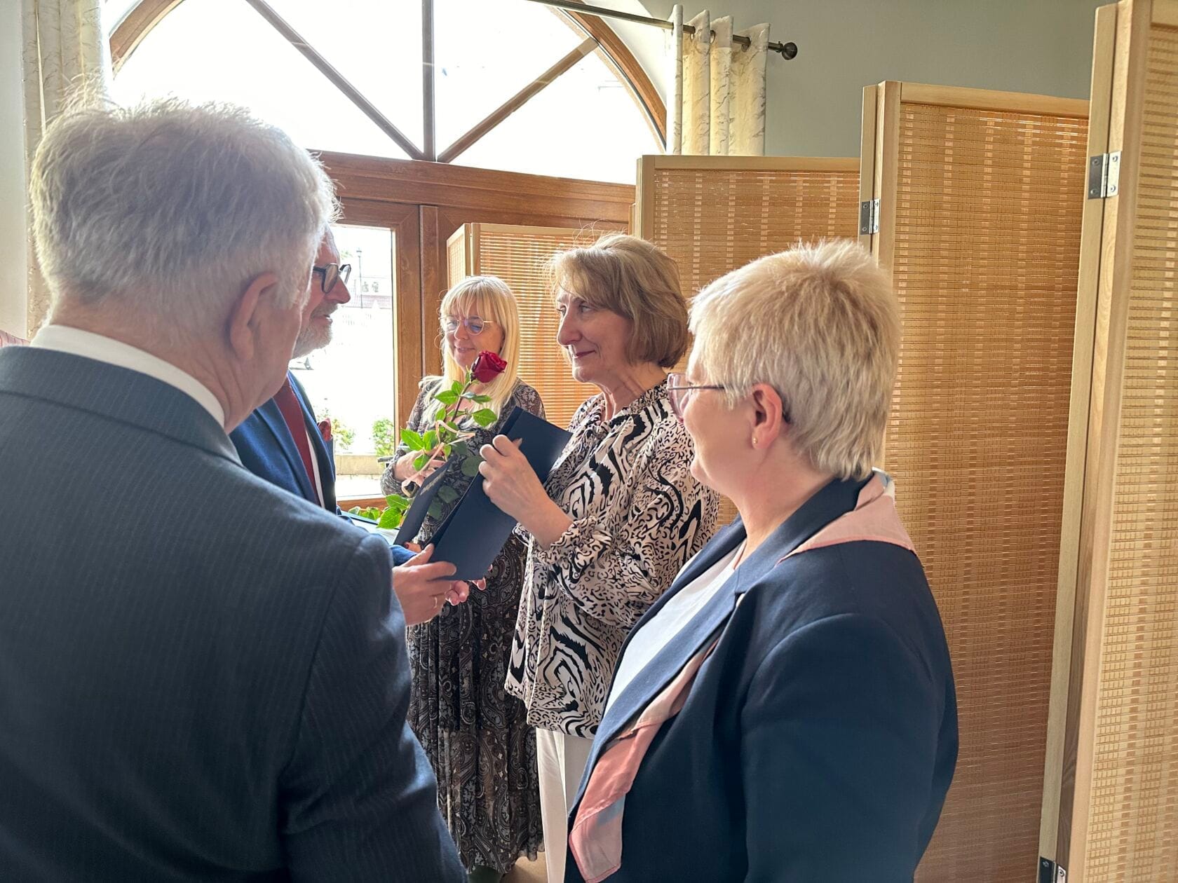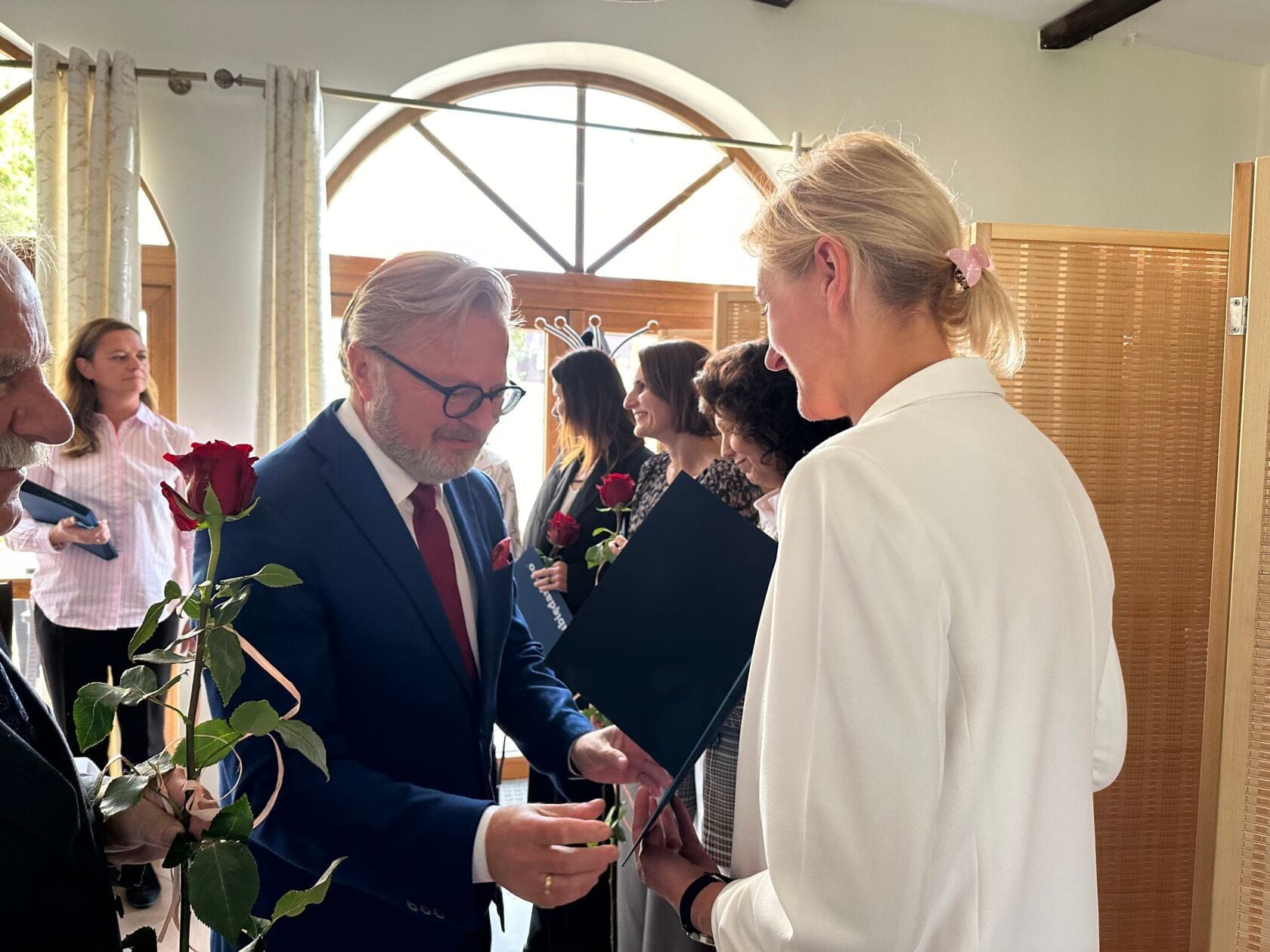 W dalszej części Arkadiusz Klimowicz pogratulował właścicielom placówek niepublicznych i innych instytucji oświatowo- wychowawczych z terenu Miasta Darłowo wszechstronnego wspierania w edukacji i wychowania. Uczestniczący w spotkaniu otrzymali Listy Gratulacyjne: przedstawiciel Przedszkola Niepublicznego „PRZEDSZKOLE PRZY SZKOLE” – Przemysław Szewczyk, właścicielka Przedszkola Niepublicznego „AKADEMIA PRZEDSZKOLAKA” – Iwona Jaźwińska, właścicielka Przedszkola Niepublicznego „PROMYCZEK” – Renata Strzałkowska, przedstawiciel Terapeutycznego Punktu Przedszkolnego „SŁONECZKO”- Marcjanna Malczewska , Wicedyrektor Zespołu Szkół Morskich – Bogdan Balcerzak, przedstawiciel Poradni Psychologiczno-Pedagogicznej – Katarzyna Machyna, Prezes Stowarzyszenia Osób Niepełnosprawnych ich Rodzin i Przyjaciół – Marzena Górzyńska i Prezes Zarządu Oddziału Związku Nauczycielstwa Polskiego – Radosław Kmiecik.