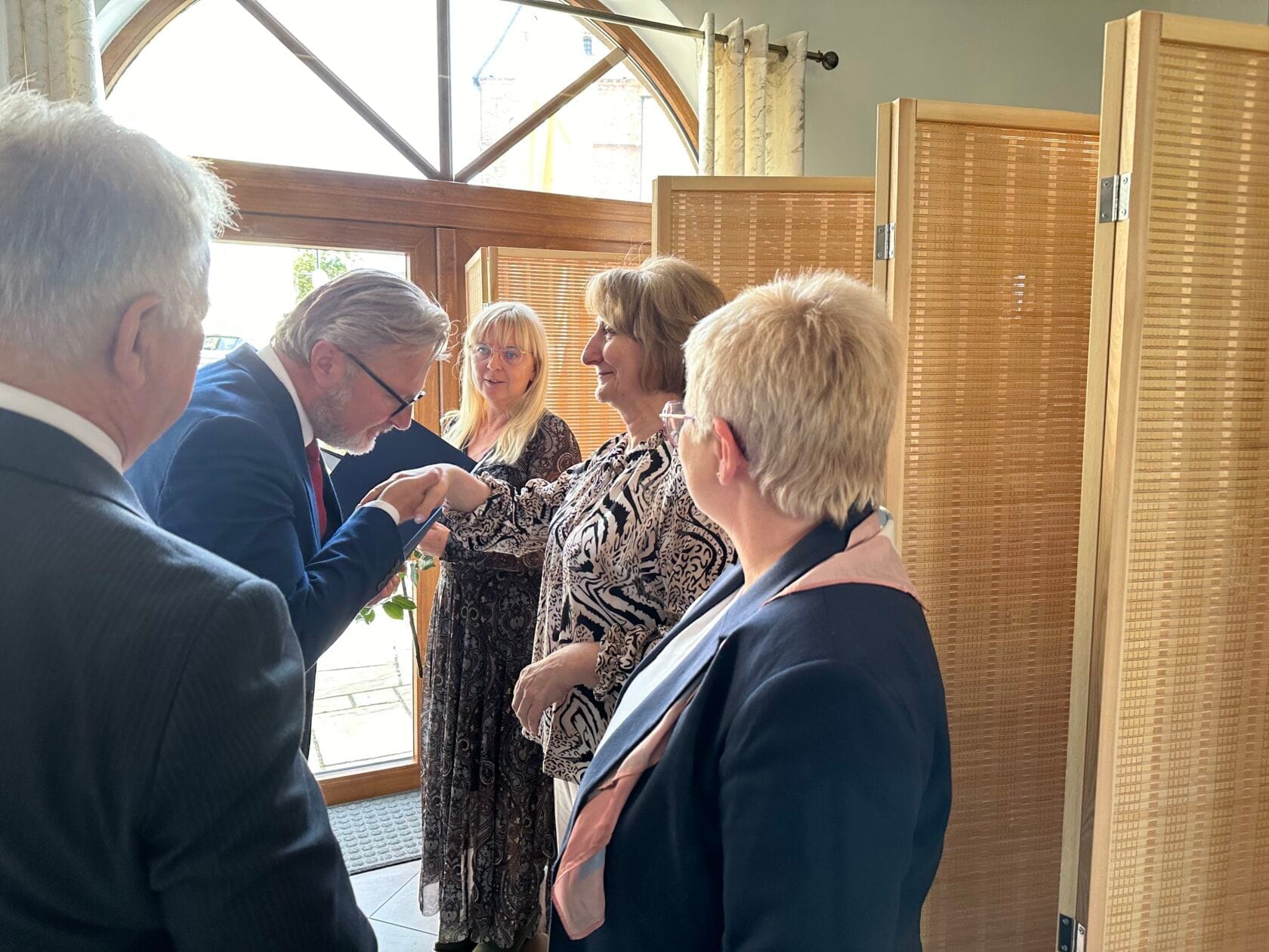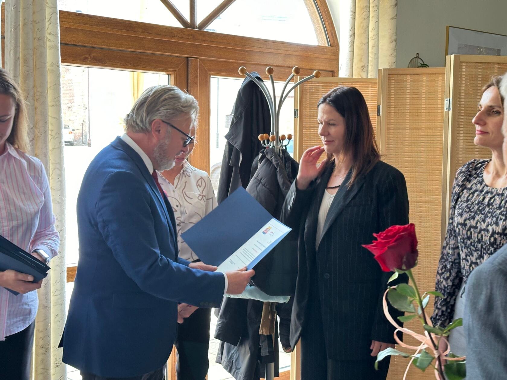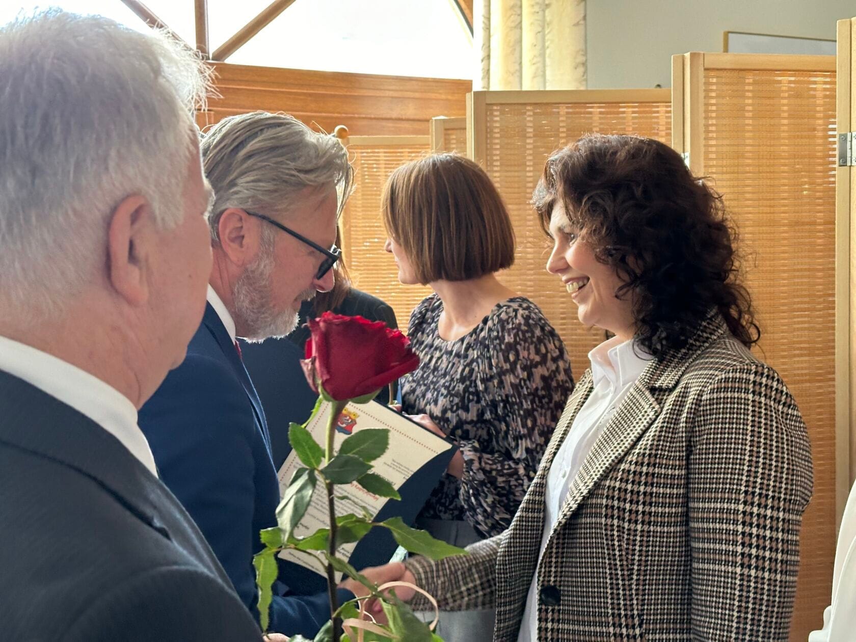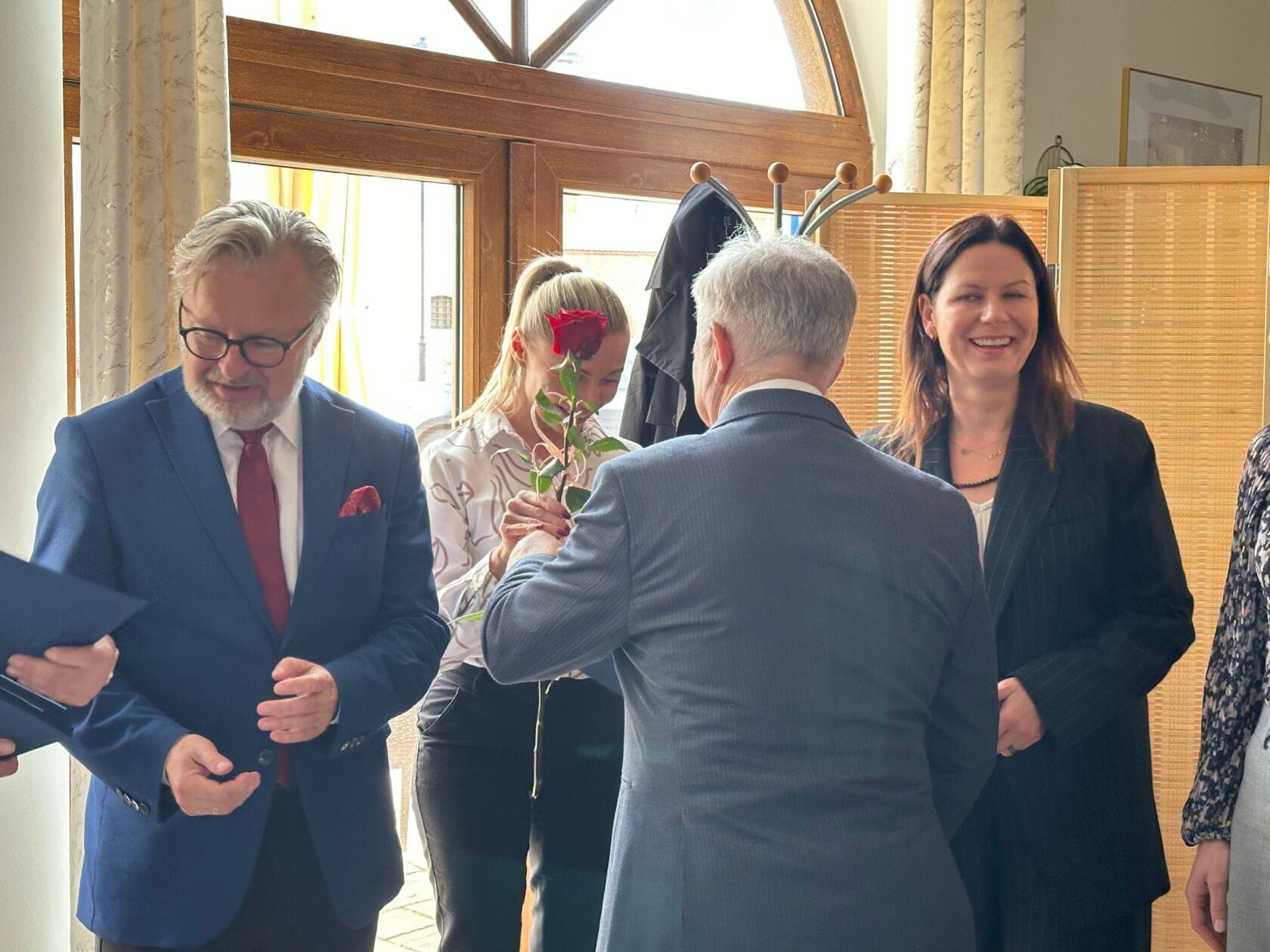 W dalszej części Arkadiusz Klimowicz pogratulował właścicielom placówek niepublicznych i innych instytucji oświatowo- wychowawczych z terenu Miasta Darłowo wszechstronnego wspierania w edukacji i wychowania. Uczestniczący w spotkaniu otrzymali Listy Gratulacyjne: przedstawiciel Przedszkola Niepublicznego „PRZEDSZKOLE PRZY SZKOLE” – Przemysław Szewczyk, właścicielka Przedszkola Niepublicznego „AKADEMIA PRZEDSZKOLAKA” – Iwona Jaźwińska, właścicielka Przedszkola Niepublicznego „PROMYCZEK” – Renata Strzałkowska, przedstawiciel Terapeutycznego Punktu Przedszkolnego „SŁONECZKO”- Marcjanna Malczewska , Wicedyrektor Zespołu Szkół Morskich – Bogdan Balcerzak, przedstawiciel Poradni Psychologiczno-Pedagogicznej – Katarzyna Machyna, Prezes Stowarzyszenia Osób Niepełnosprawnych ich Rodzin i Przyjaciół – Marzena Górzyńska i Prezes Zarządu Oddziału Związku Nauczycielstwa Polskiego – Radosław Kmiecik.