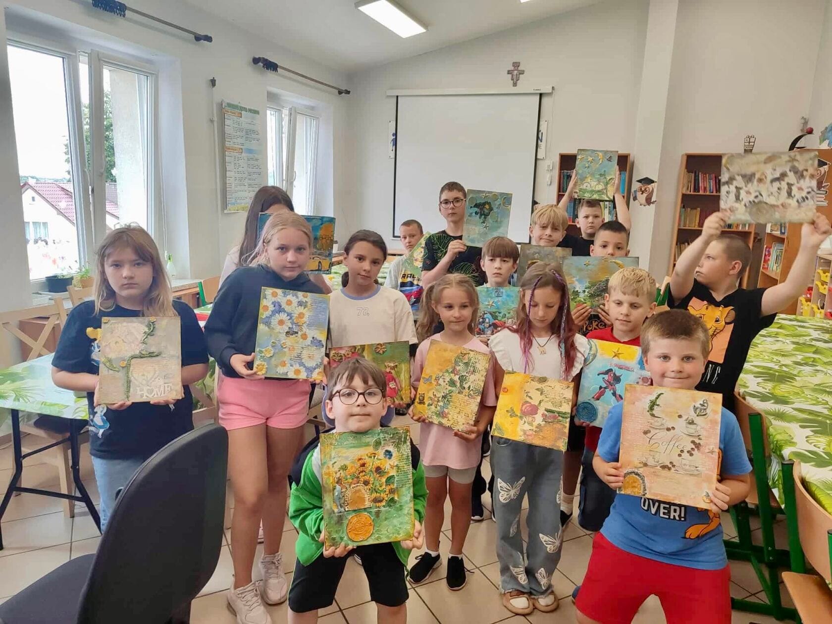 W dniach od 14 do 25 lipca 2025 roku odbył się drugi turnus półkolonii miejskich, w którym uczestniczyła grupa 16 dzieci w wieku 7–12 lat. Przez dziesięć intensywnych dni świetlica tętniła życiem, śmiechem i dziecięcą energią. Każdy dzień niósł ze sobą nowe przygody i kreatywne wyzwania. Dzieci aktywnie spędzały czas na świeżym powietrzu – odbywały się różnorodne zabawy ruchowe, sportowe potyczki oraz mini zawody. Uczestnicy rozwijali swoje zdolności artystyczne podczas twórczych zajęć plastycznych, poznając różne techniki, w tym mix media i decoupage. Dzieci stworzyły kreatywne obrazy.