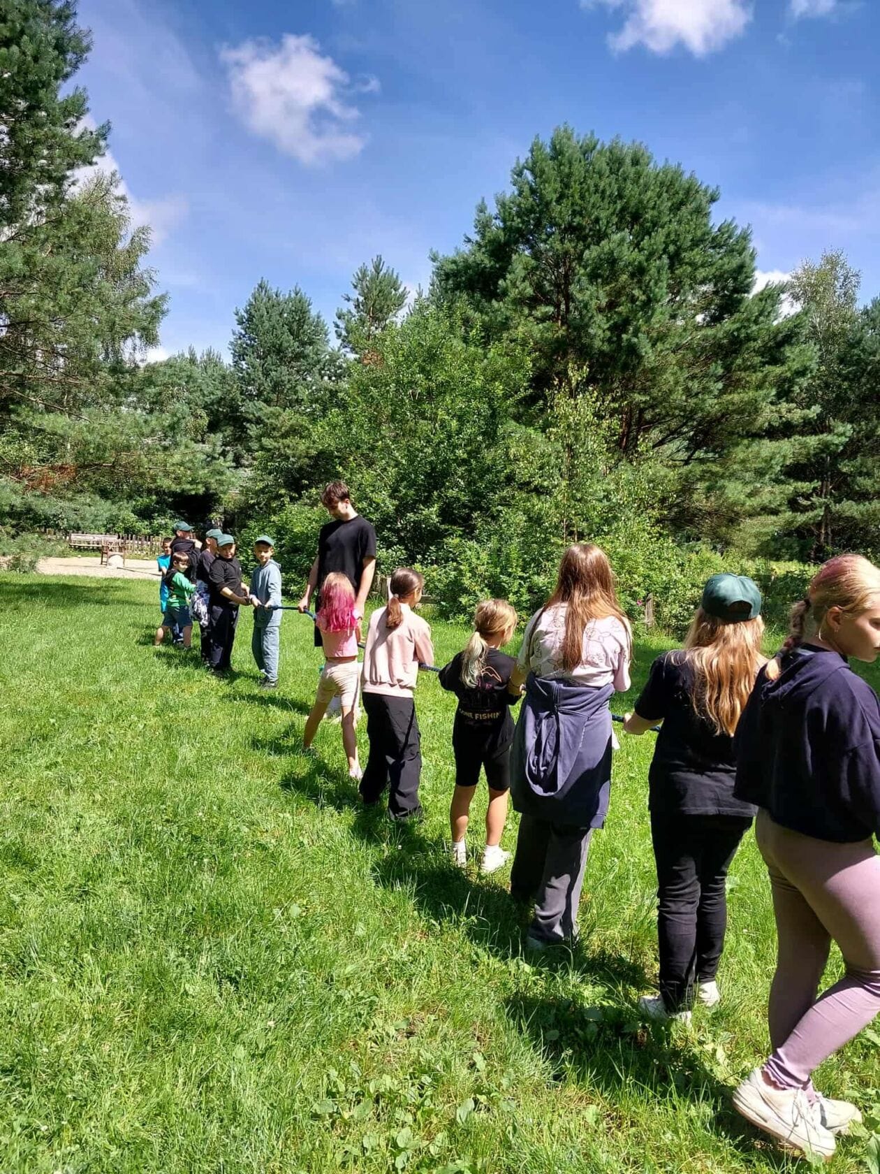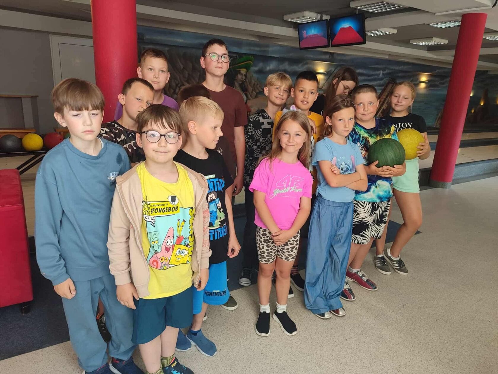 Każdy dzień był też okazją do wspólnej integracji – dzieci brały udział w rozmaitych konkursach, takich jak karaoke, zabawy taneczne czy tworzenie autorskiego komiksu o bezpiecznych wakacjach, który powstawał przez cały turnus. Program obejmował również wycieczki – odwiedziliśmy gospodarstwo z alpakami na Sosnowych Wzgórzach, gdzie dzieci miały okazję do bezpośredniego kontaktu ze zwierzętami i chwili relaksu wśród natury. Kolejną atrakcją był wspólny wyjazd na kręgielnię, a także spacery po mieście zakończone lodową niespodzianką.