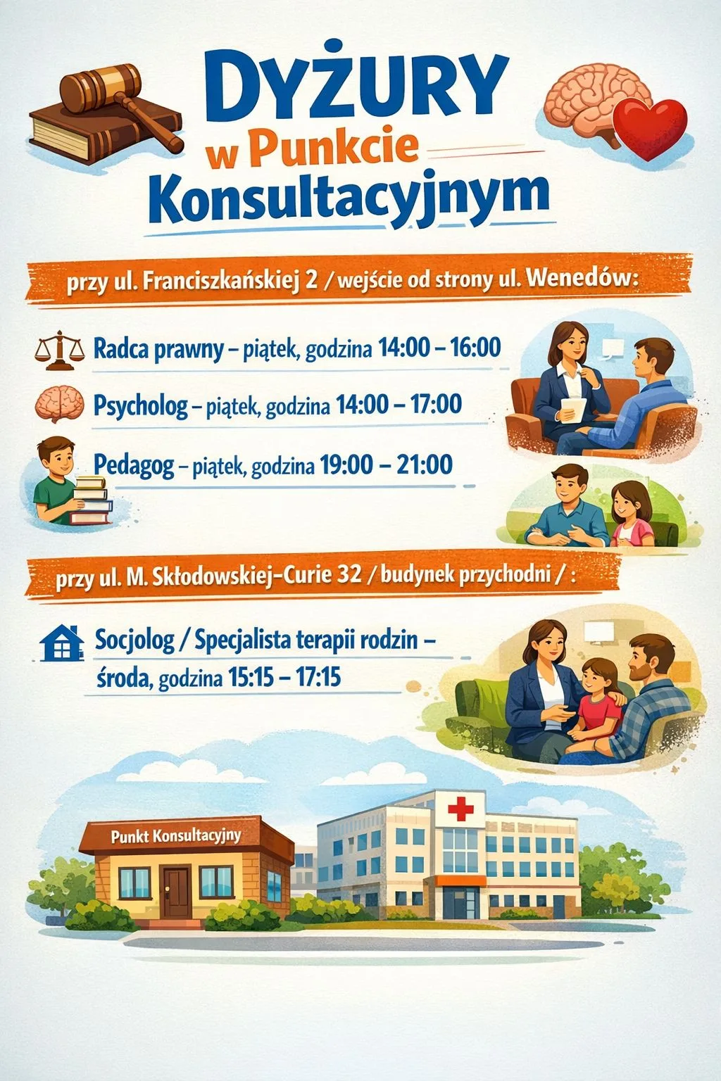 - socjolog/specjalista systemowej terapii rodzin – środa, godzina 15:15 – 17:15