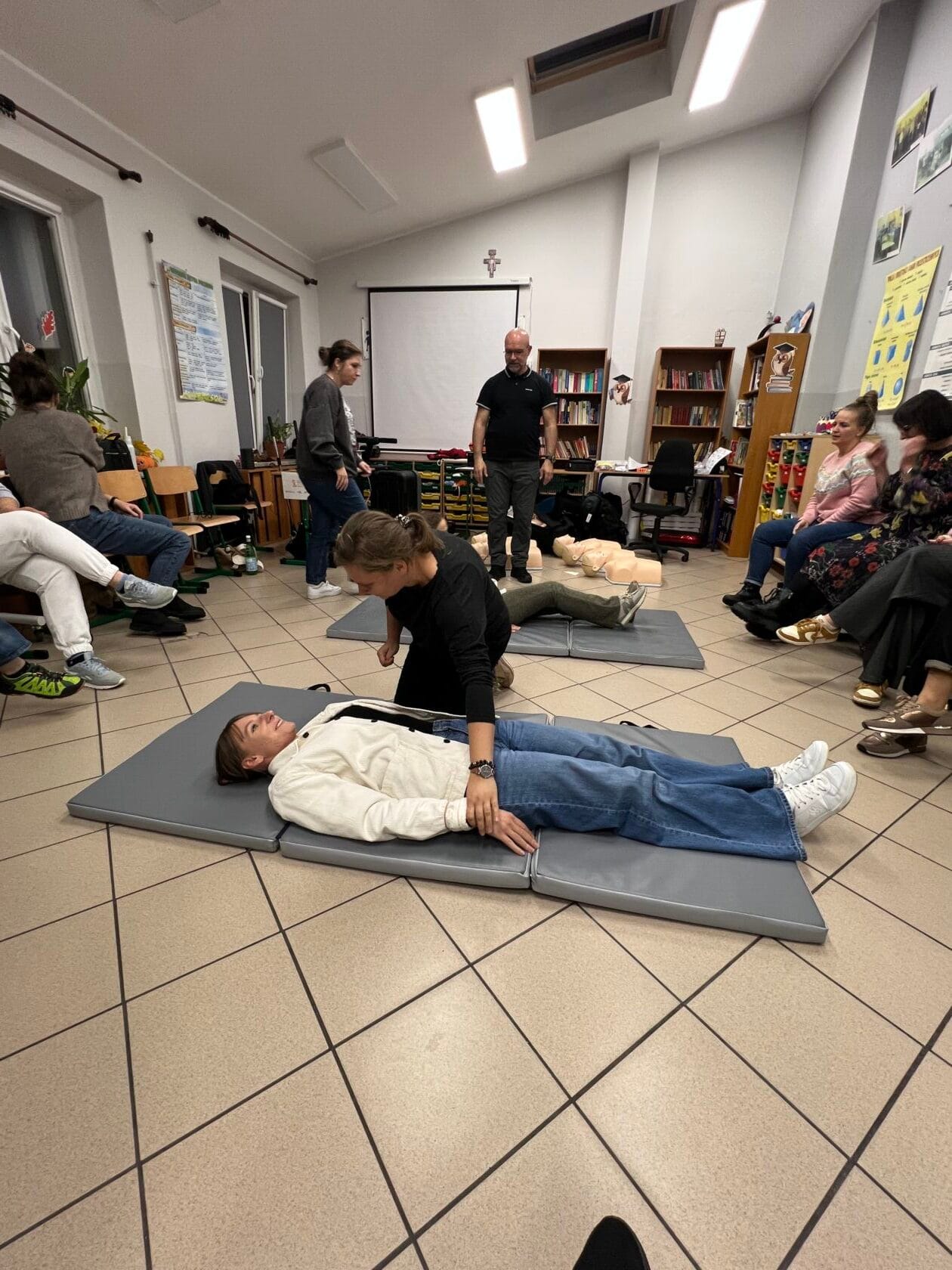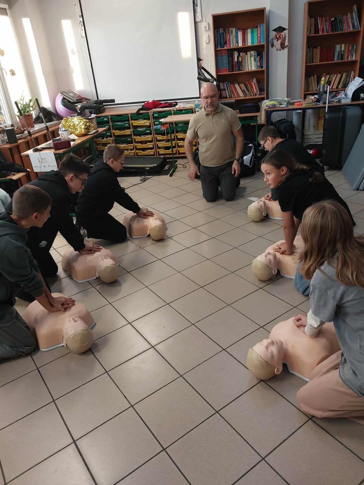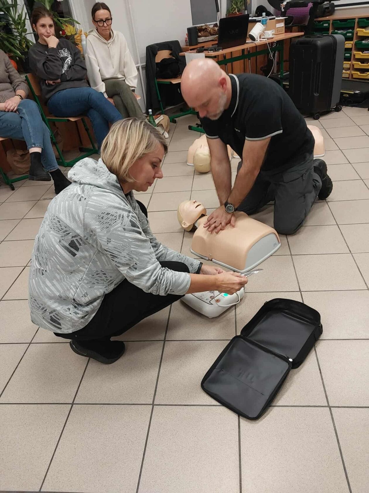 Szkolenia były bardzo owocne. Wszyscy nauczyli się m.in. obsługi defibrylatora AED (w świetlicy pozostaje defibrylator ćwiczebny do cyklicznych warsztatów), postępowania przy zadławieniach z użyciem kamizelki treningowej oraz resuscytacji krążeniowo-oddechowej (RKO) na fantomach.