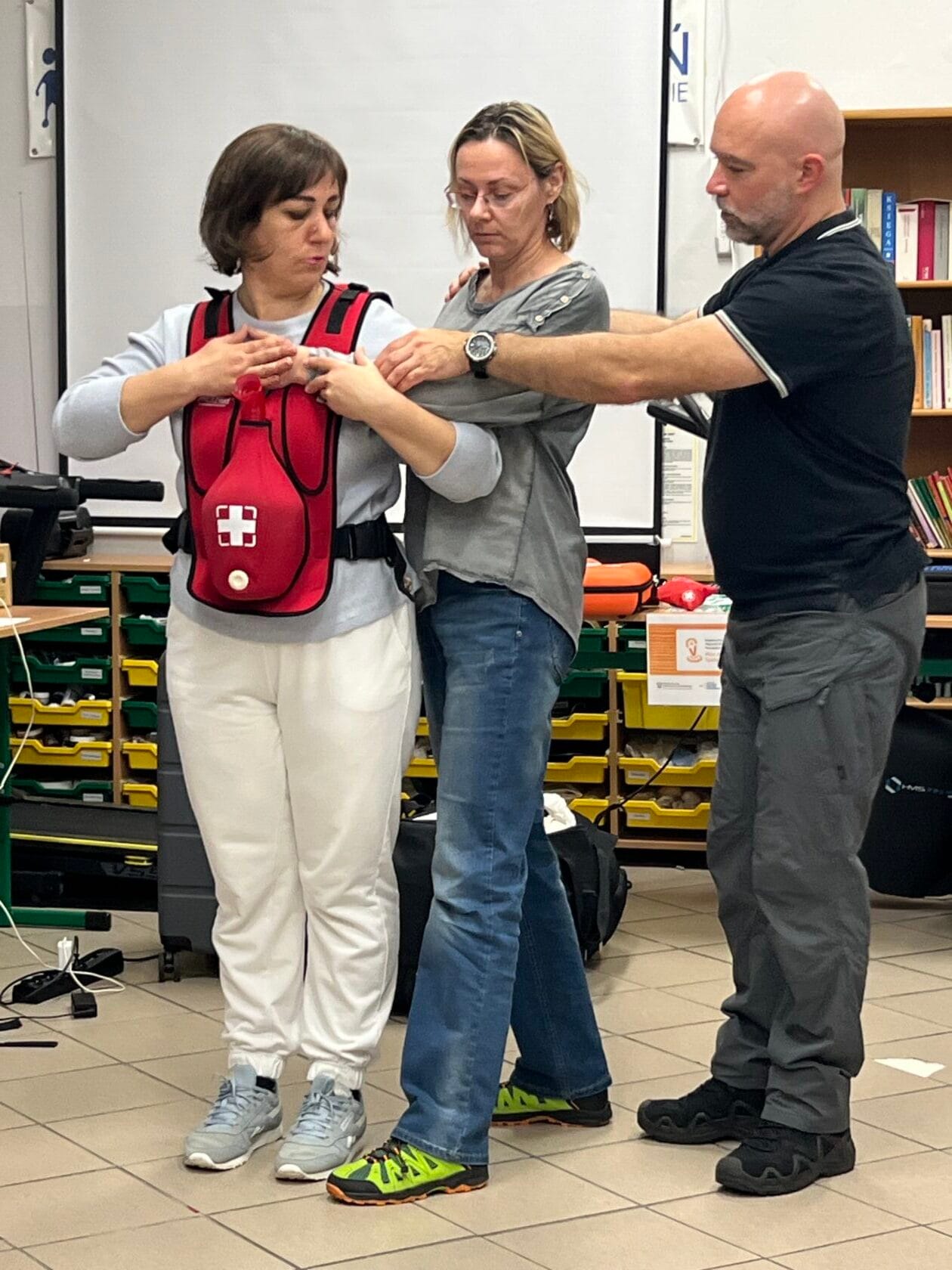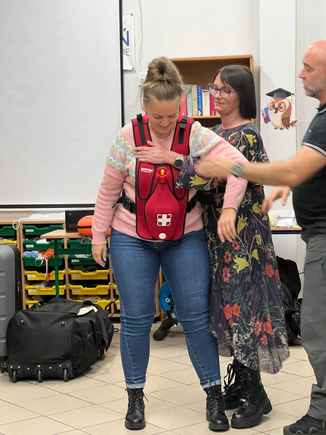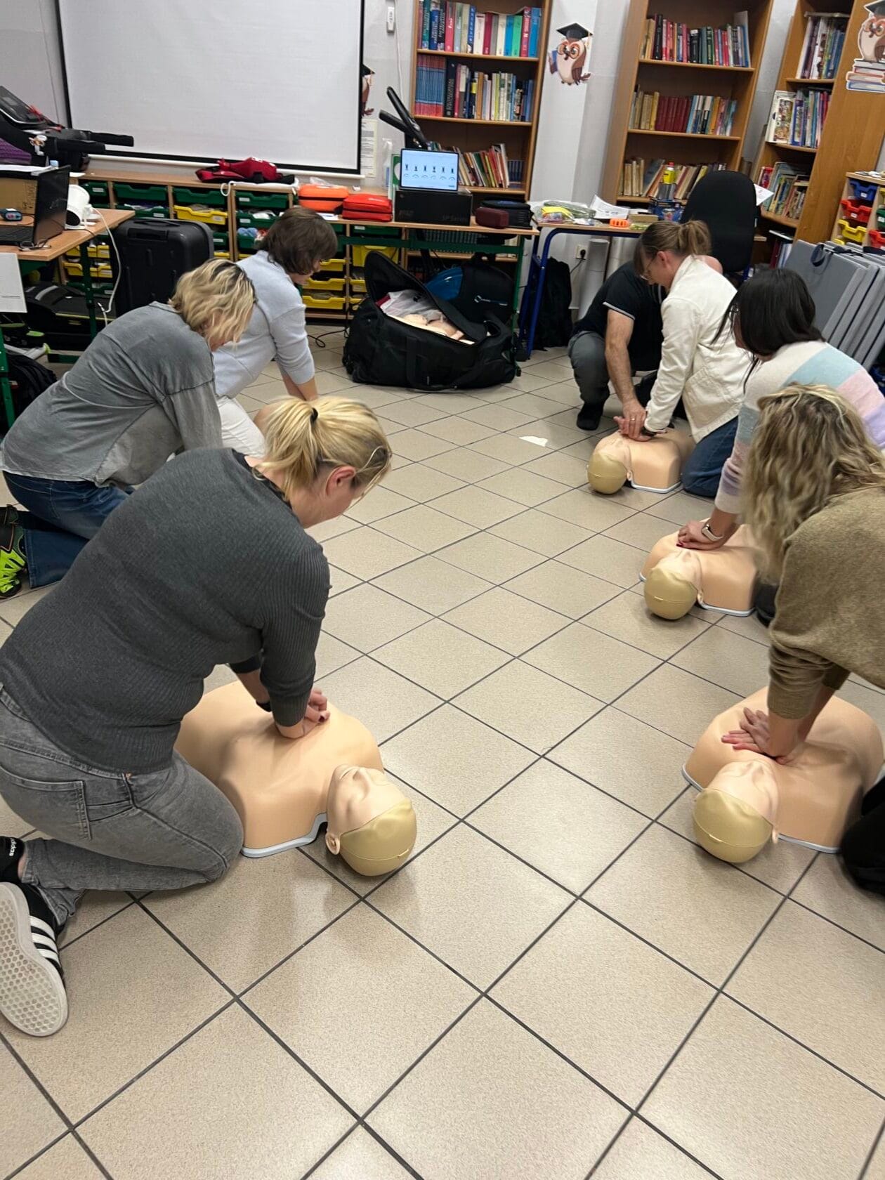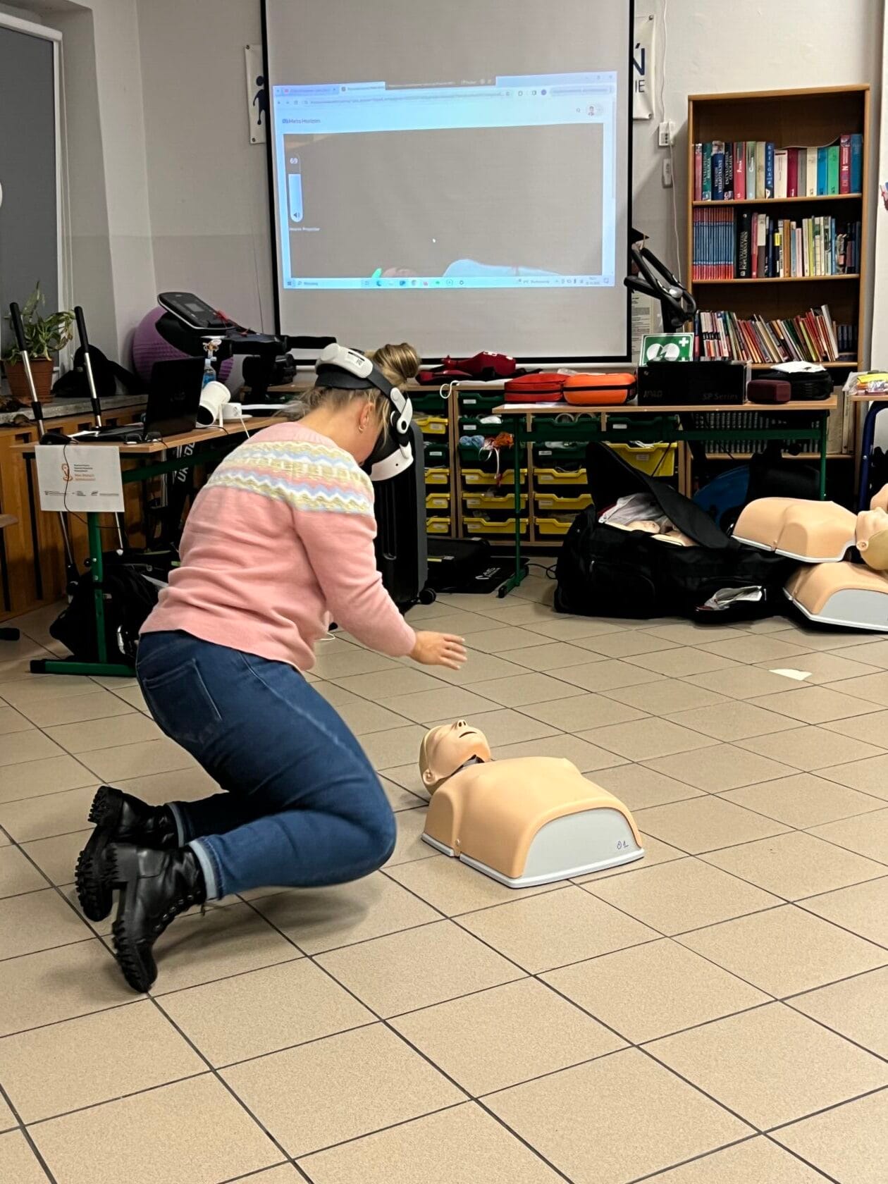 Szkolenia były bardzo owocne. Wszyscy nauczyli się m.in. obsługi defibrylatora AED (w świetlicy pozostaje defibrylator ćwiczebny do cyklicznych warsztatów), postępowania przy zadławieniach z użyciem kamizelki treningowej oraz resuscytacji krążeniowo-oddechowej (RKO) na fantomach.