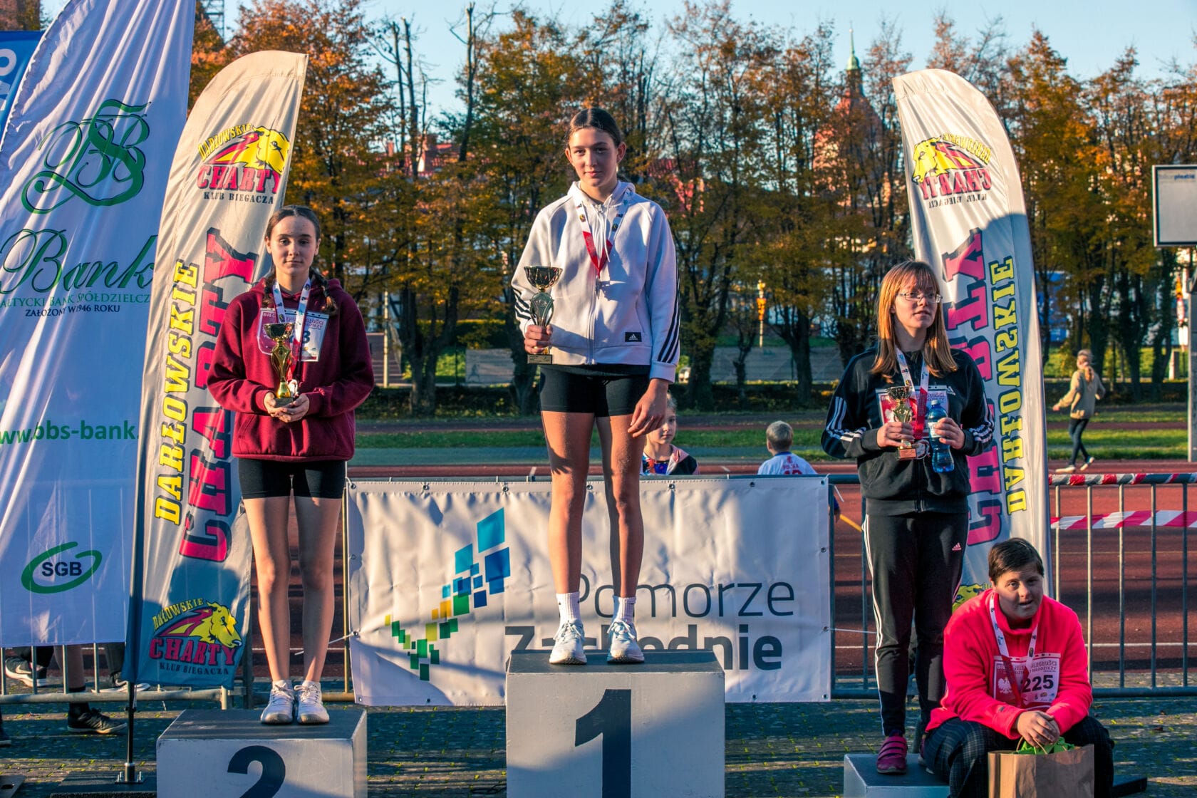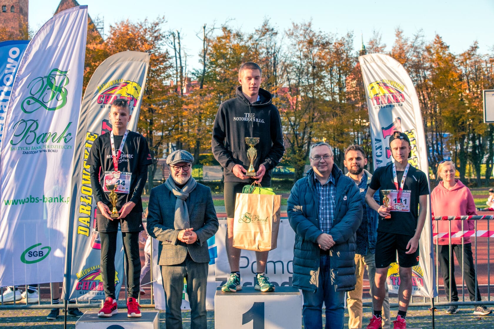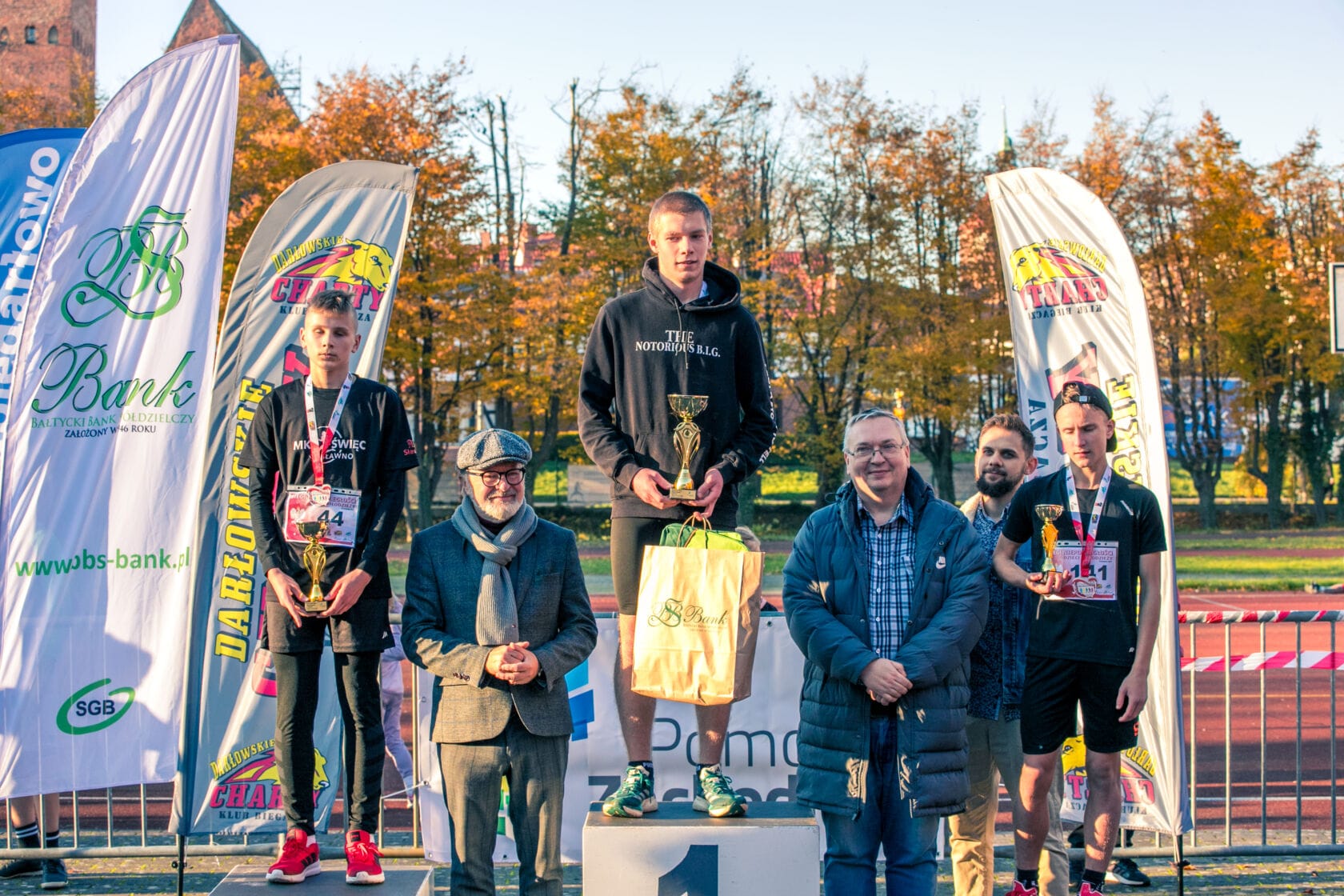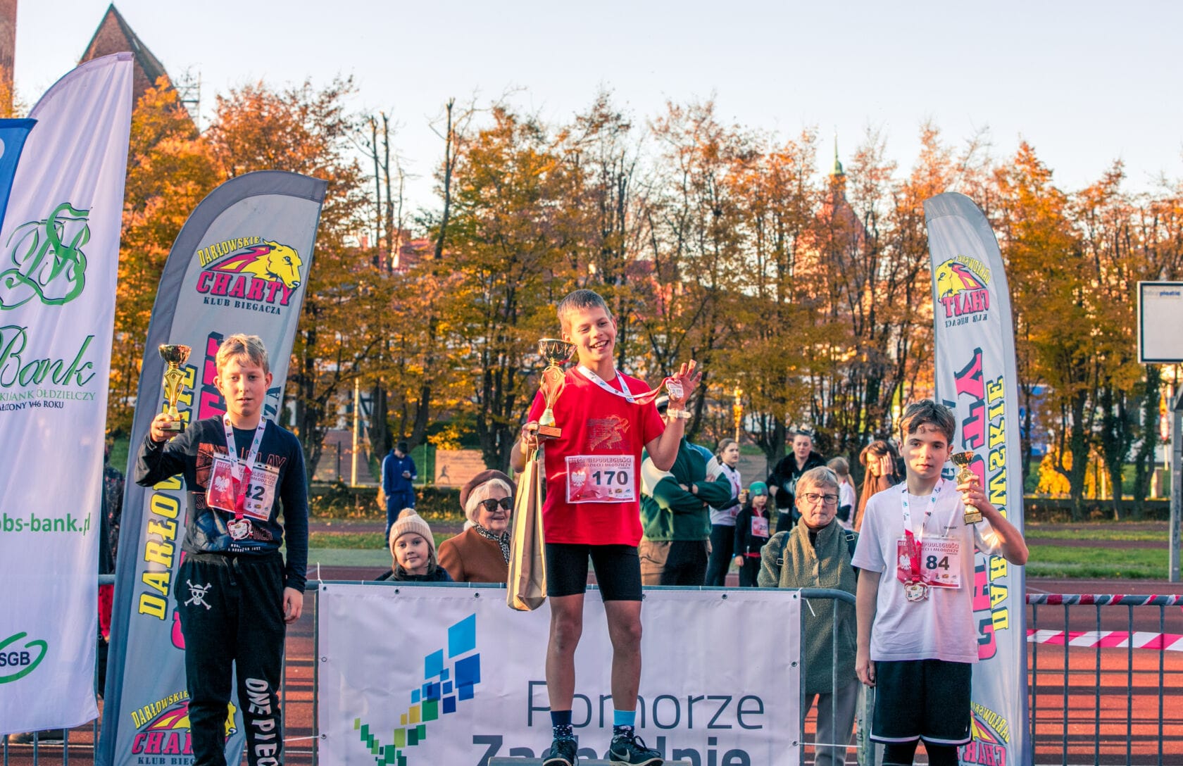 Klub Biegacza Darłowskie Charty dziękuję: Zespołowi Szkół Morskich w Darłowie – za udostępnienie obiektu sportowego, Urzędowi Miejskiemu w Darłowie – za wsparcie organizacyjne, wolontariuszom, rodzicom i wszystkim kibicom za zaangażowanie i doping.