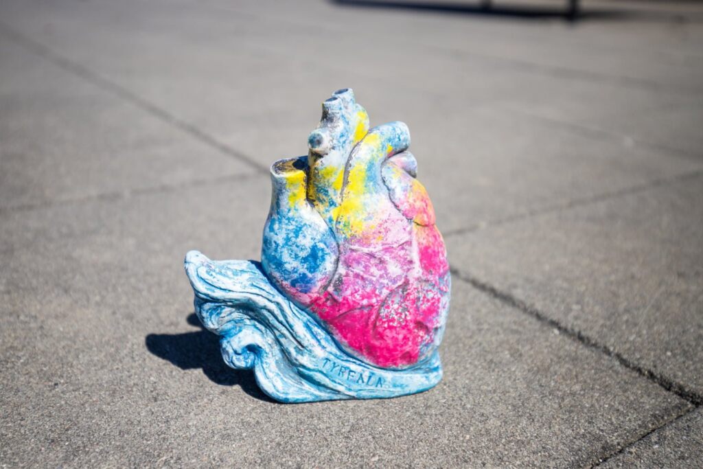 Kolorowa rzeźba serca na betonie