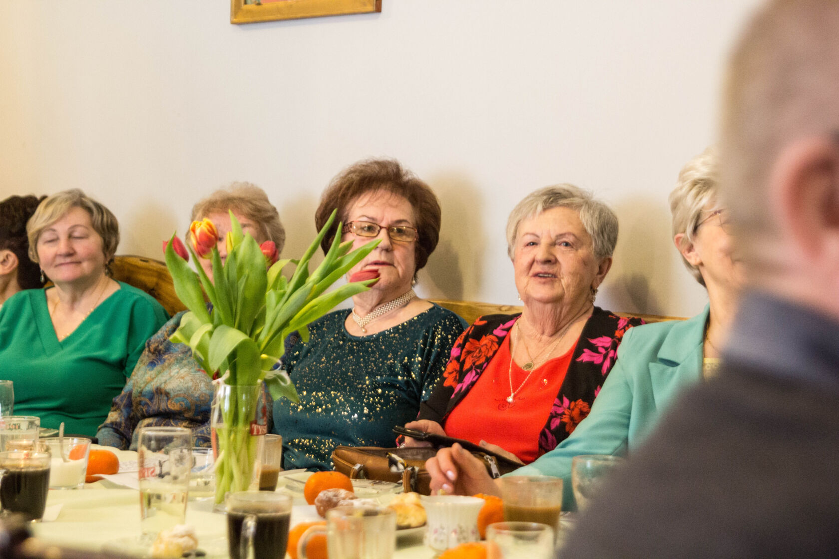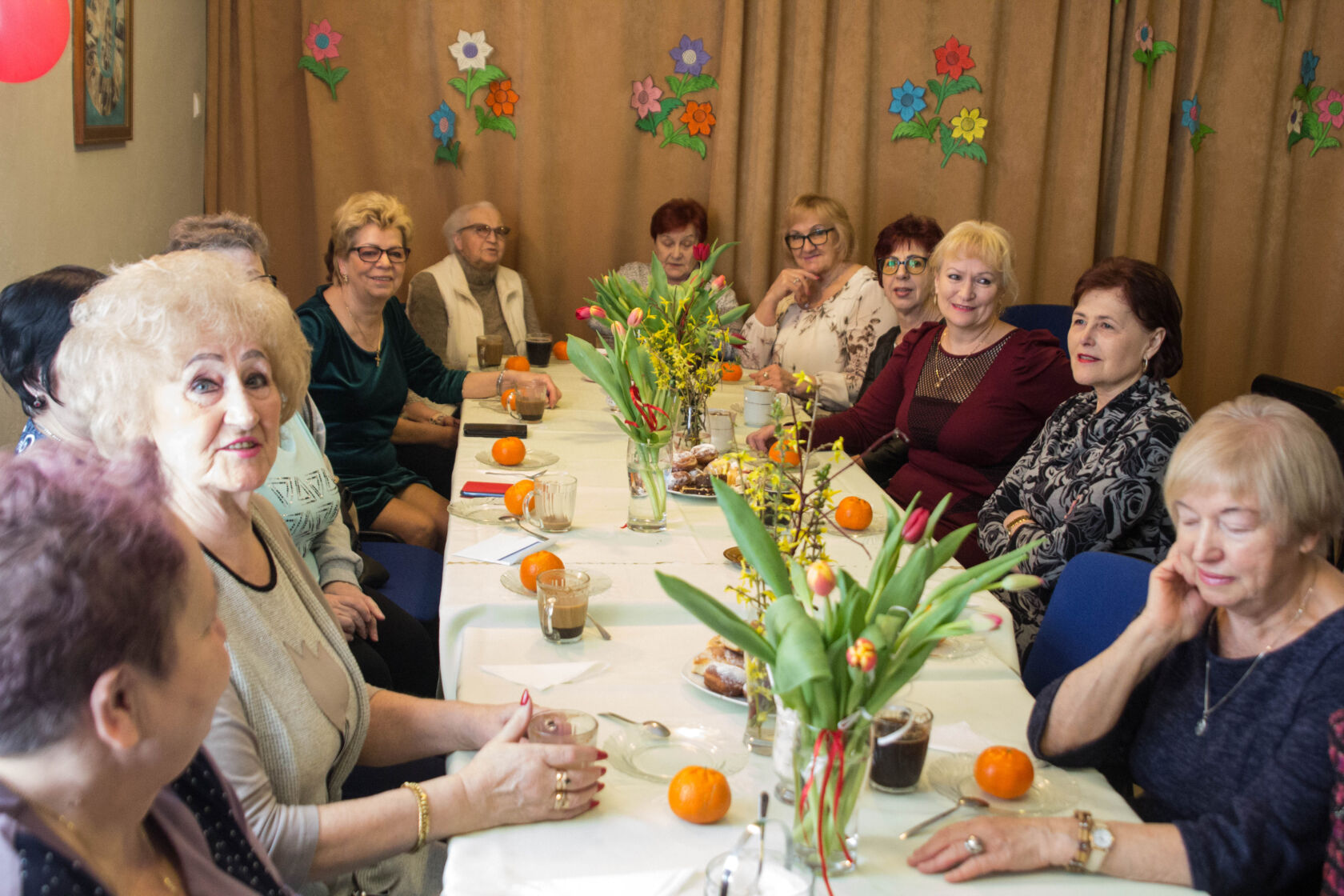 W czasie spotkania, kobiety miały okazję do rozmów i wymiany doświadczeń oraz zdobycia nowych przyjaciół. Wszystkie uczestniczki wydarzenia otrzymały również upominki, które przyniosły uśmiech na ich twarzach. Dodatkowo wszyscy obecni mężczyźni, przy akompaniamencie akordeonu, odśpiewali kobietom symboliczne „Sto lat!”, a także umilali czas zabawnymi kobiecymi anegdotami.
