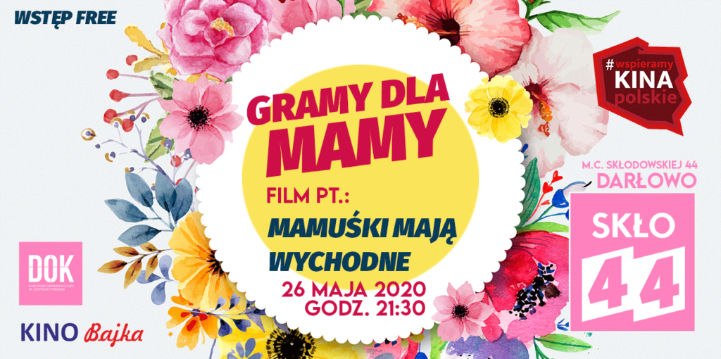 Jutro, 26 maja 2020 Gramy dla Mamy z okazji Dnia Matki – film pt.: „Mamuśki mają wychodne”. Zaczynamy o godz. 21:30 – w naszym Skło44 – ogrodzie (ul. M.C. Skłodowskiej 44). Wstęp wolny. Przypominamy, że gramy z zachowaniem dystansu społecznego.