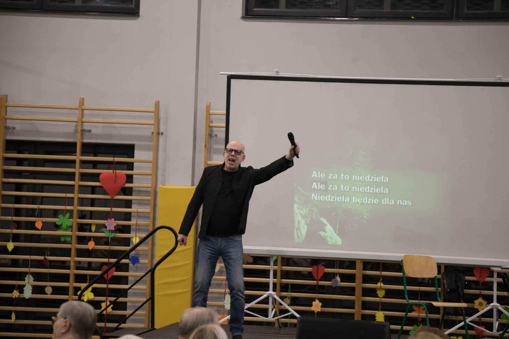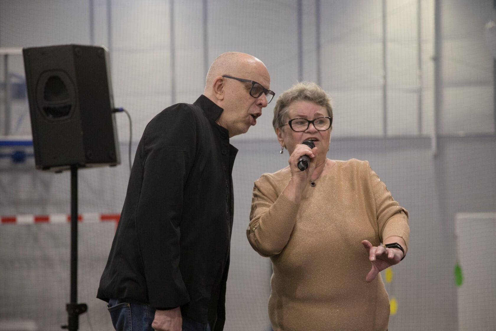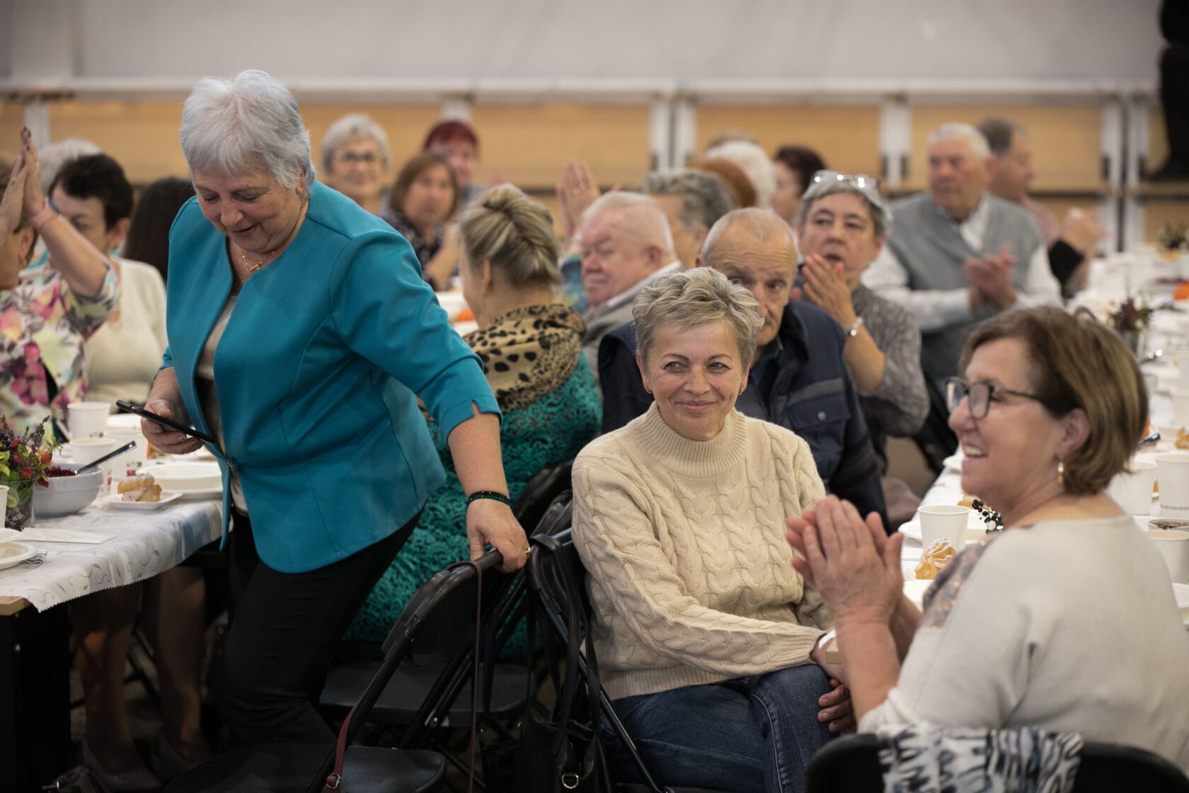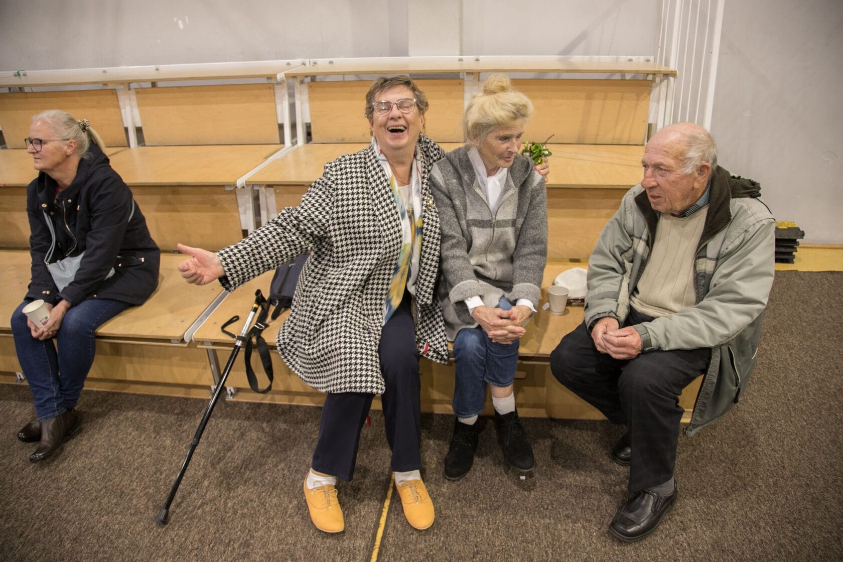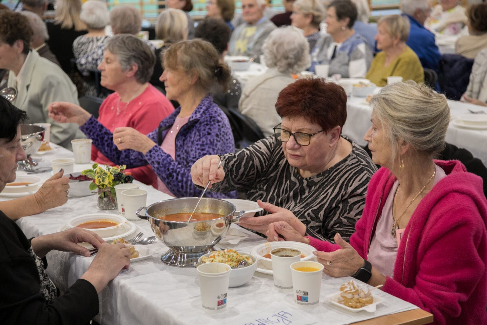 Spotkanie społeczności starszych osób w sali gimnastycznej