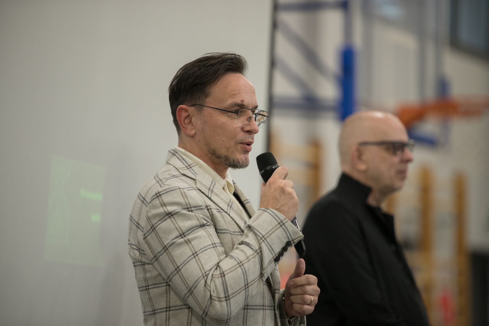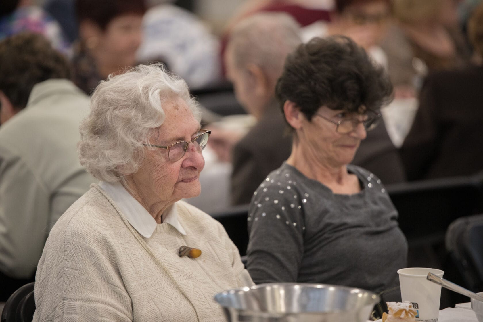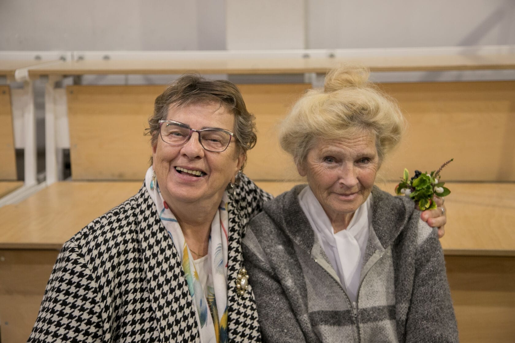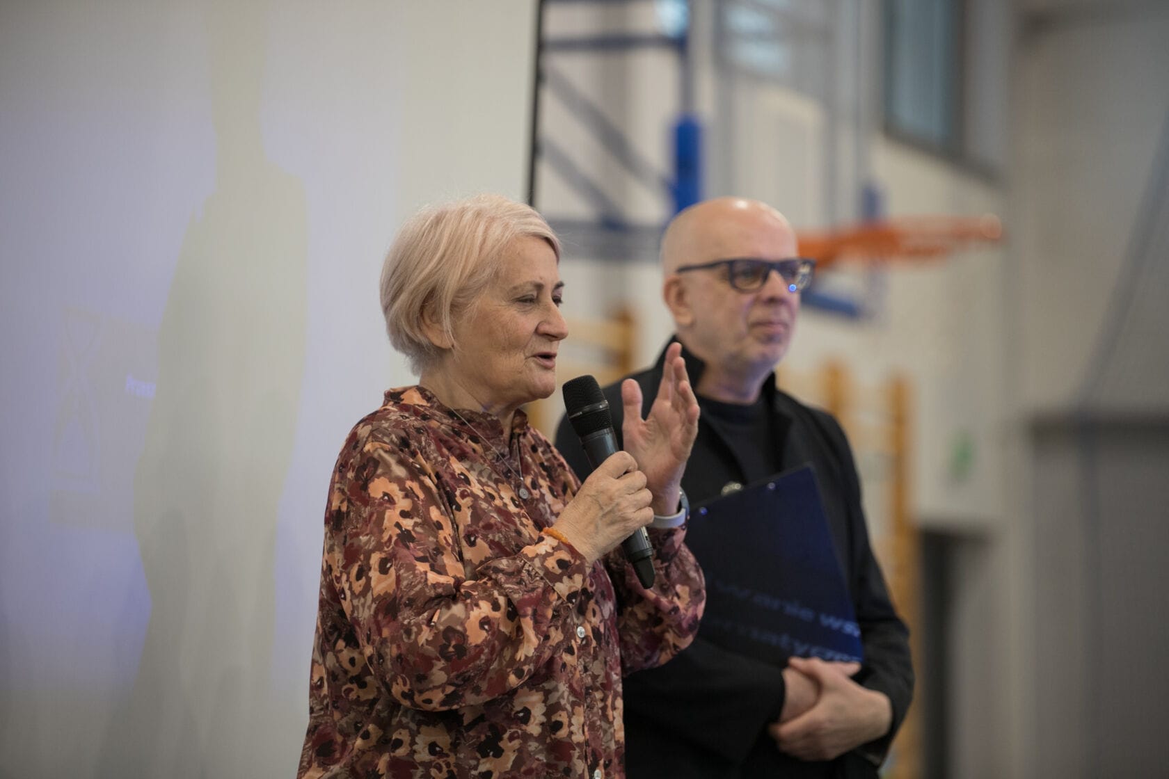 Spotkanie społeczności starszych osób w sali gimnastycznej