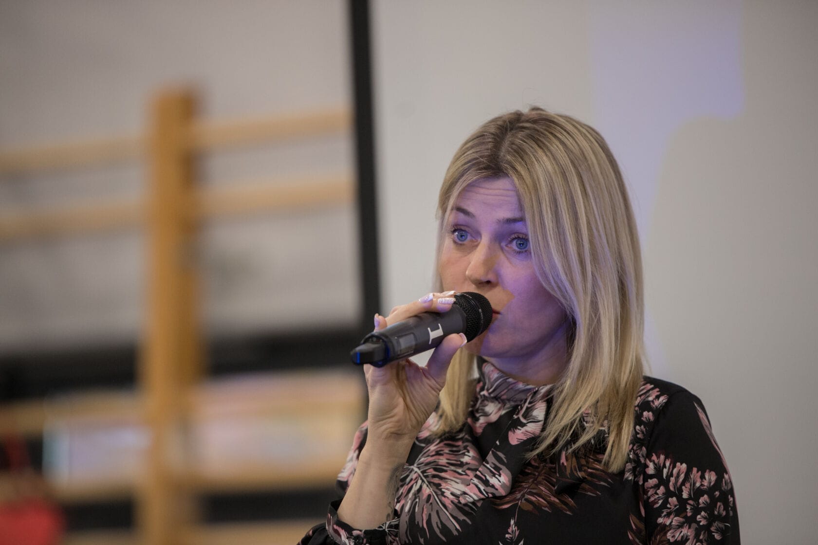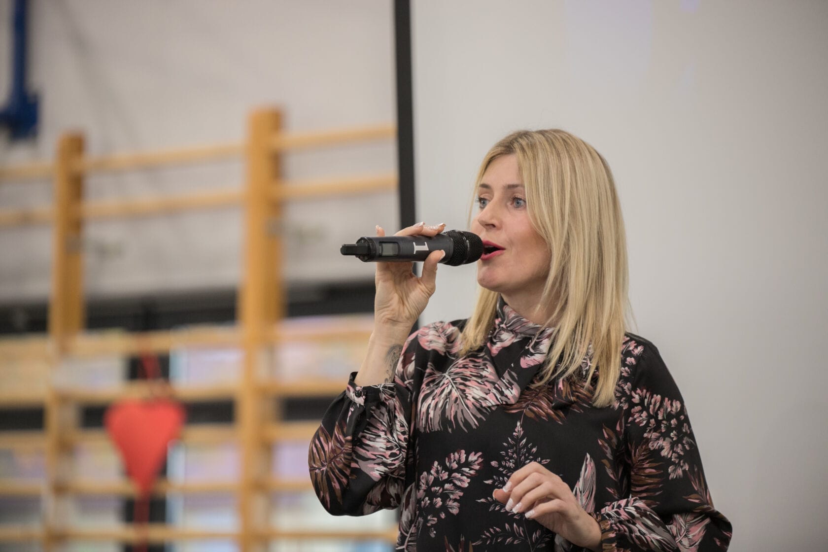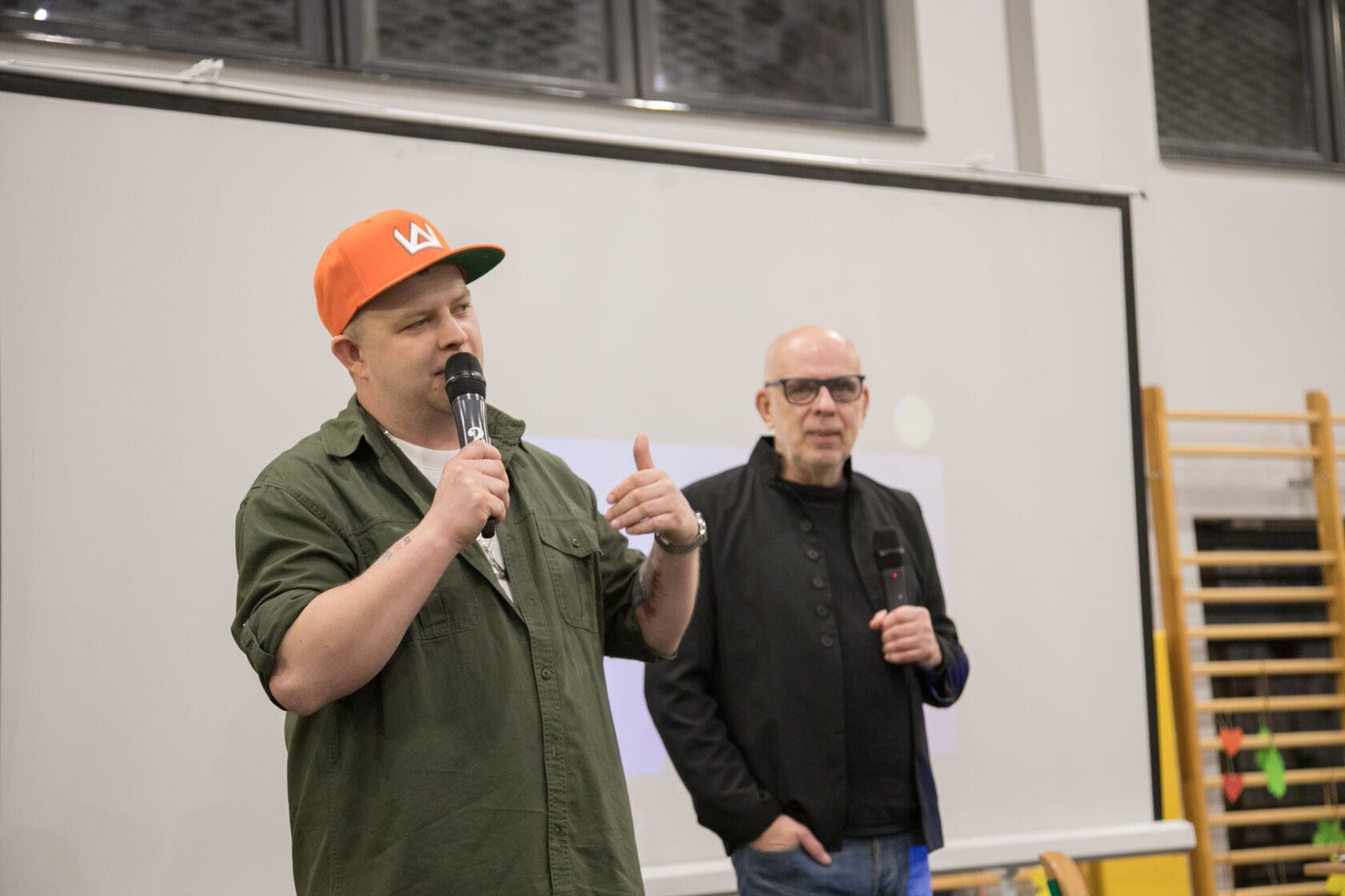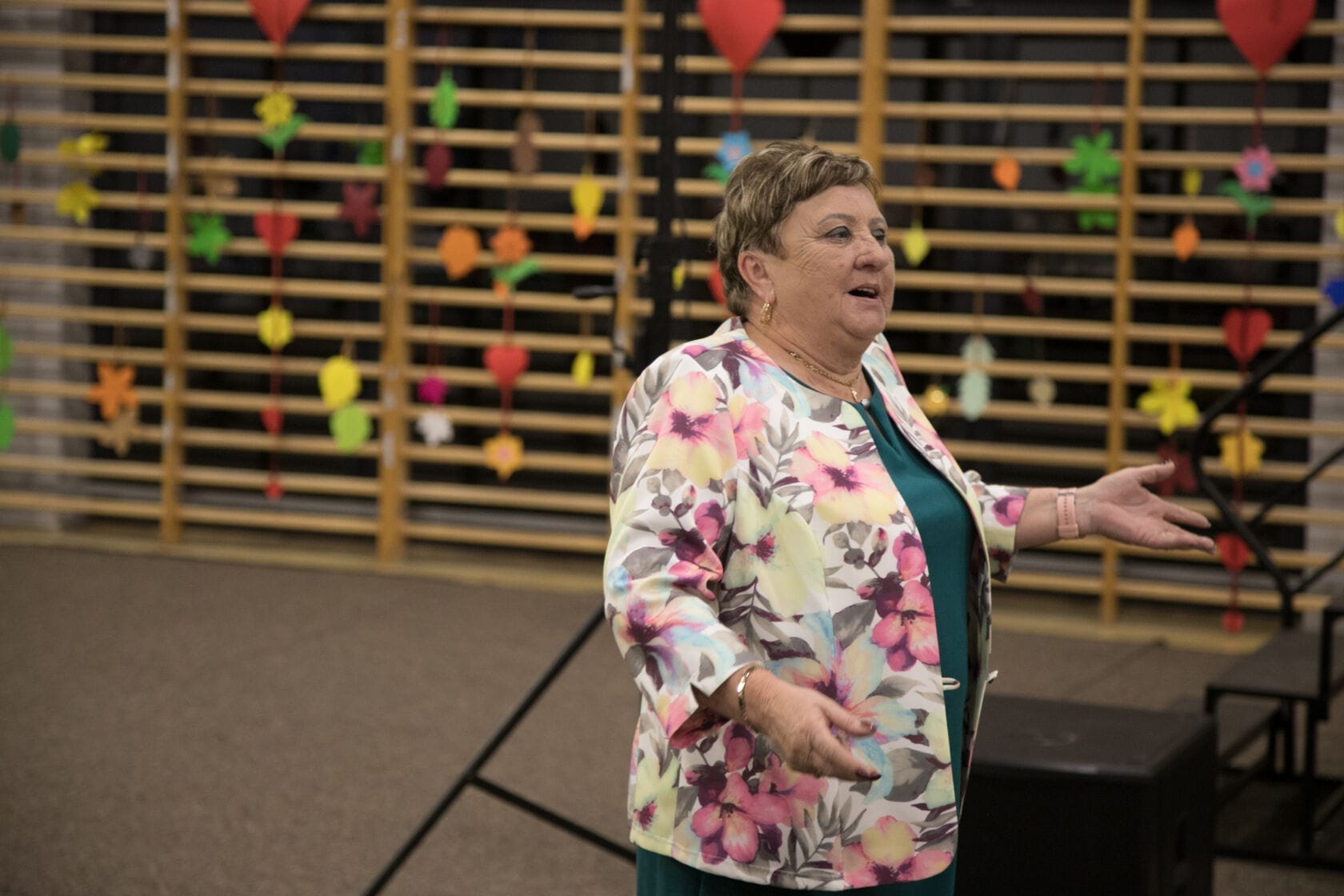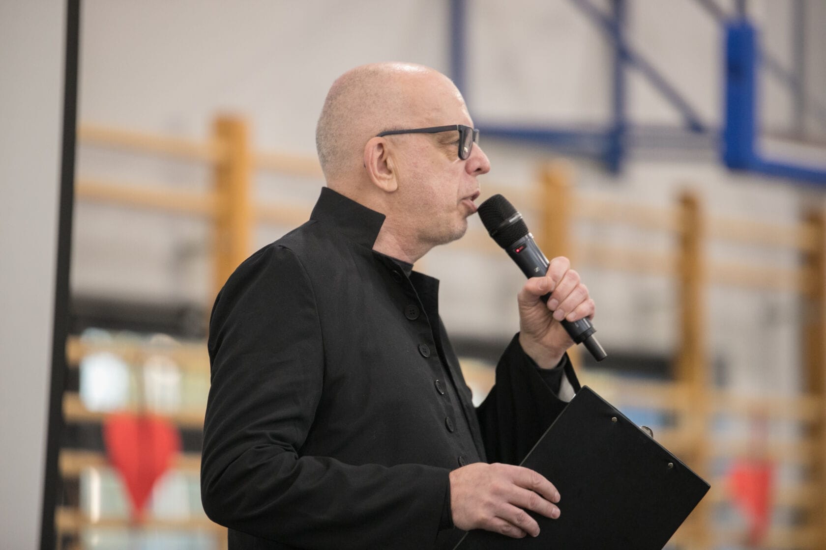 Spotkanie społeczności starszych osób w sali gimnastycznej