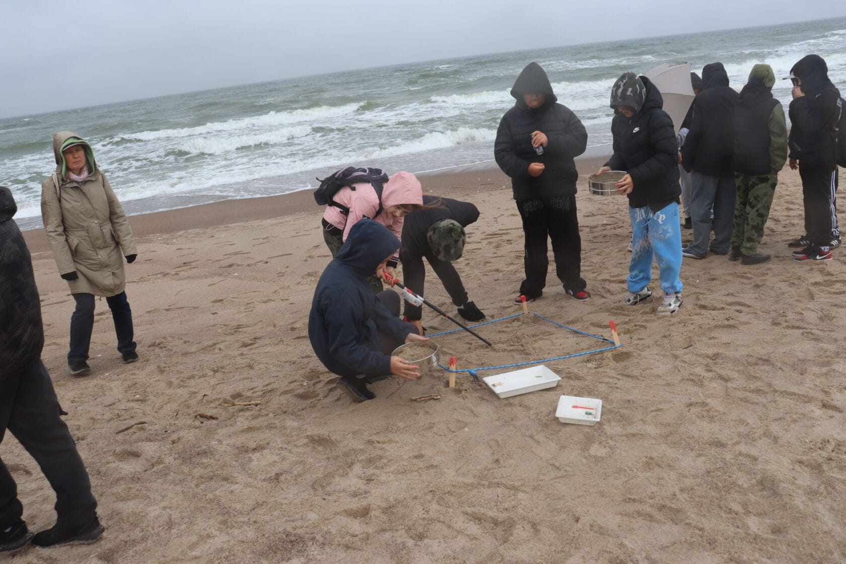 W drugim dniu zajęcia odbywały się na plaży, gdzie uczniowie badali m.in. temperaturę i zasolenie wody, mierzyli szerokość plaży, obserwowali obecność organizmów i poziom zanieczyszczenia. Obserwowano i policzono ptaki krążące nad plażą oraz wydobyto z morza organizmy, których nie jesteśmy w stanie dostrzec będąc na plaży, a nawet pływając w wodzie. Kto z nas widział lasonoga, garnele, czy 3 centymetrowego turbota i stornie? Szkoła Społeczna STO miała tę okazję. Edukatorki Anna i Dominika z wielką pasją udzielały odpowiedzi. Był to wspaniale spędzony czas.