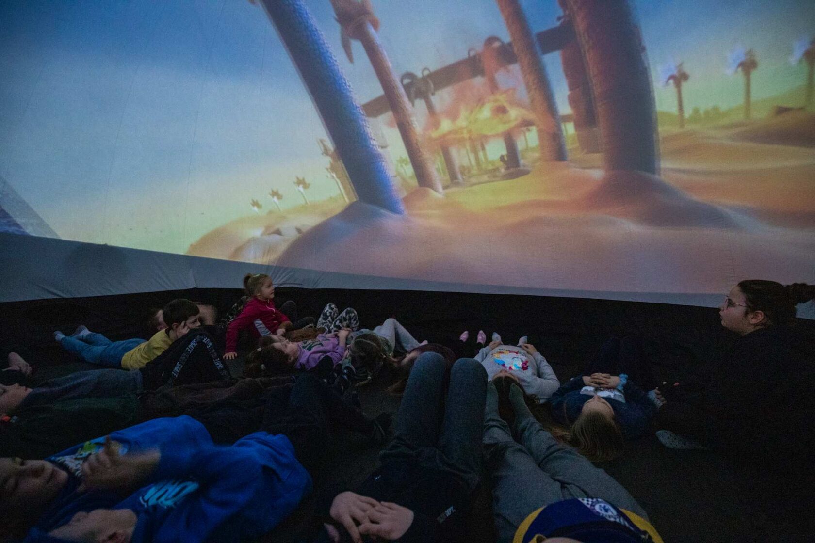 Były gry i zabawy z bohaterami książki w tle, wysyłanie maili za pomocą koperty i sznurka a także nauka języka szwedzkiego. Nie zabrakło także tłustego czwartku i tuuuu miała miejsce bitwa: pączek vs popcorn i jak na kino przystało – to popcorn wygrał. W sobotę natomiast odbyło się kino sferyczne w kinie Bajka. Jednym słowem – to był dobry tydzień, dużo się działo i chyba… trafiliśmy w gusta dzieci.